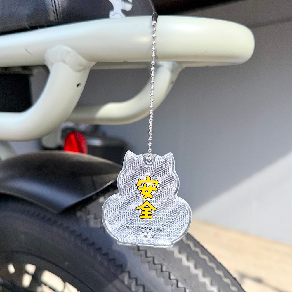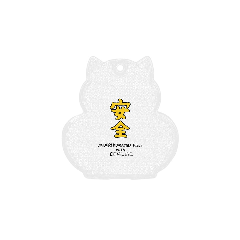 イラストレーター MIDORI KOMATSU が手がけた、ポップな招き猫デザインのリフレクターが登場。かわいいだけでなく、夜間の安全対策や通学時の視認性を高める実用性も兼ね備えた、デザイン性と安全性を両立した反射アイテムです。裏面には、筆文字風の "安全" の文字をデザイン。 お守りのように、毎日の外出時にそっと寄り添い、日常の安全を見守ってくれるデザインです。