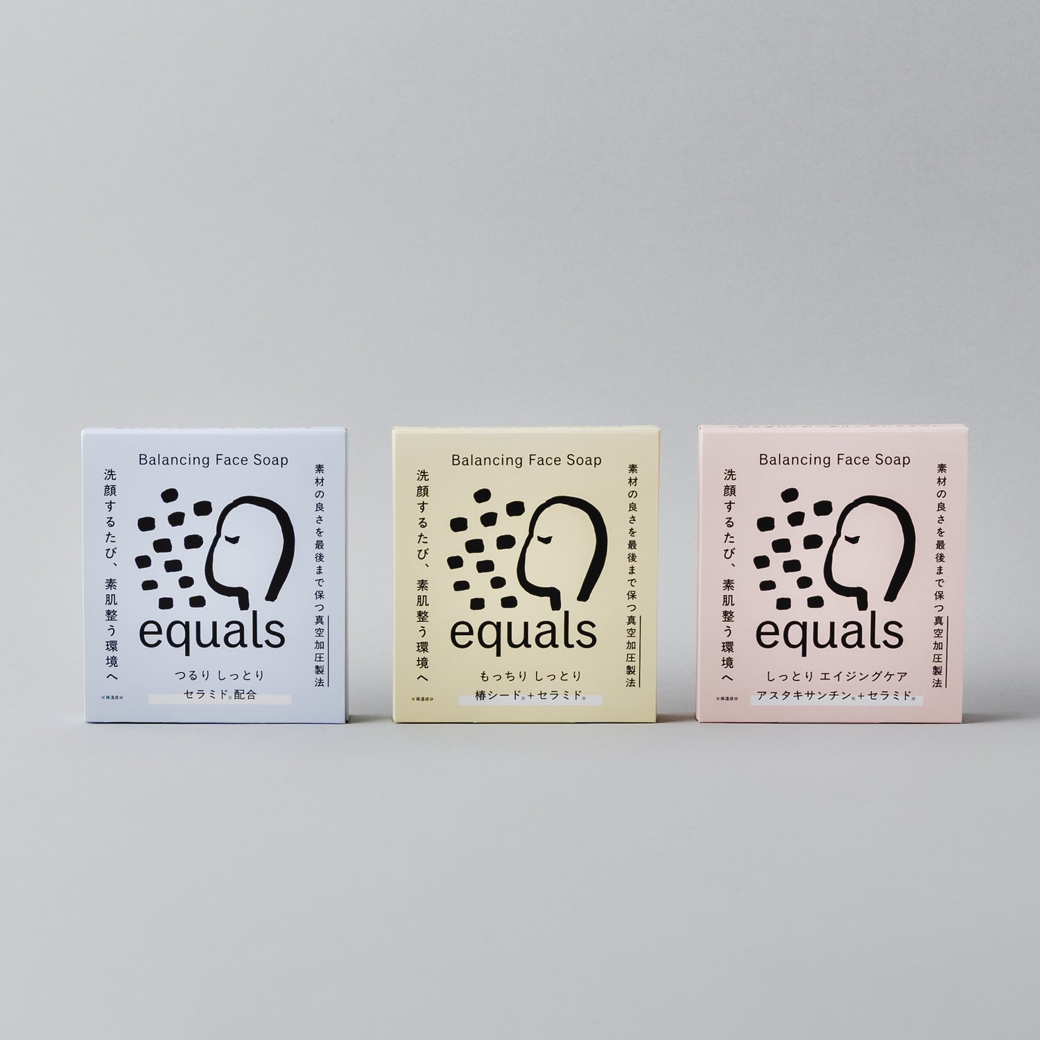 equalsは、独自の技術「真空加圧製法」によって生まれた、人と同じ塩分濃度の泡で洗える肌に優しい洗顔石鹸です。