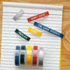 専用リフィルリフィルです。5色セットなので色を組み合わせて楽しんでください。クリアは比較的めずらしく、貼り付けると凹凸(エンボス)だけ浮き出ているみたいでとてもユニーク。これならオフィスでも目立ち過ぎないので、きっと大人の方も利用しやすいと思います。