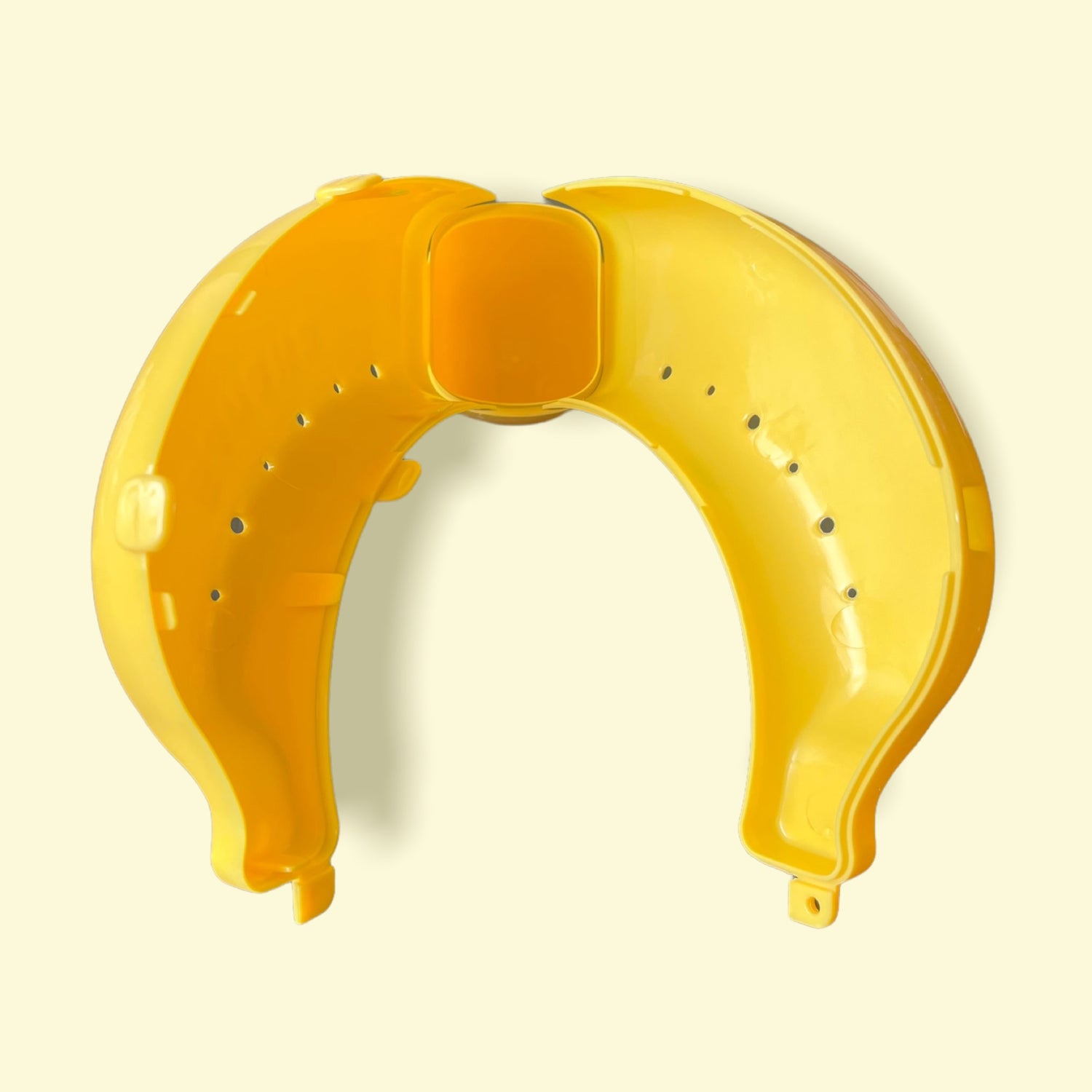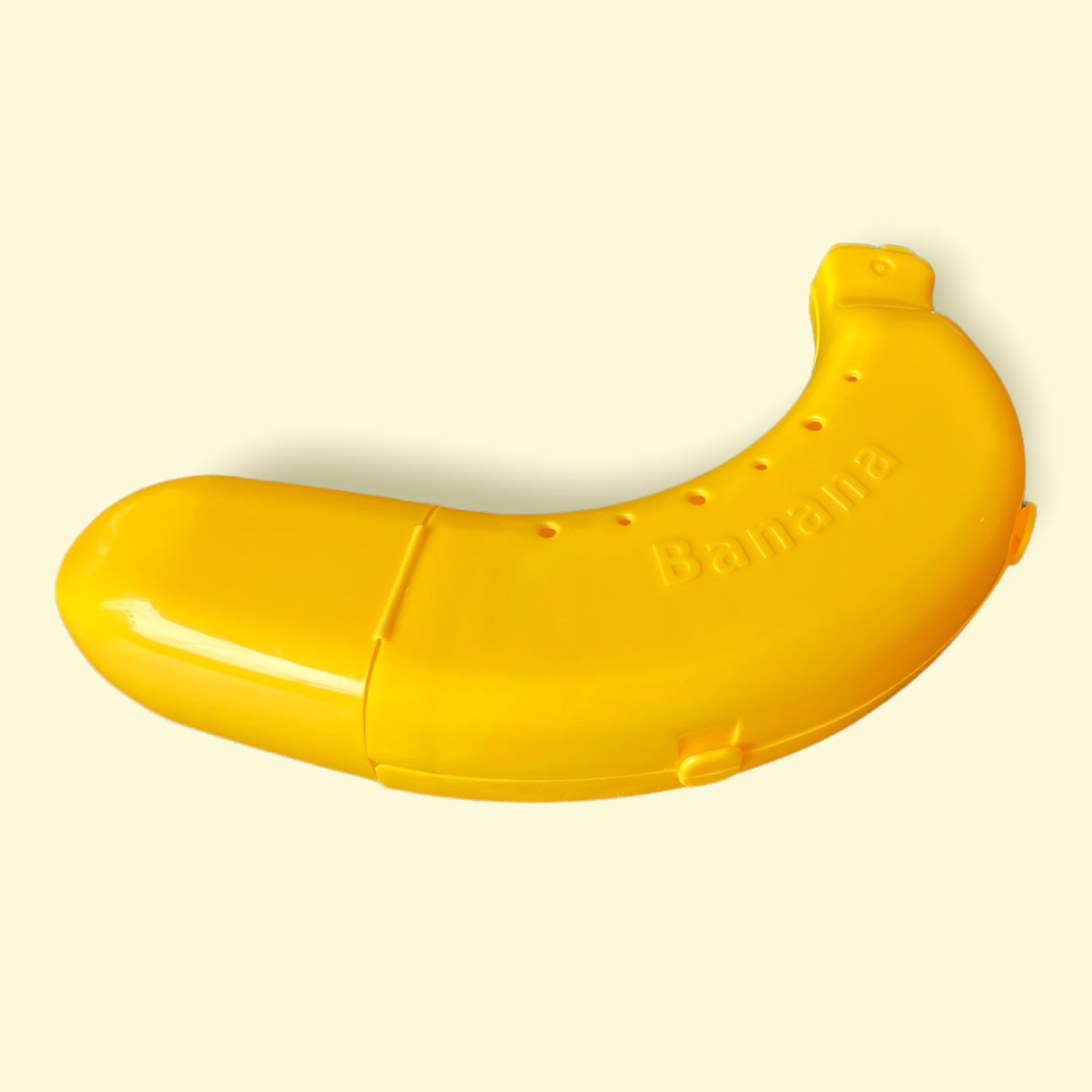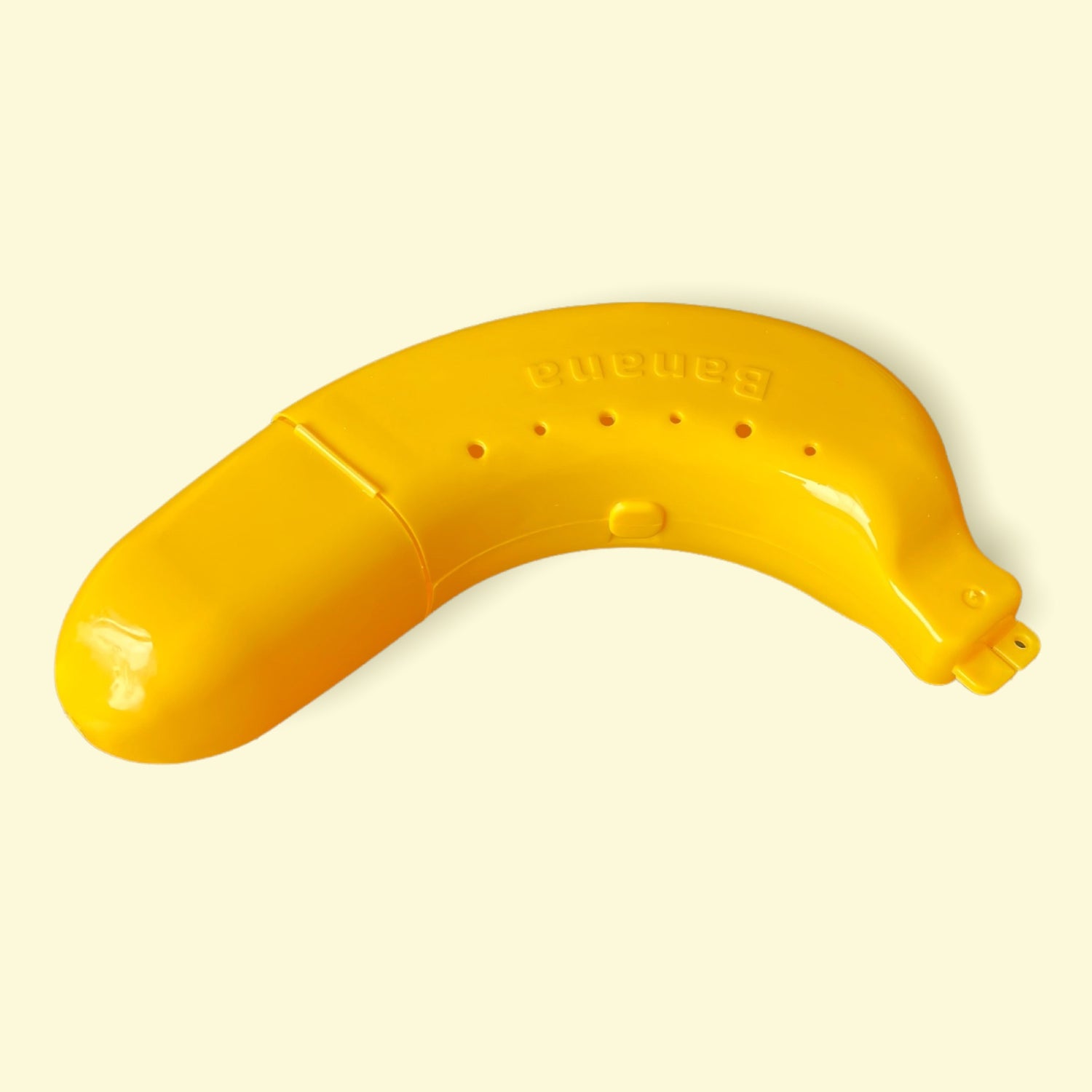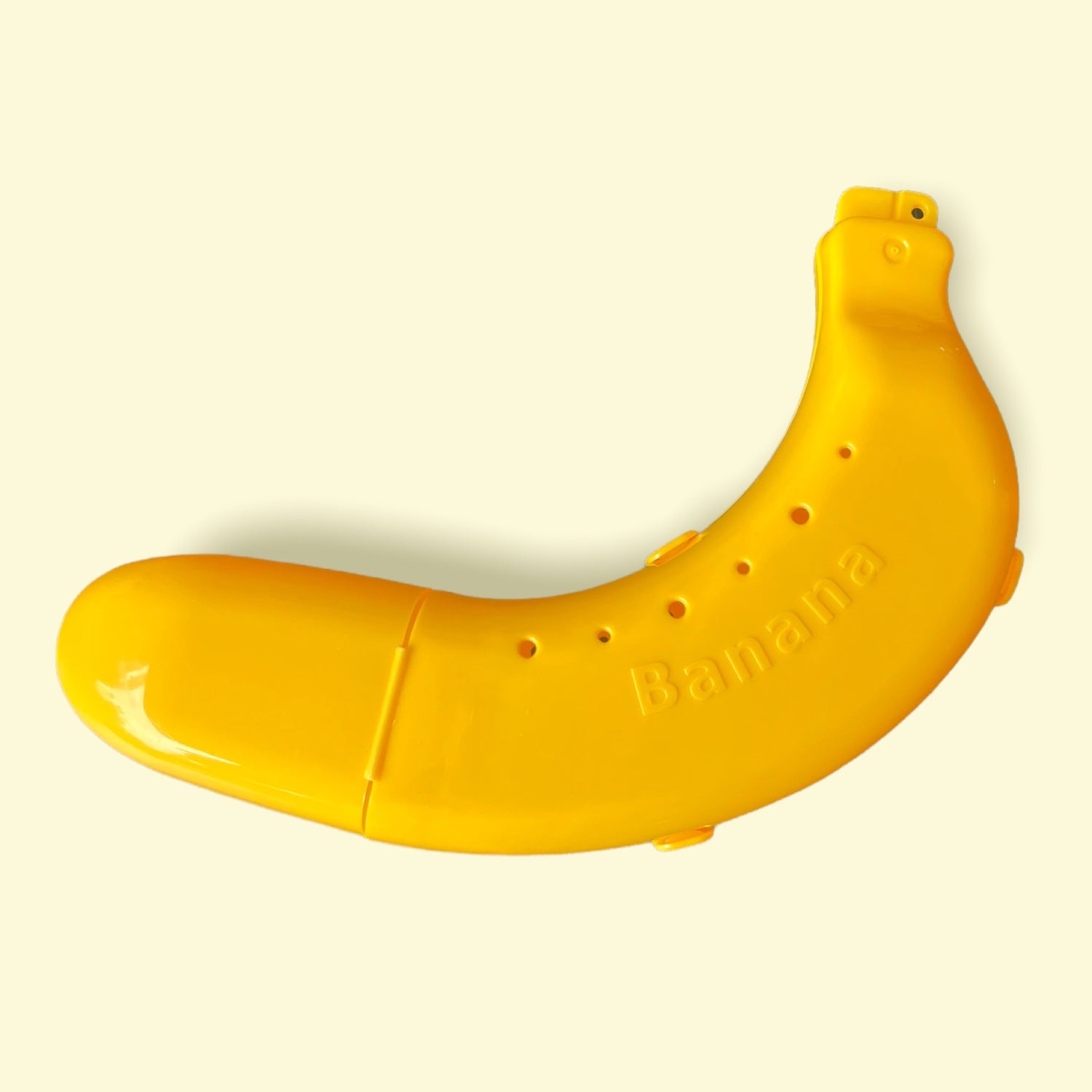 バナナの持ち運びに便利なケース。外部の衝撃からバナナを守り、痛みをおさえますバナナの皮を剥くようにぱかっとケースが開きます。