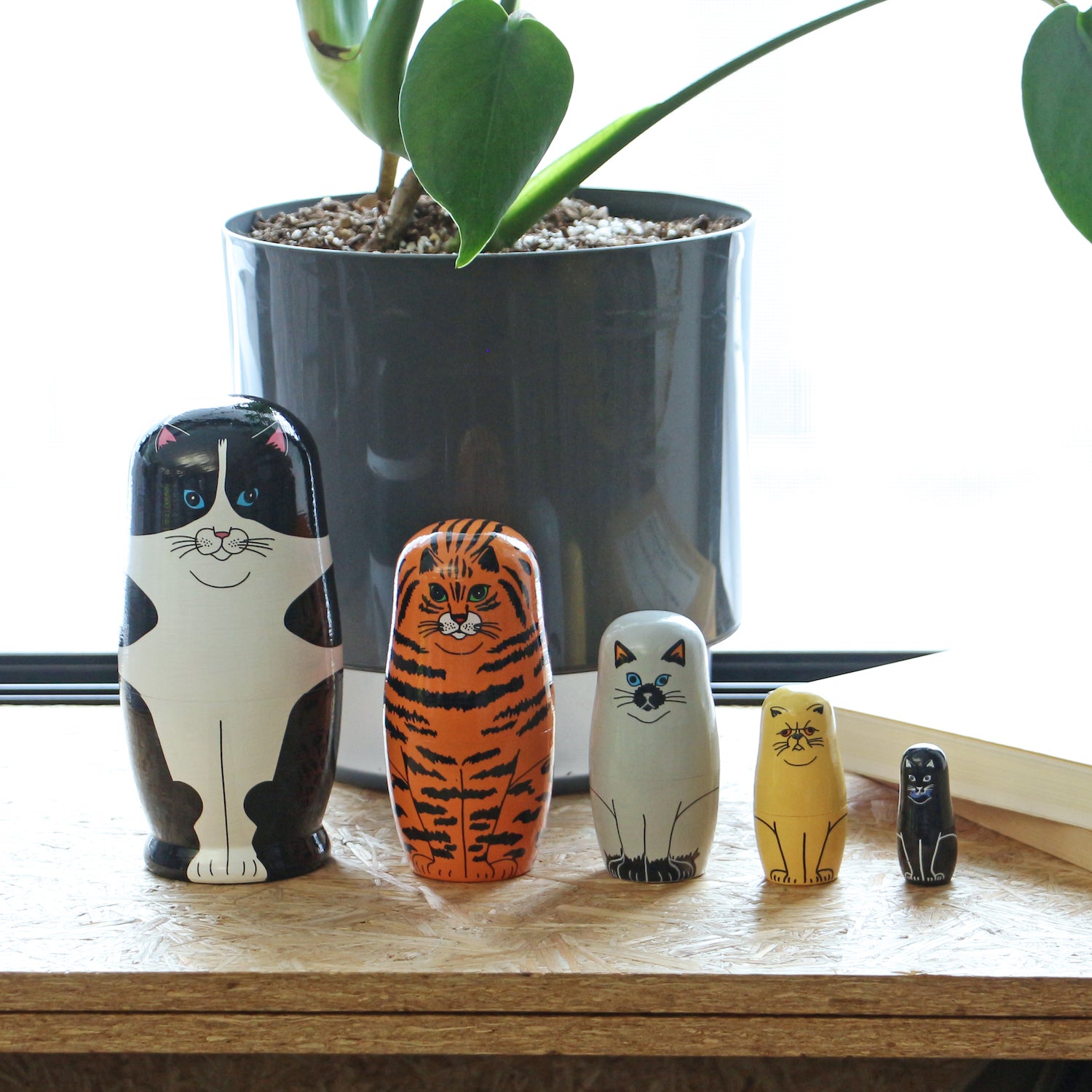 人気イラストレーター MIDORI KOMATSUの世界観が詰まったマトリョーシカ。神経質で、好奇心旺盛で、衝動的で、フレンドリーで、わがままで、そんないつでも対等な距離感が心地いい。5つの性格を持っているとされる猫のマトリョーシカです。