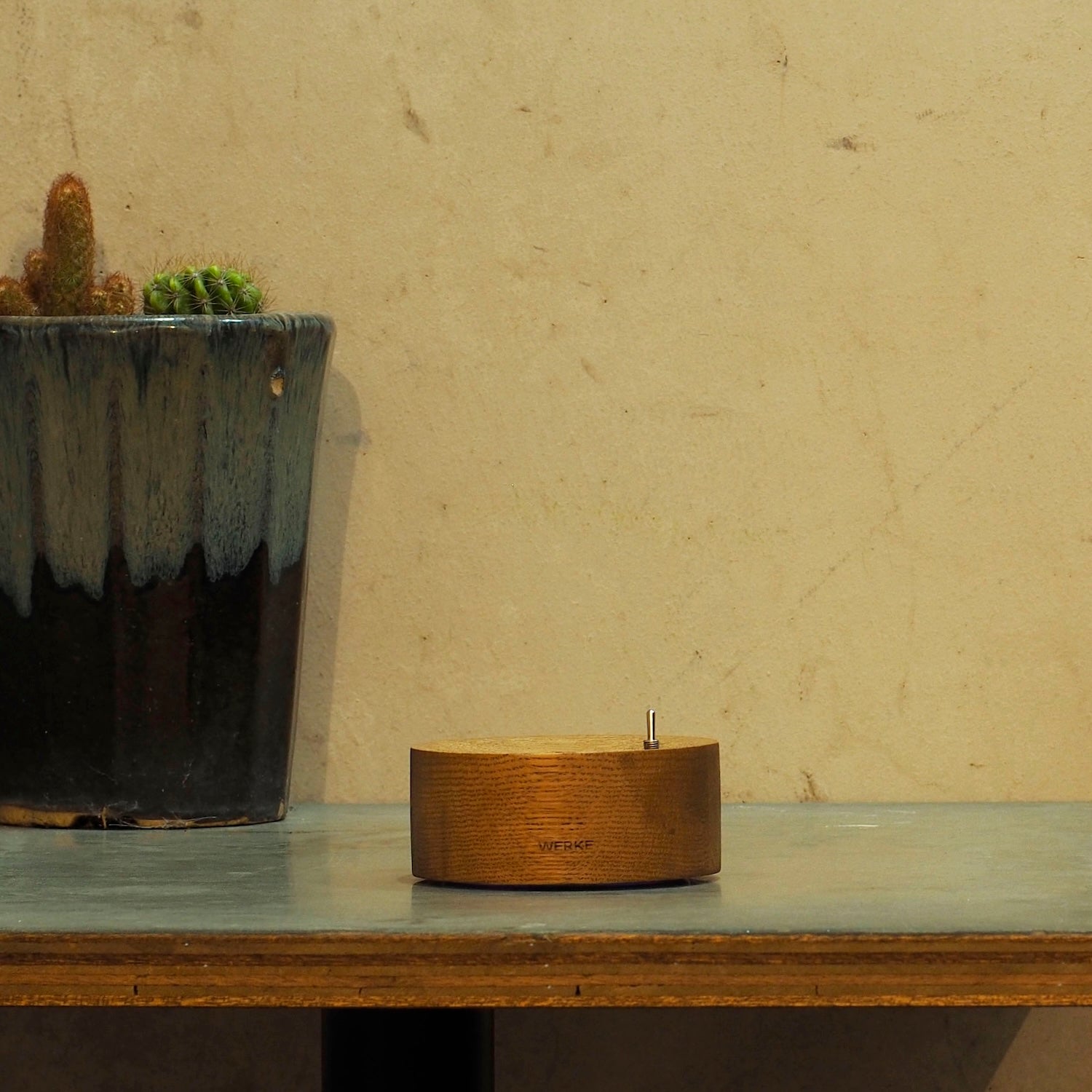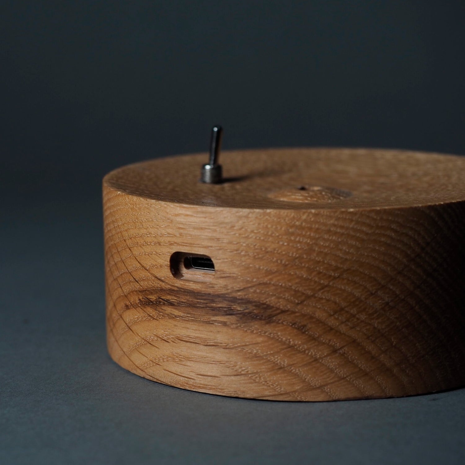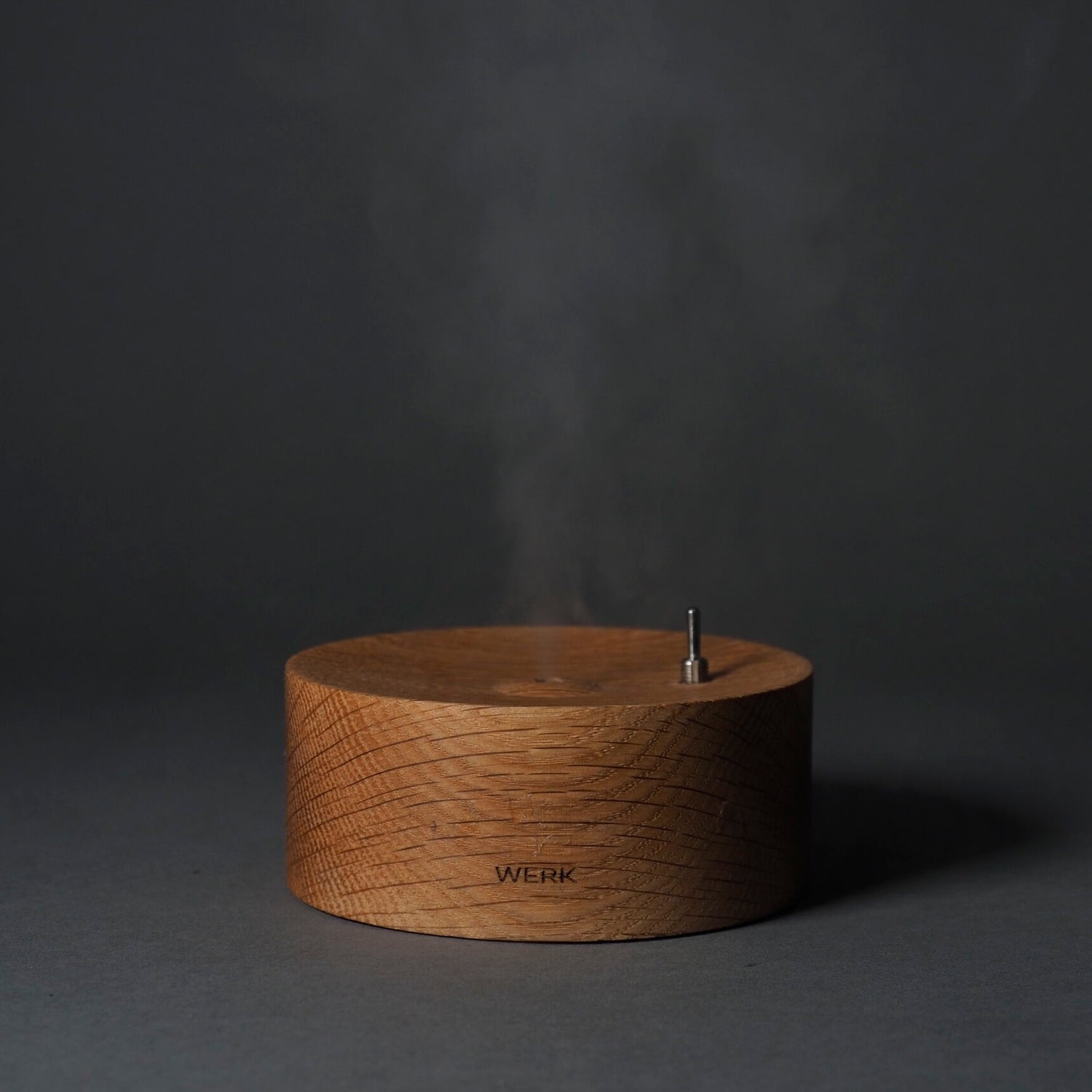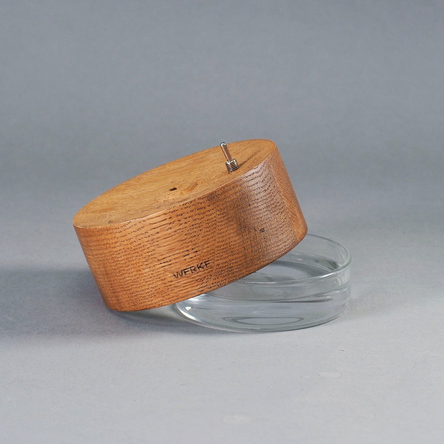 オーク材の温かみある風合いと、透明な質感のガラス容器を組み合わせた、洗練されたデザインが特徴のアロマ加湿器。”家具のように生活の風景に溶け込むもの”をテーマに作られた、「これなら置きたい」と思えるアロマ加湿器です。スイッチを入れると、勢いよく、超音波式のミストが、シューッと、7秒間ふき出します。その後、ストップ。7秒止まったら、また、ミストがふき出す……“7秒ミスト”をくり返す、シンプルな卓上加湿器です。稼働音は、とても静かで、ベッドルームにもピッタリ。ガラスの器に水を入れて加湿器、水にアロマオイルを垂らしてアロマデイフューザーとして使うこともできます。ガラス製の「シャーレ」は、⽔垢やカビが気になっても簡単に洗えます。電源スイッチは、「パチッ」と響く小気味よい音と感触がクセになる”トグルスイッチ”。充電式で(タイプC充電ケーブル)、コードレスで好きな場所で使えます。