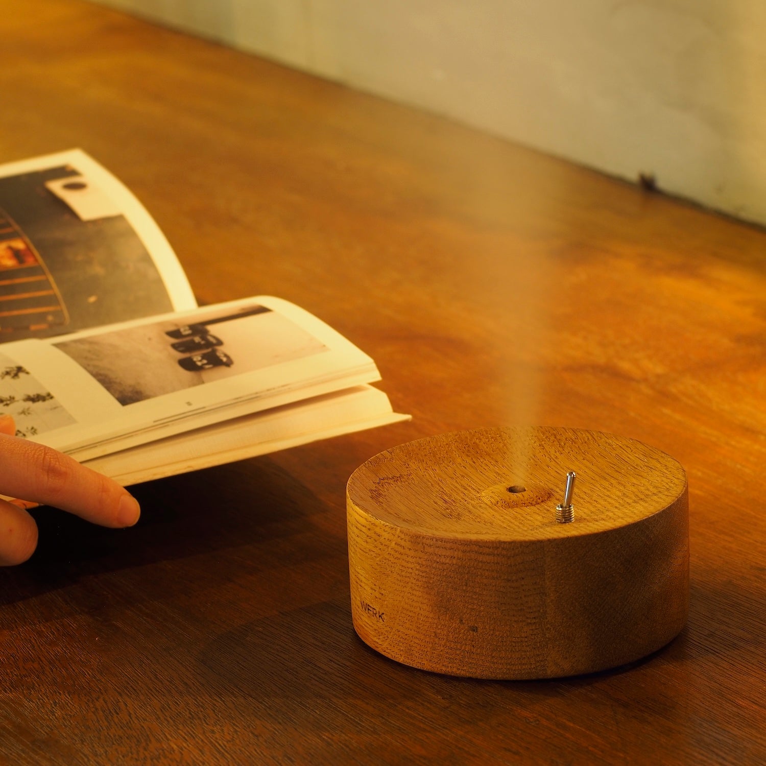 乾燥が気になってくる季節、卓上に気軽にちょこっと置いておけるものを探してたのですが、この度ビビビッと運命的に出会ったこちらを紹介します。インテリアのような暖かみがある見た目が完璧です。しかもこのどこか懐かしく感じるポチッとしたスイッチ。これならどこに置いても合う!そう思いました。あまりややこしくない造りのものが好きなのですが、こちら最上級にシンプル。ガラスの器に水を入れれば加湿器、水にオイルを垂らせばアロマディフューザーとして、仕事中も潤いと癒しを与えてくれます。加湿器ってなんとなく水滴やカビが気になって懸念していたのですが、これなら簡単にチャチャっと洗えます。2時間で消えるので、就寝前にベットの近くに置いたり、私はこれから旅先のホテルにも持って行こうと思っています。