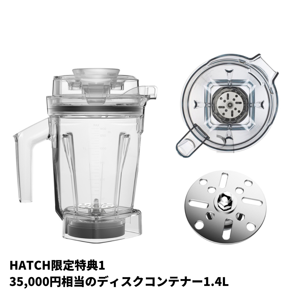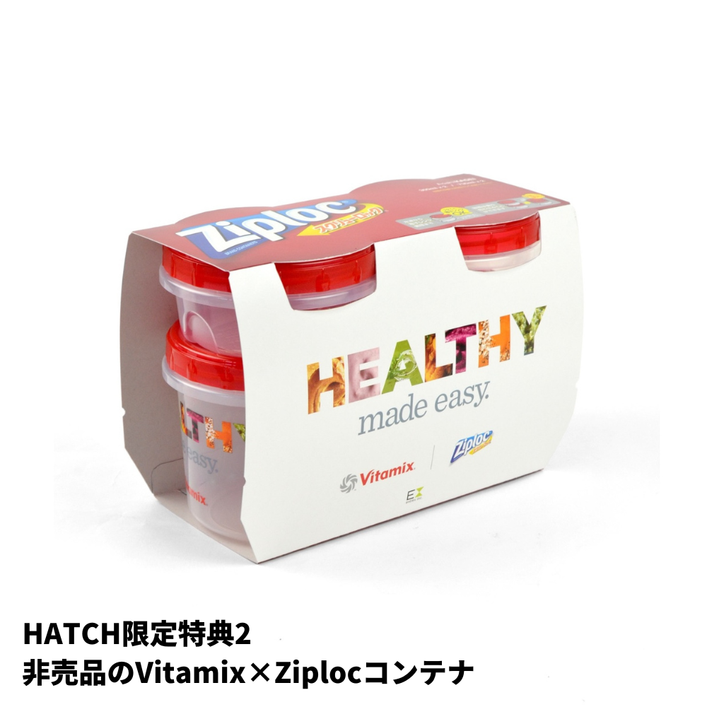 Vitamix V1200i Sに、ディスクコンテナー1.4L(35,000円相当)と、非売品のZiplocコンテナが付いた、お得なHATCH限定セット