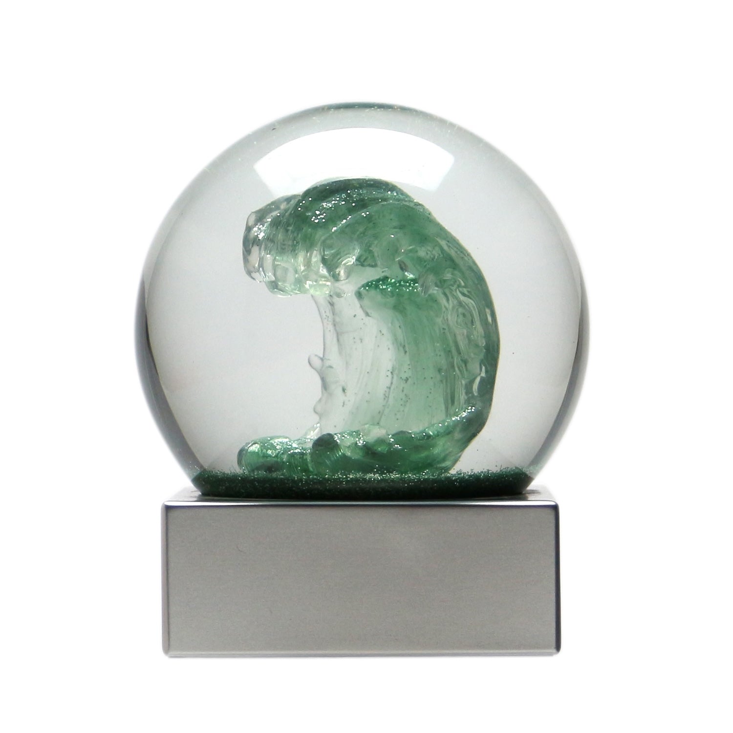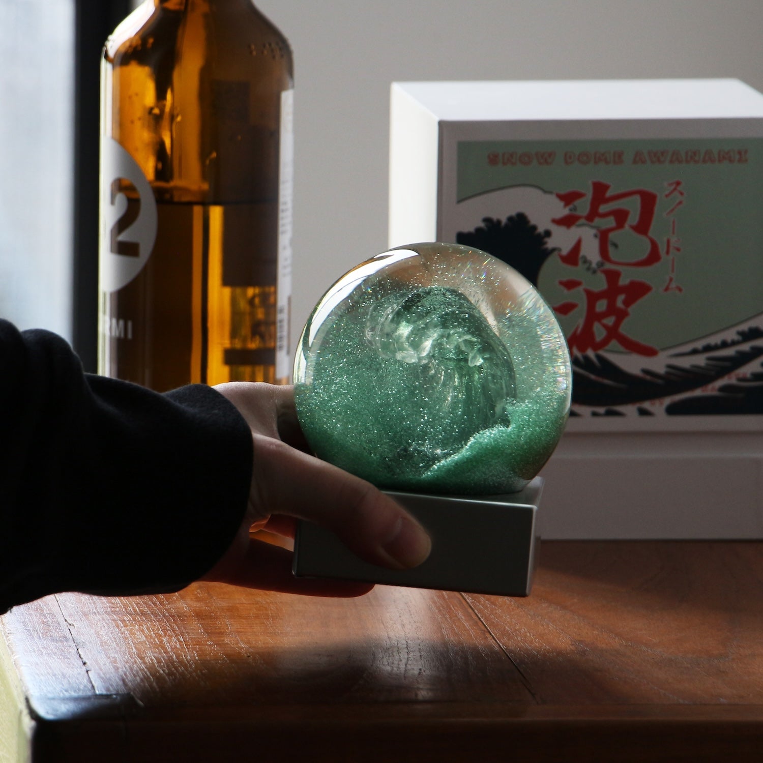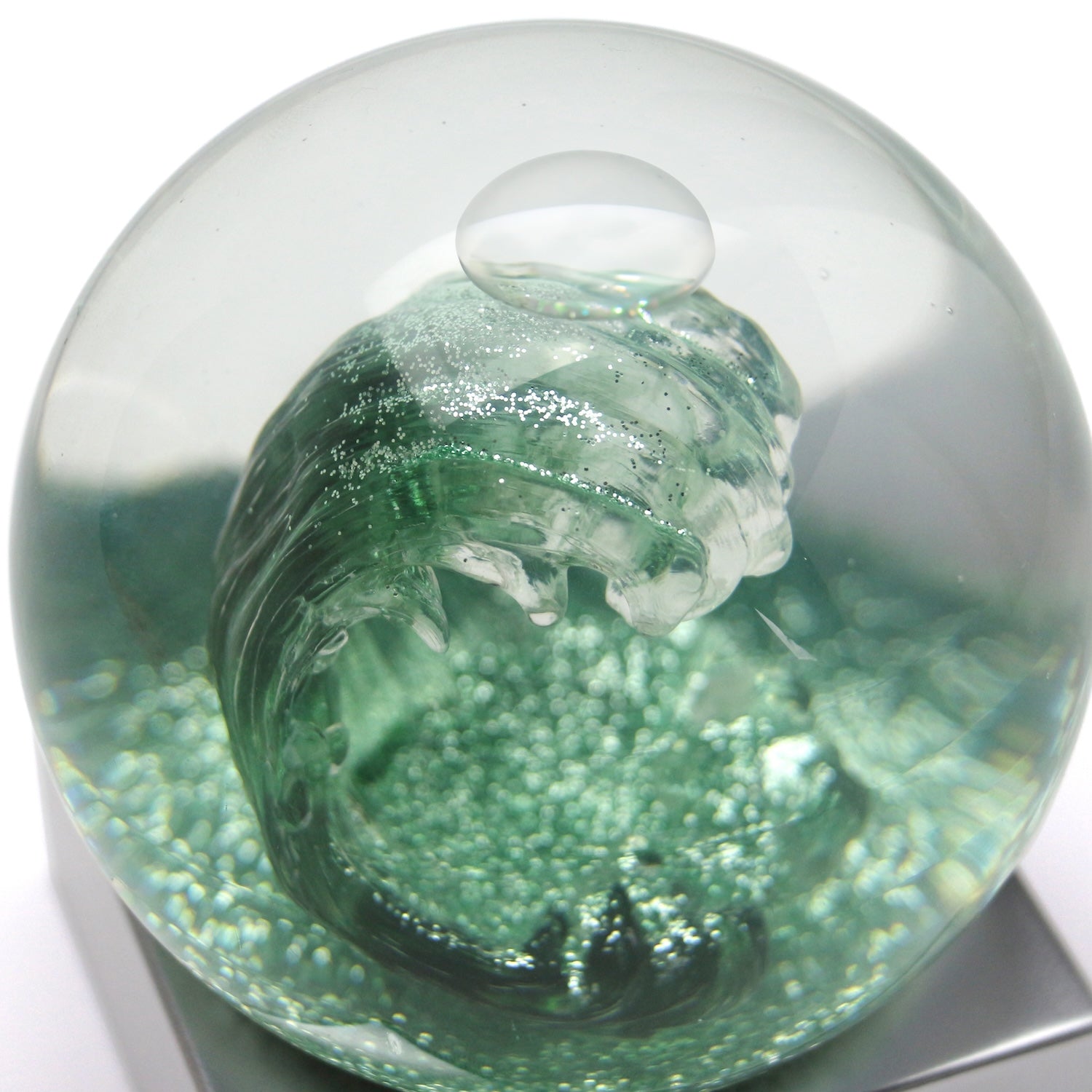 荒々しい波を10cmの球体のスノードームで表現しました。細かなラメパウダーが球体の中で舞う幻想的な様子はつい見入ってしまいます。