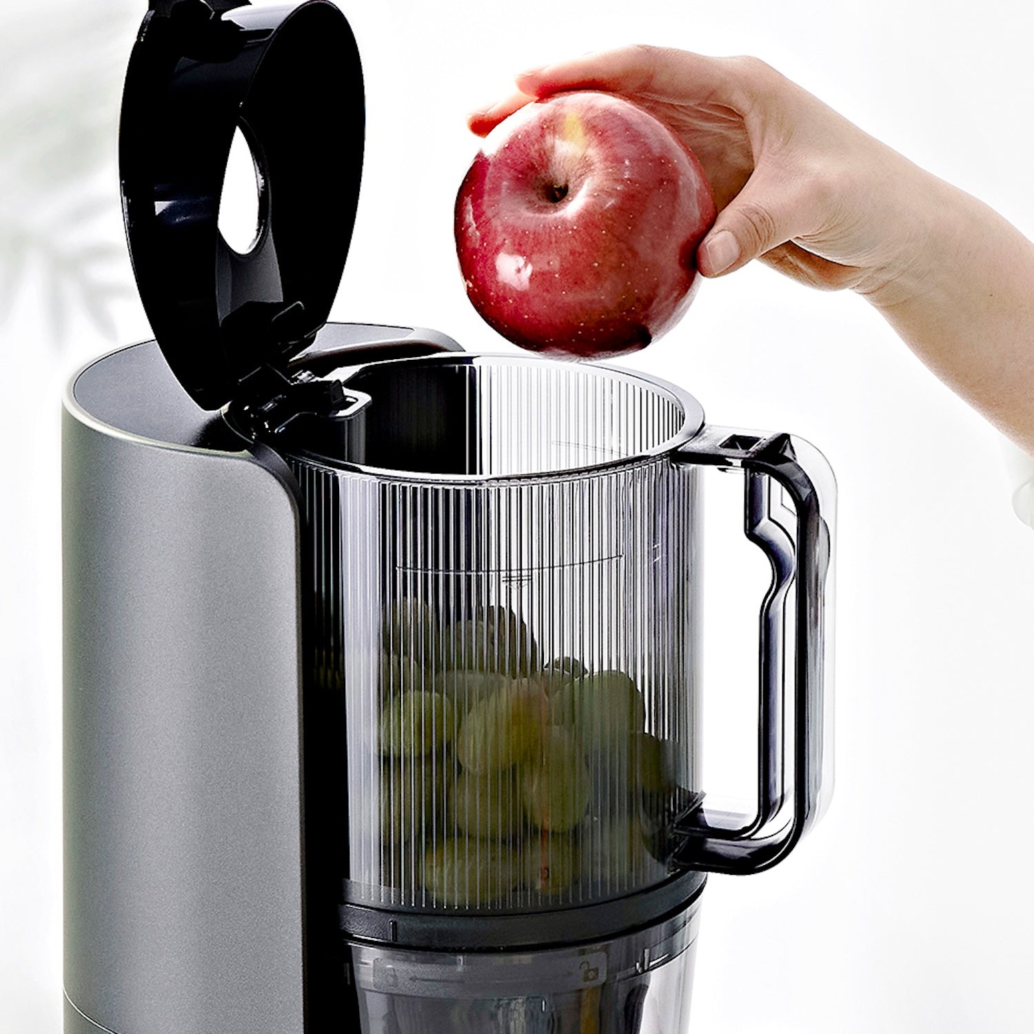 使いやすさを追求してたどり着いた、理想のジューサー。指先ひとつででき上がる新しい搾汁システムにより、事前の準備やわずらわしい後片付けから解放され、感動的な使い心地を実現します。