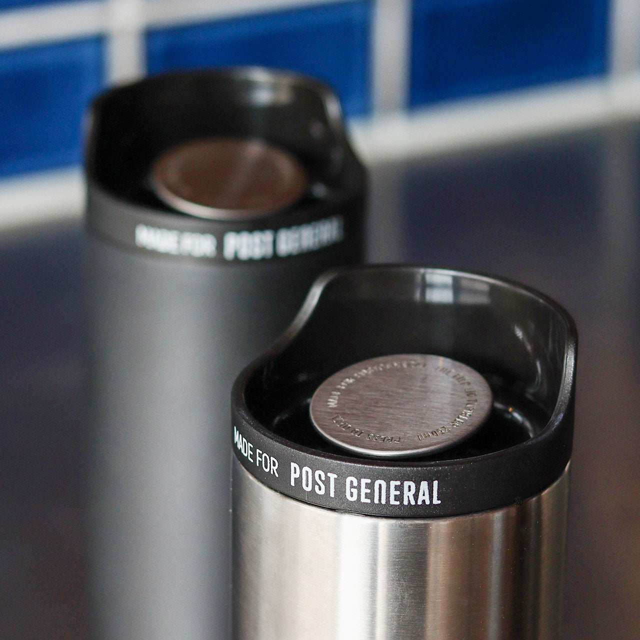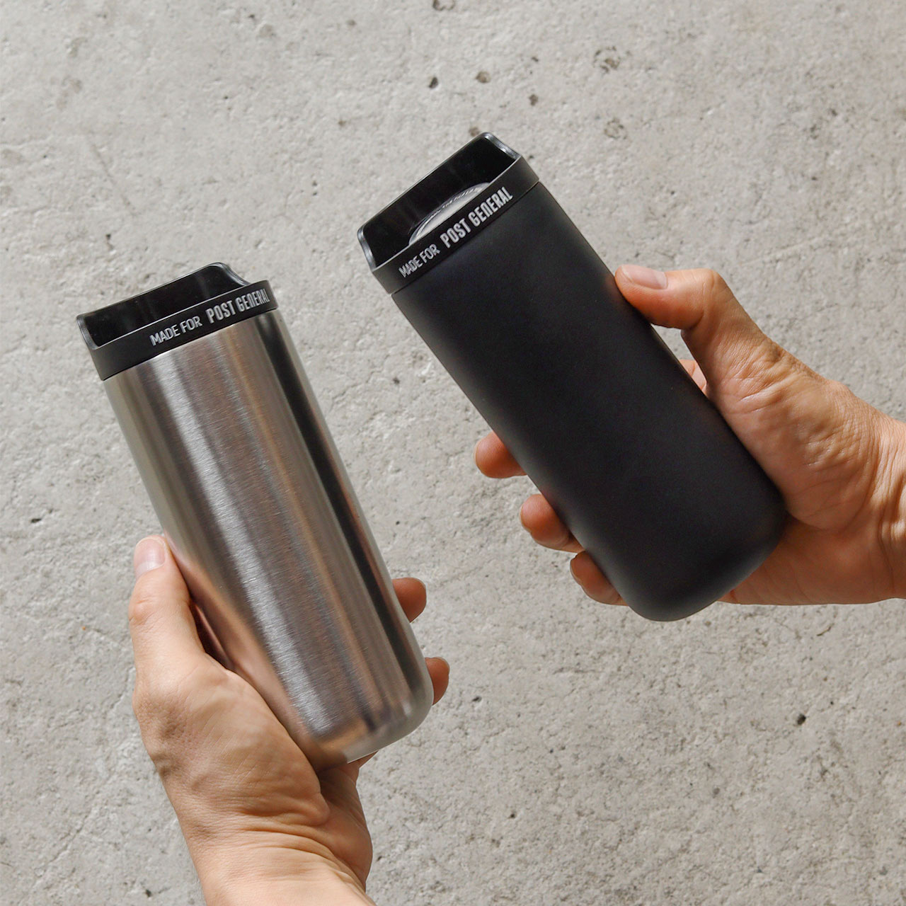 淹れたてのコーヒーを手軽に愉しめるステンレス製のダブルウォールタンブラー。飲み口の開閉は、ステンレス製の飲み口キャップを倒すだけのワンアクション仕様。片手で簡単に蓋の開閉が出来るため、車内やデスクでの作業中など少しずつ飲みたい時に便利。密閉性が高く、万が一倒してしまっても安心。(※飲み物が飲み口に溜まる事がありますのでご注意ください。)