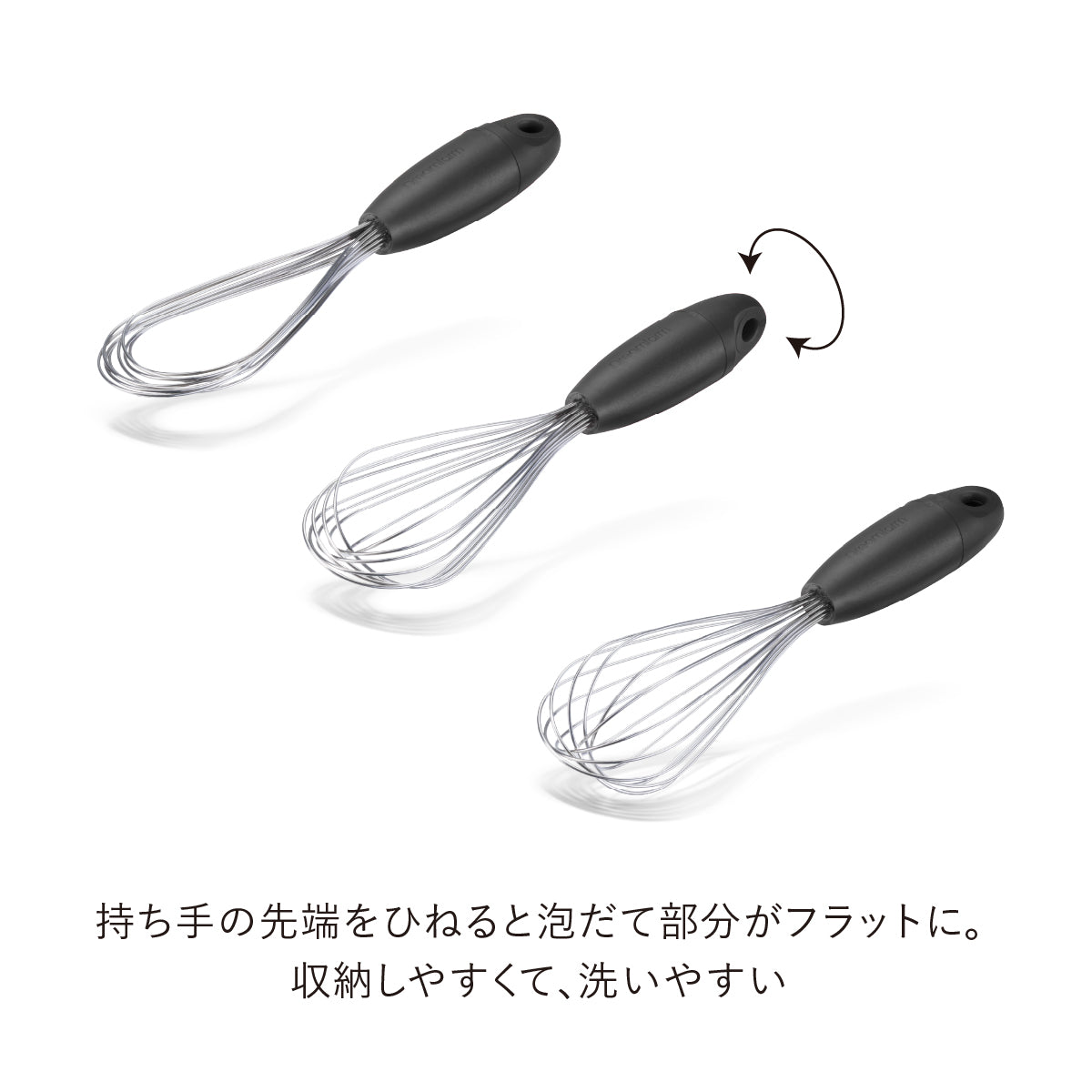 シンプルなデザインで使いやすい上に、くるっと回してペタンと畳めてかなりコンパクトに。めちゃくちゃ使いやすい!お菓子作りに是非活用してもらいたいです。チーズケーキとか作るのにいいと思います。