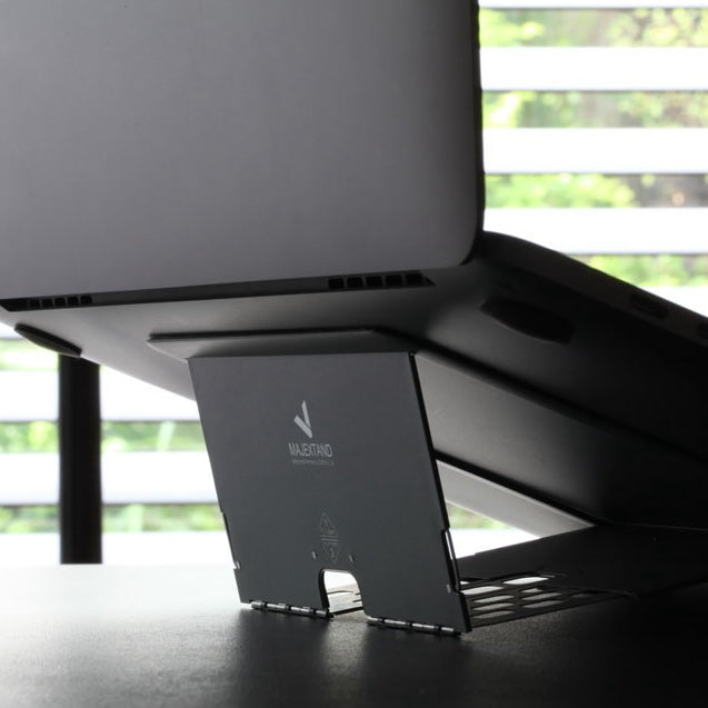 ノートパソコンスタンドは通常、使用中の頚椎(くび)を保護するだけでなく、放熱を促進させる効果があります。しかし、そのような効果を理解しつつも通常のスタンドはサイズや重量が大きく、日常の使い勝手に問題があることが多々あります。あるいは、デザイン、耐久性、または使用方法が複雑で満足できず、持ち出すことがほとんどないということもあるかもしれません。これら全ての問題を解決する最高のスタンドがMajextandです。