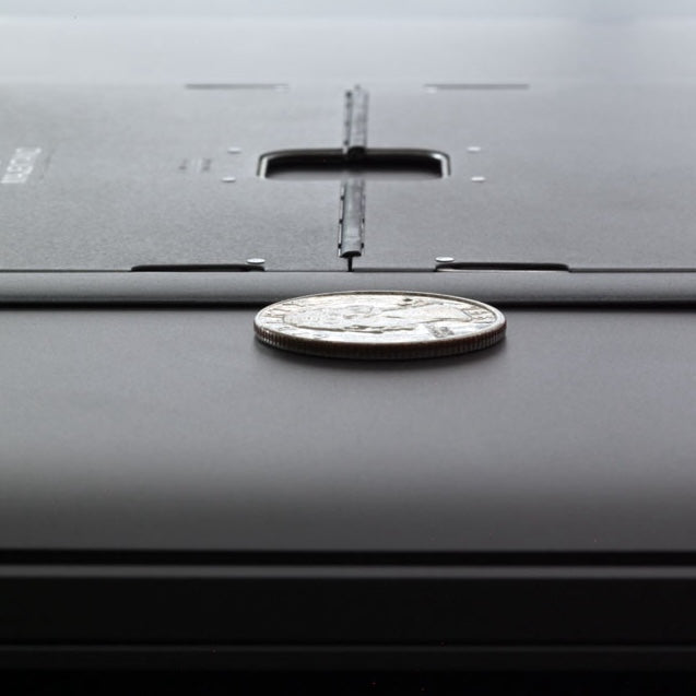 わずか1.7mmの厚みで25セント硬貨よりも薄いデザイン(重さ 約136g)