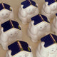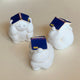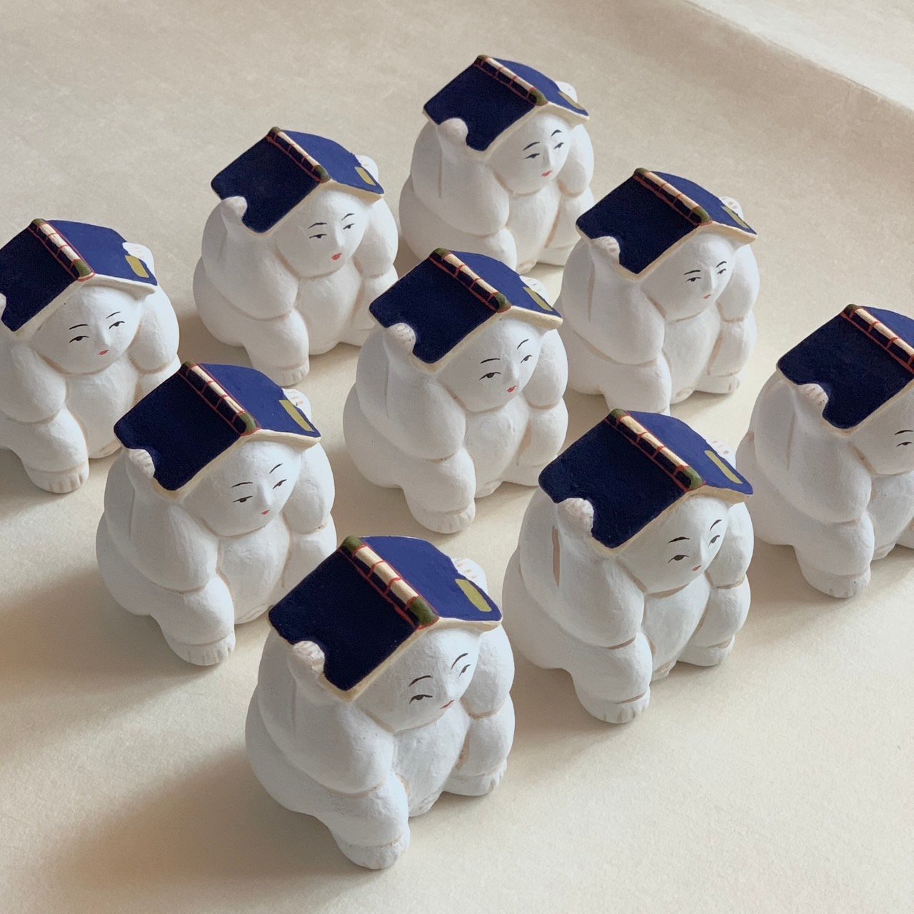 大きさは手のひらサイズで,福々しいお顔と藍色の本を頭の上にちょこんと載せた姿が可愛い。