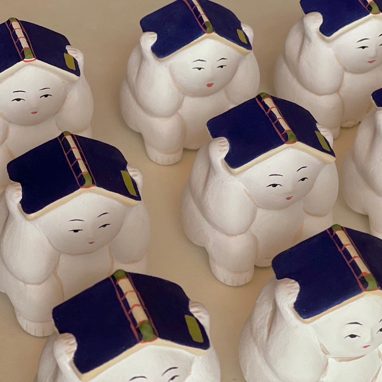※土人形につき割れやすく、彩色部分は濡れた手などで触れると退色する可能性がございます。お取り扱いには十分お気をつけくださいませ。