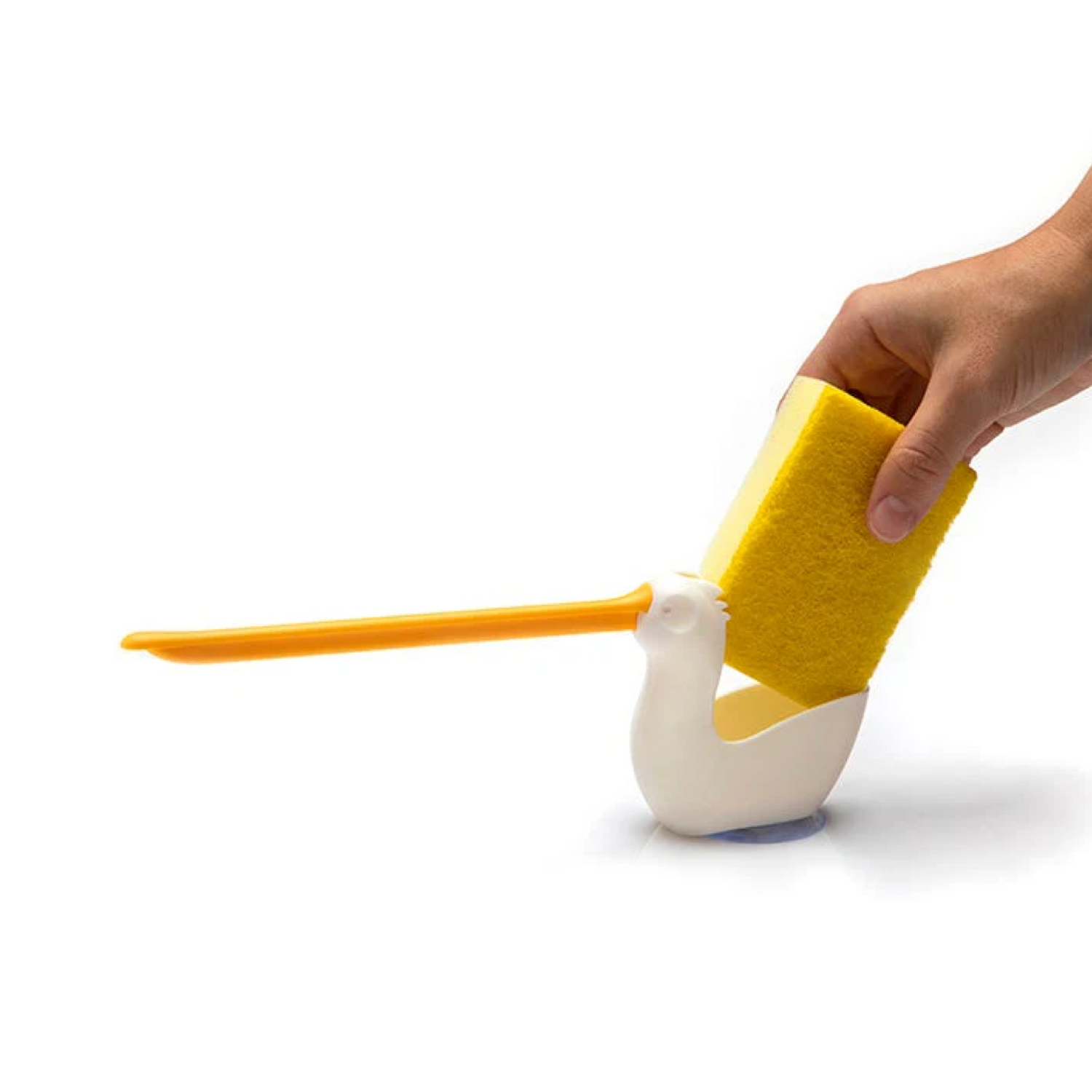 ペリカンのくちばし部分に見にタオルを掛け、背中にはスポンジを入れておけます!ペリカンの底部分には吸盤がついており、ホルダー部分を回転して使うことができるので、使い方が広がります。吸盤は設置する素材により吸着力が弱くなる場合があります。
