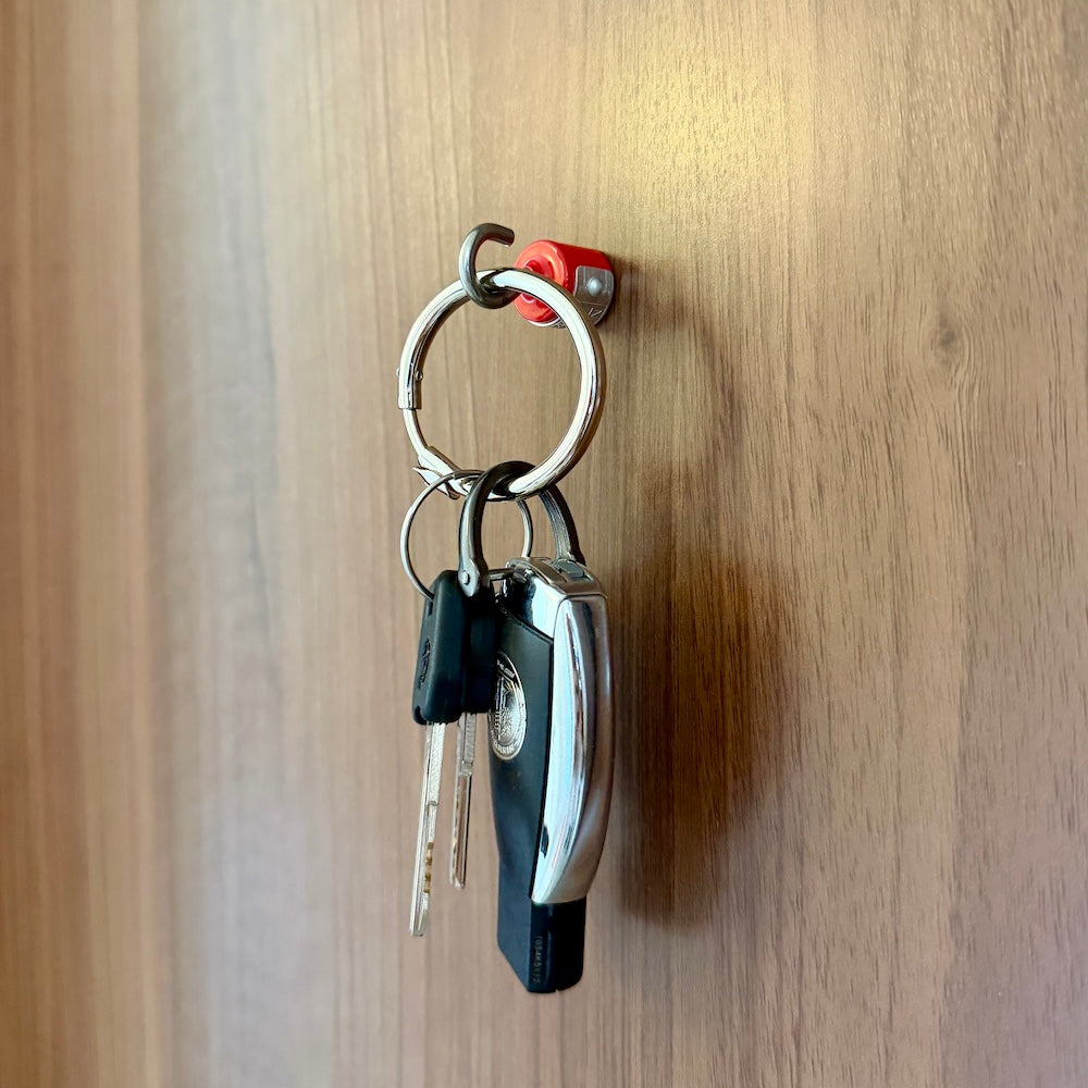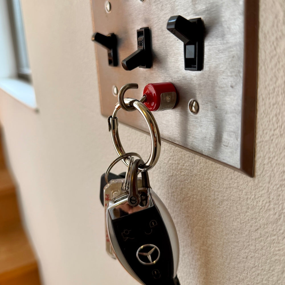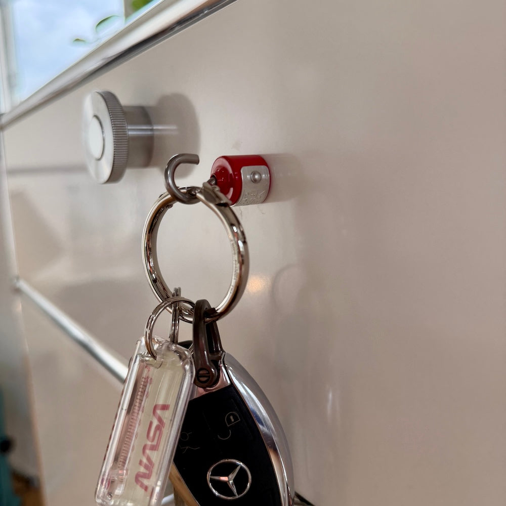 頑固な強力マグネットに、タフなデザインのプレートを配したフック。引っ掛ける、吊るす、と様々なポジションで活躍する彼は、オフィスのロッカーやデスク周り、自宅のキッチンやガレージ等で、絶大な利便性を発揮します。お馴染みのS字フックと組み合わせれば、何か面白い事が出来る予感。