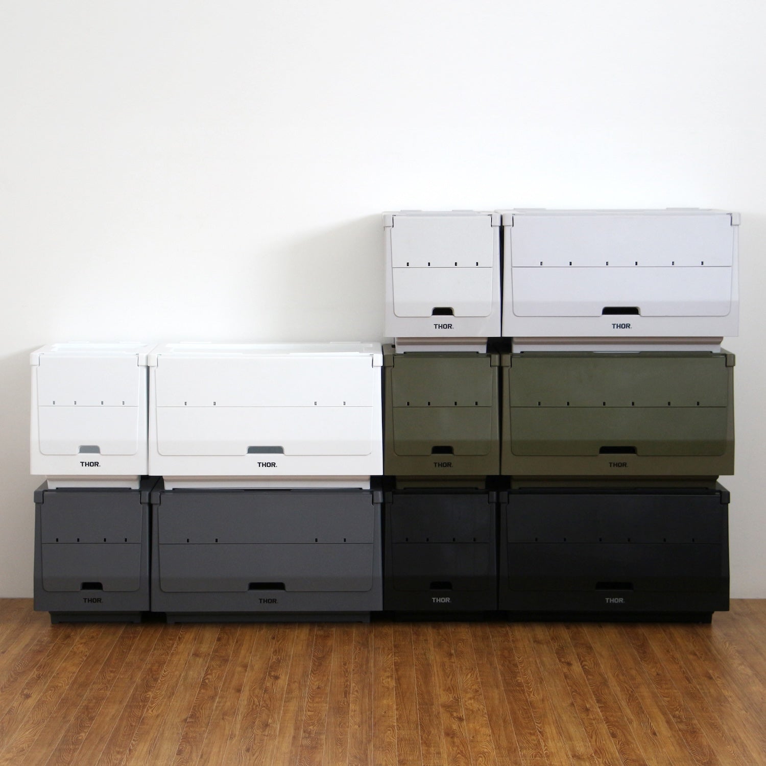 コンテナボックスといえば今や定番のTHORから、室内での収納に特化した「スタッキングシェルフコンテ」が登場したので、我が家にも導入しました。業務用感の強い従来のコンテナに比べて、生活空間にも馴染みやすい仕様。正直、画像だけ見たときは「ちょっと物足りないかも…?」と思ったけど、実際に部屋で使ってみるとこれがちょうどいい。無骨さは残しつつ、ちゃんと生活雑貨に寄り添ってる感じ。前扉は開けっぱなしに固定できて、出し入れもスムーズ。折りたたみコンテナによくある耐荷重20〜30kgとは違い、これは120kgとタフ仕様(さすがTHOR)。アウトドアでももちろん活躍してくれそうです。内寸の高さが33.5cmあるのも地味に優秀で、2Lのペットボトルや雑誌も立てたまま収納できます。ここ、意外と見逃せないポイントかも。20Lと50Lの2サイズ展開で、カラーは3色。20Lはソファ横に置いてサイドテーブルとして使うのもアリ。3段までスタッキングOKなので、50L+20L×2の組み合わせなんかも楽しい。物置部屋の壁一面に並べて、配色を楽しむのもアリです。これは、室内収納の新しい定番になっていく気がしてます。