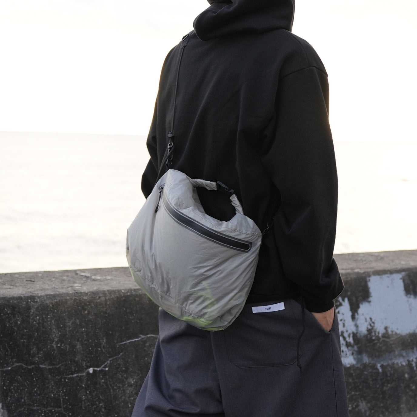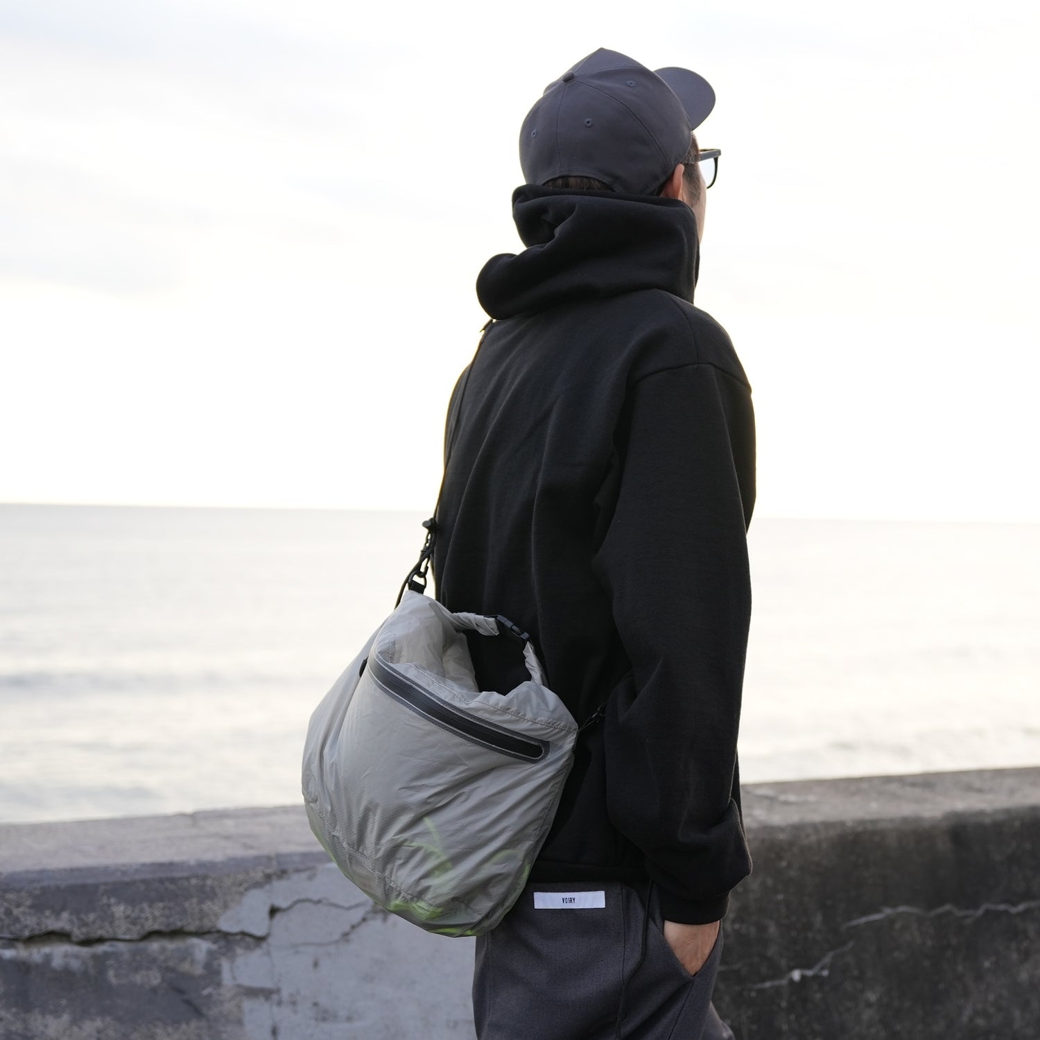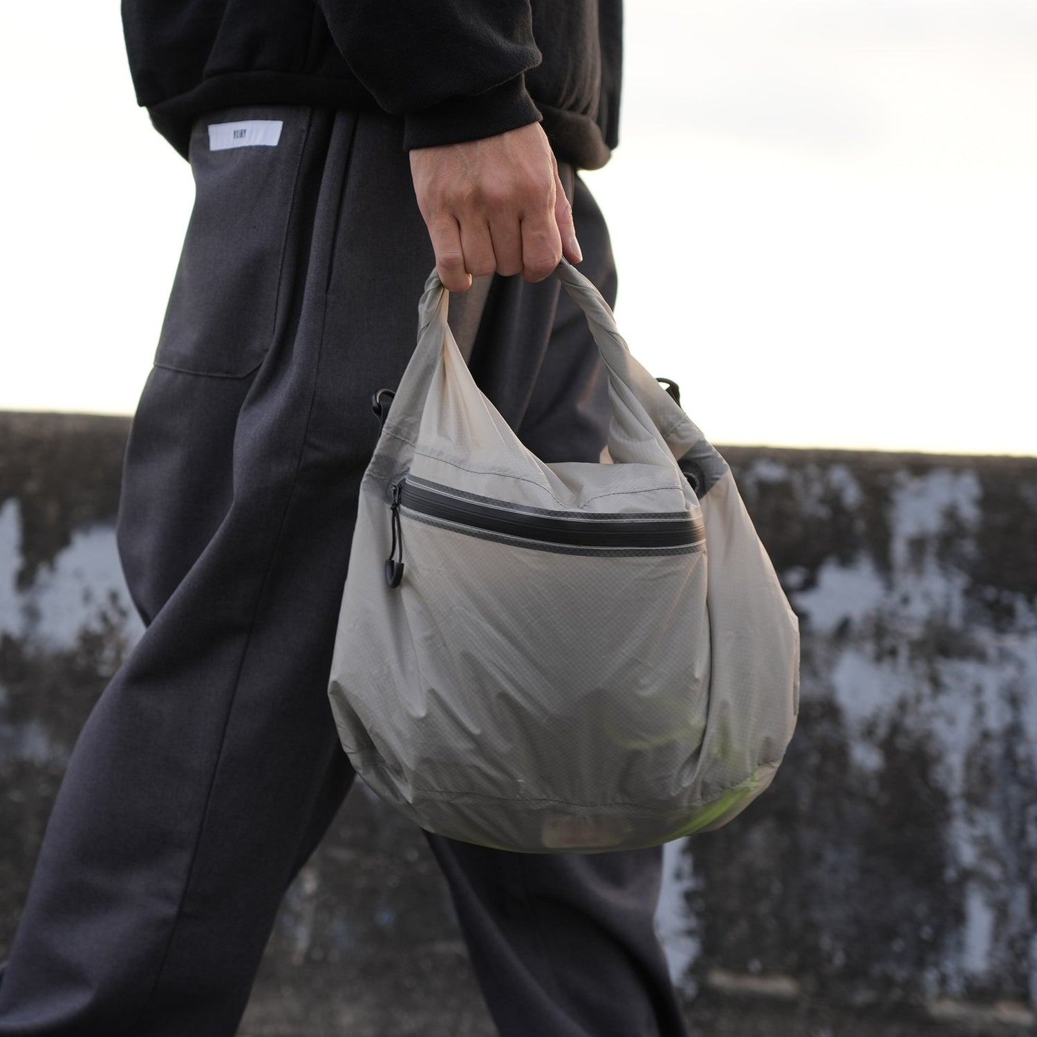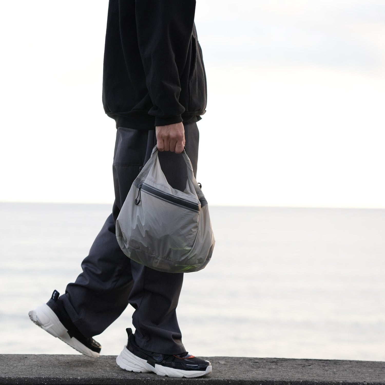 撥水加工を施したドライバッグ。本格的なアウトドア用品などにも多く使われている「高密度リップストップナイロン」を使用しており、薄くて超軽量でありながら、頑丈で耐久性に優れているのが特徴です。旅行時のサブバッグやエコバッグ、衣類・靴などの収納にぴったり。ステッチ部分にはシームテープを貼っており、生地の継ぎ目から浸水を防ぐので、ジムやサウナでも活躍します。使わない時はクルクルとコンパクトに丸めてバッグの持ち手などにつけておいても。荷物が増えた時のサブバッグとしても使えます。Dカンにストラップ(別売りです)をつけるとサコッシュとしても使用できる、汎用性の高い収納バッグです。S(約4L)とL(約10L)、2つのサイズをご用意していますので、用途に合わせてお選びください。