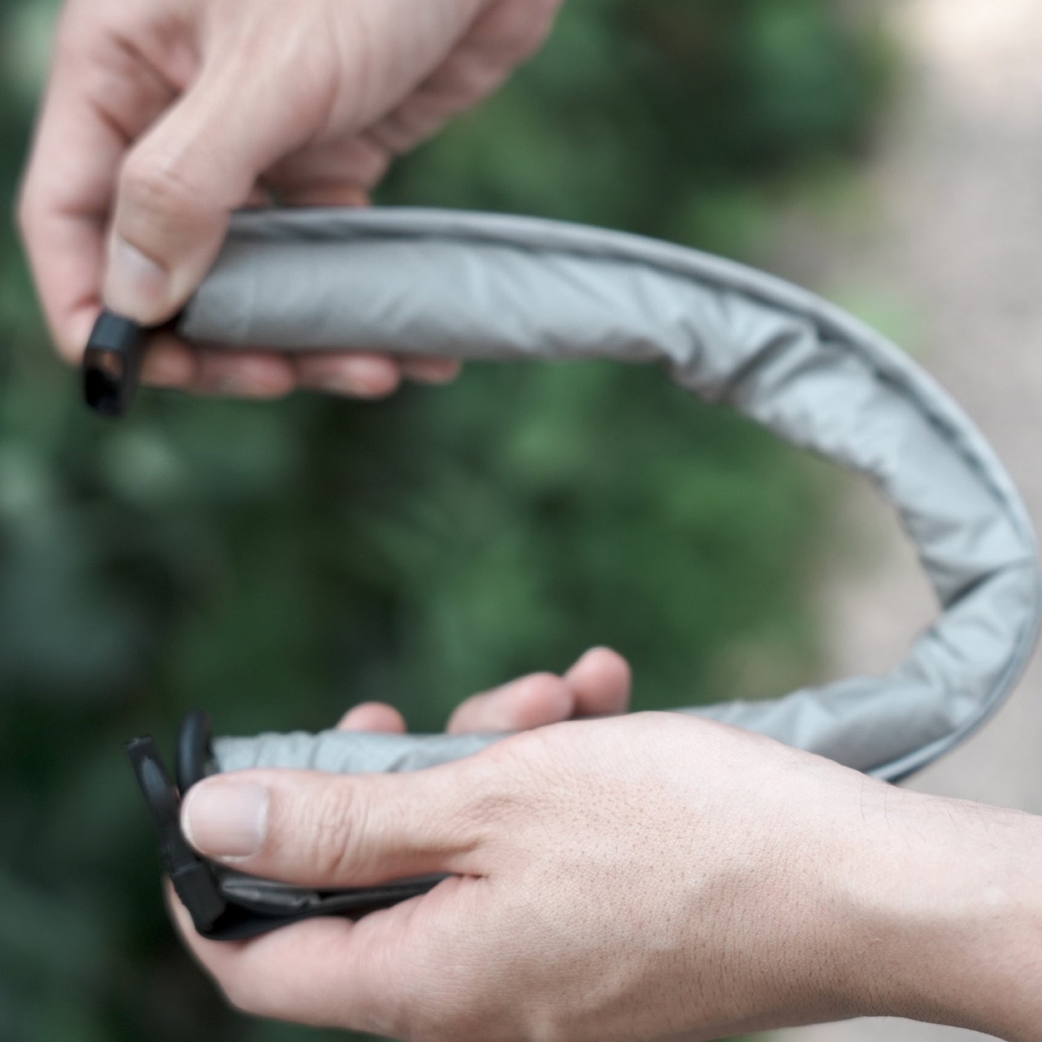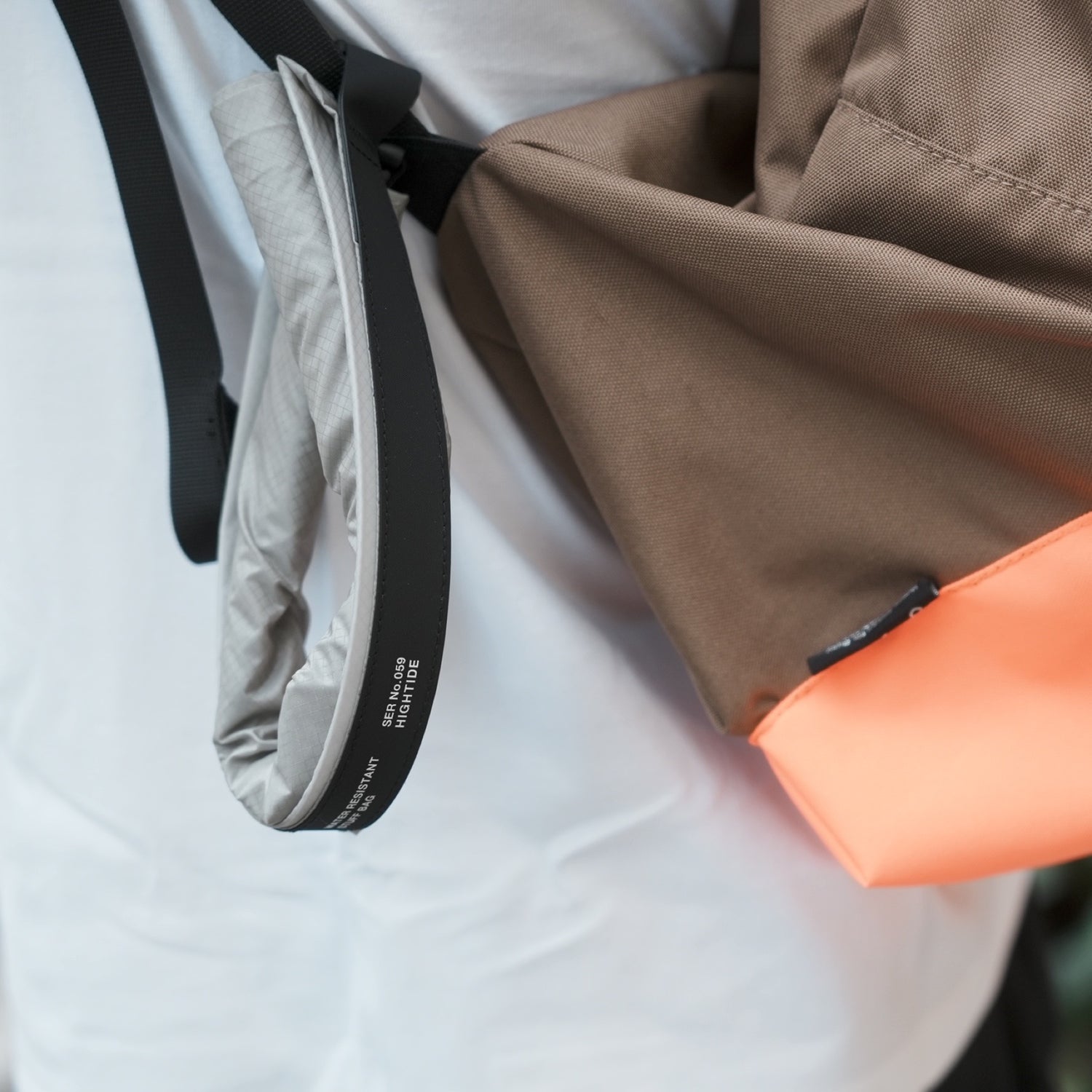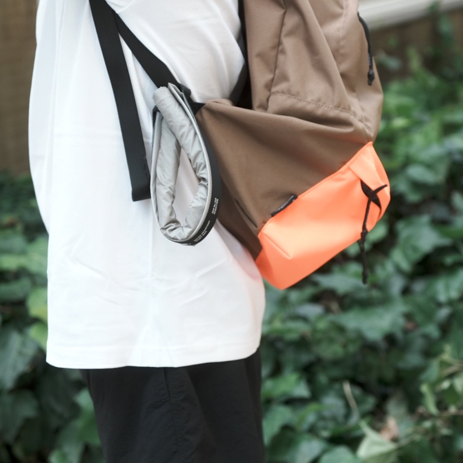撥水・防水系のバッグ類にロールトップタイプが増えたように感じていて初挑戦してみました。なるほどなぁと思いました。巻いて巻いて上でパチンと合わせて持ち手になるあたりはスマートでかっこいいし中身が遊ばないように調節もできるしいろいろ考えられているんですね。