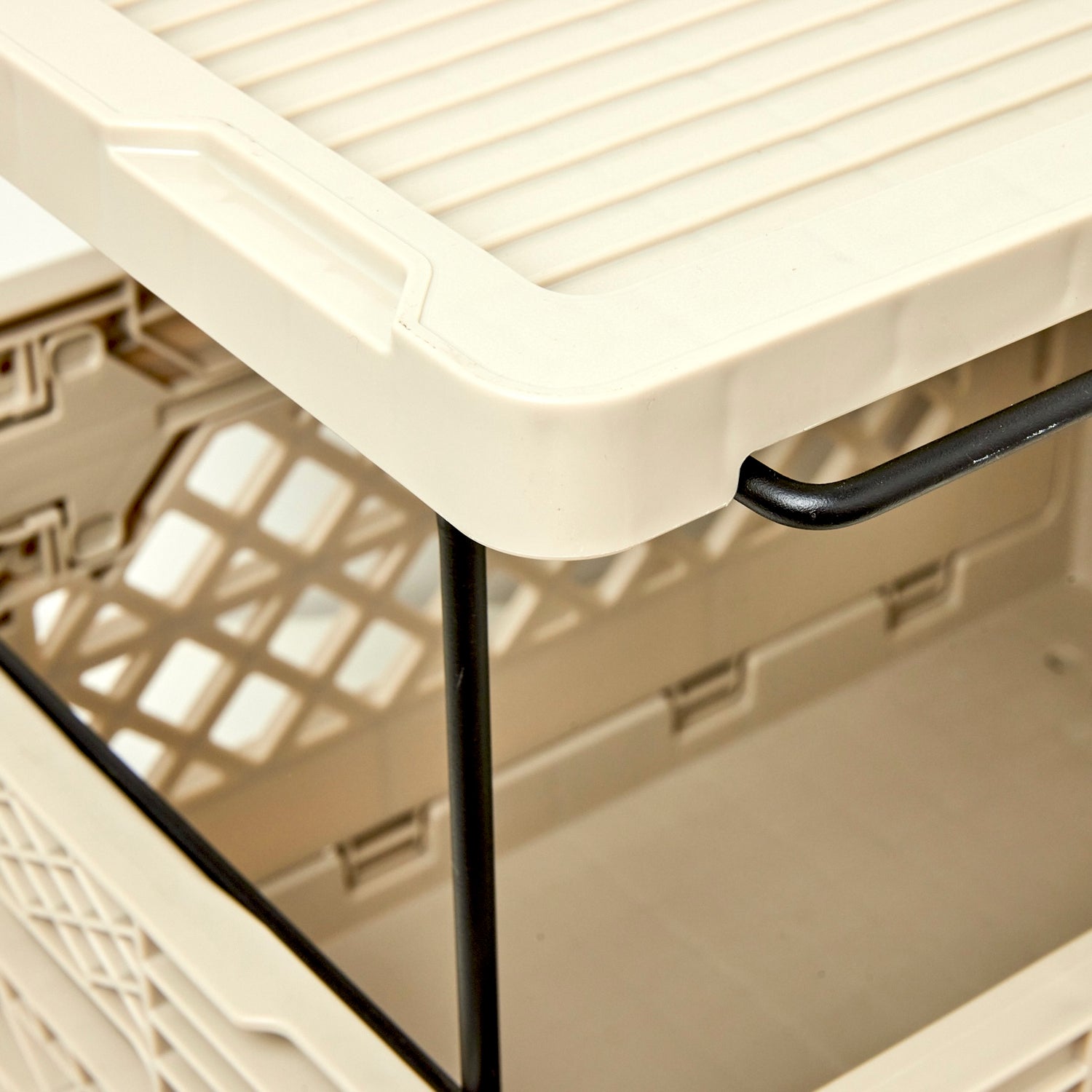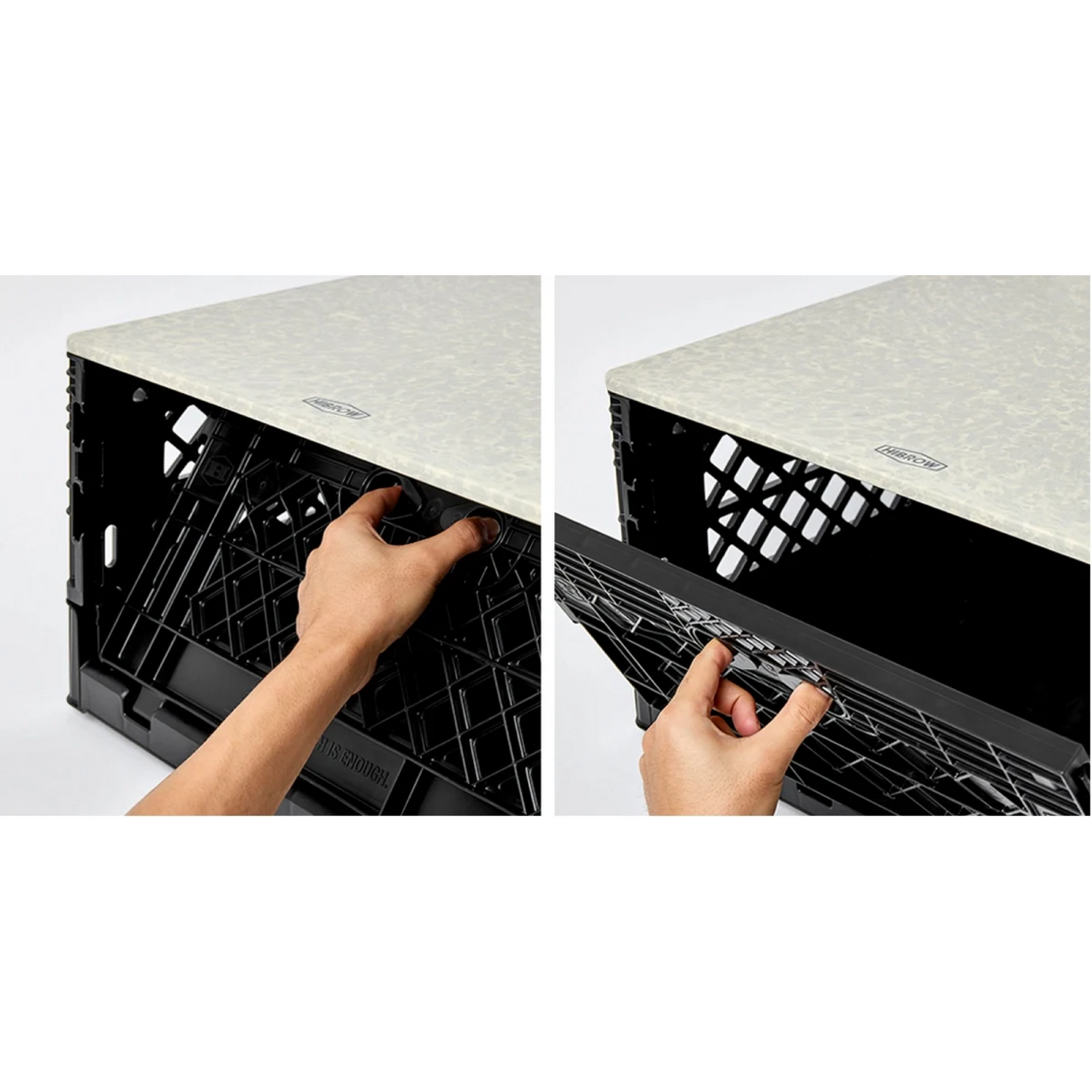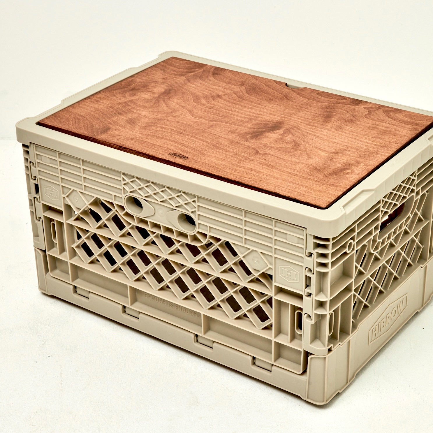 従来のウッドの天板に比べて約40%軽量で扱いやすく、汚れや水濡れにも強いのが利点。強度が高く変形にも強いので、屋外での使用にもぴったりです。上にウッドのFLIP TOPを重ねて使うこともできる上に、FLIP SHELFがシンデレラフィットするのもこだわり。FLIP BOXを畳んだ状態で乗せることも、FLIP TOP PLASTICをしたままFLIP BOXを重ねることも可能。FLIP BOXの拡張性をさらに広げるアイテムです。耐荷重5kg