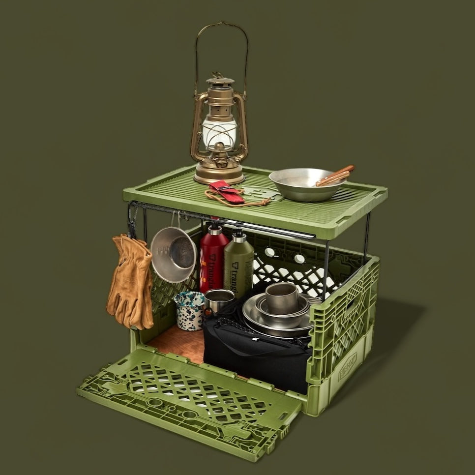 最大の特徴はその“拡張性の高さ”。折りたたみコンテナはこれまでも数多くありましたが、オプションパーツを組み合わせることでさまざまなスタイルに変化するのが特徴。インドア、アウトドア、使用するシーン、部屋のサイズ、収納するものに合わせて、それぞれのスタイルで楽しむことができます。
