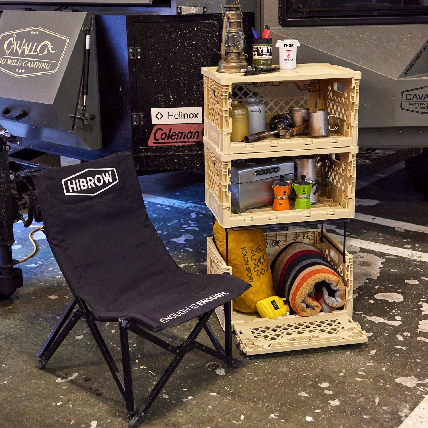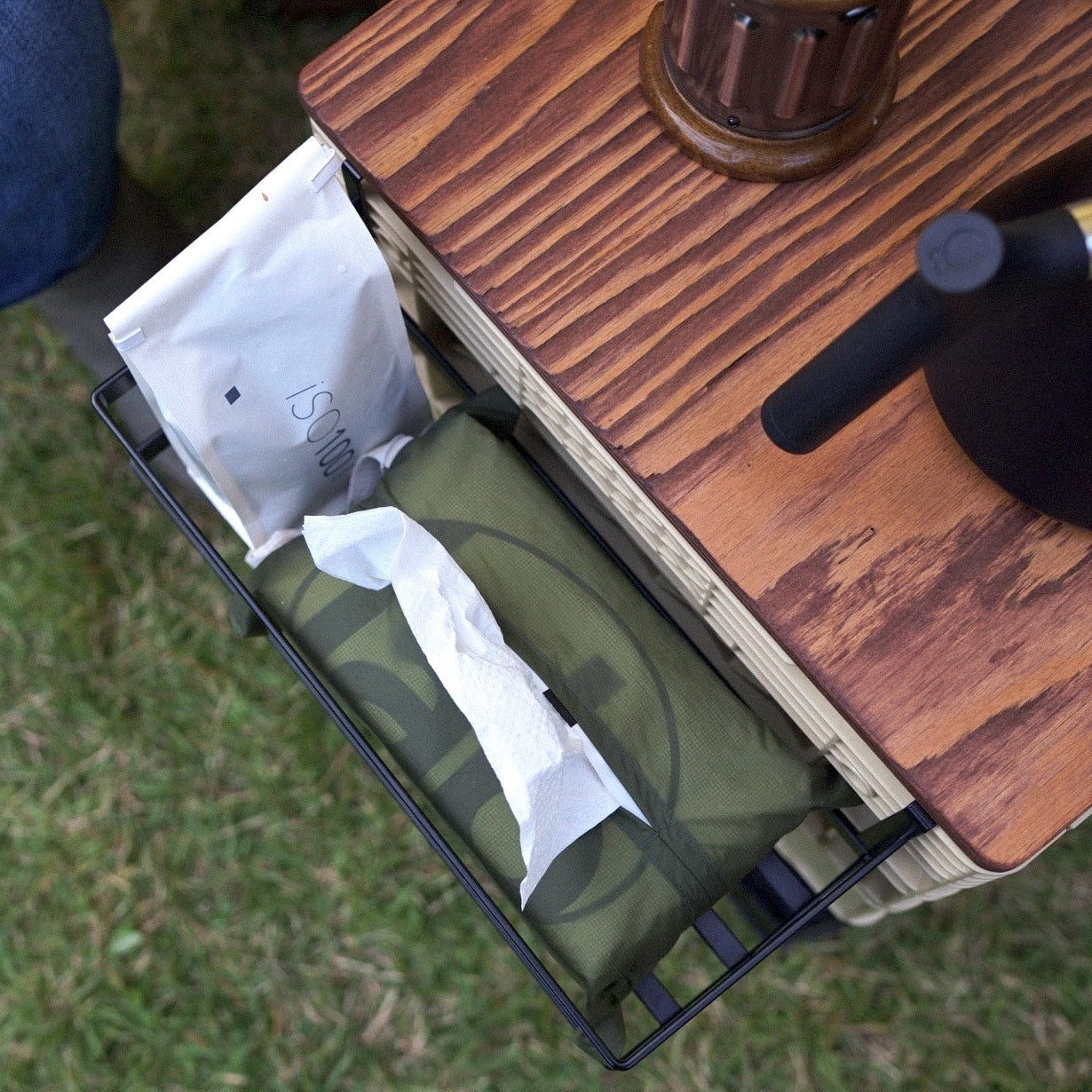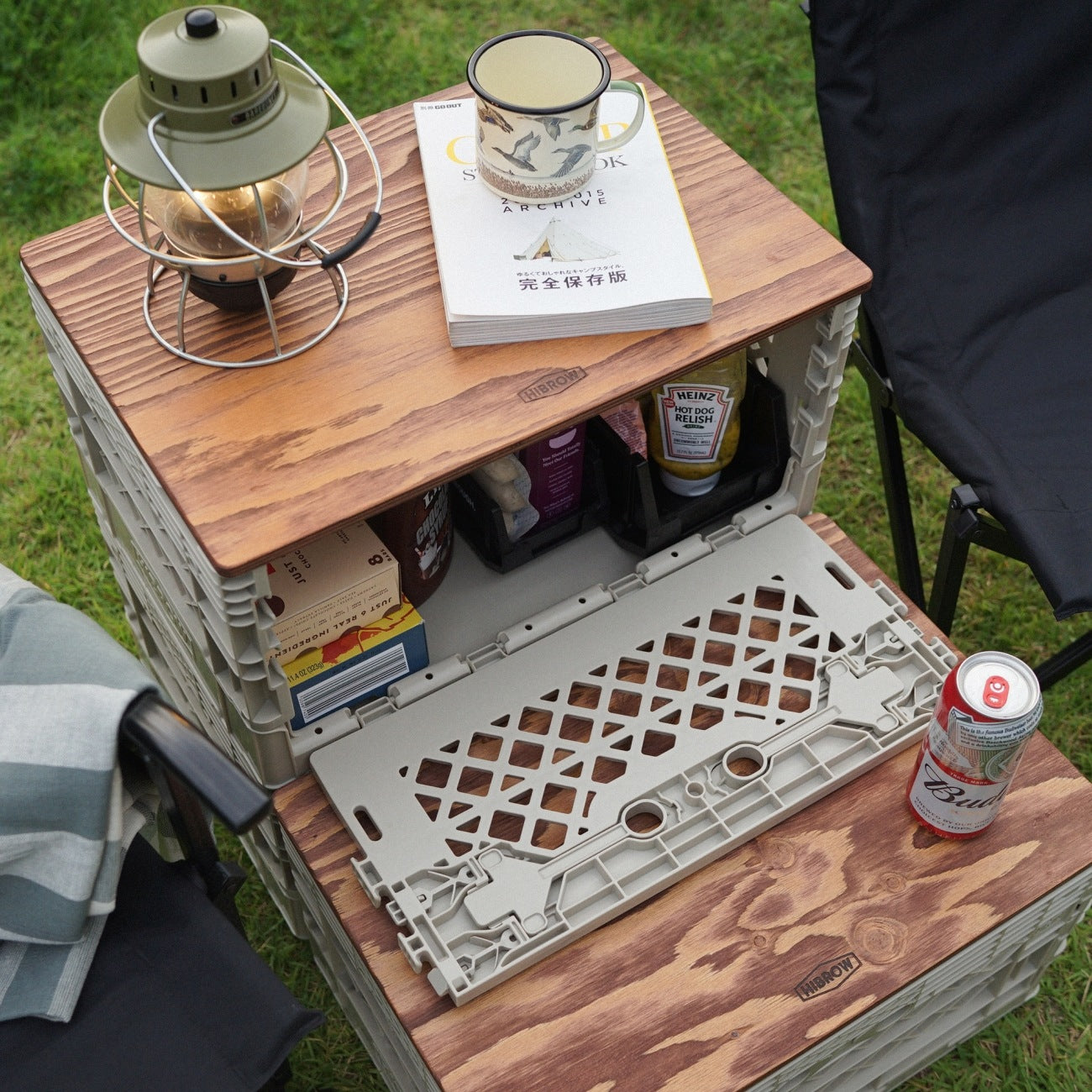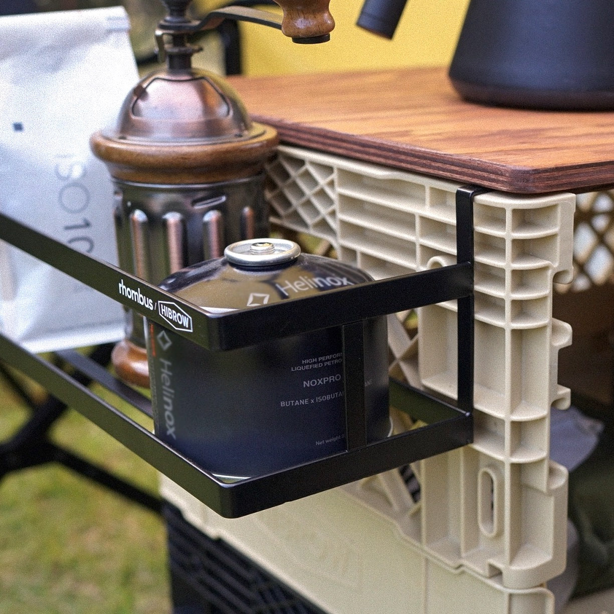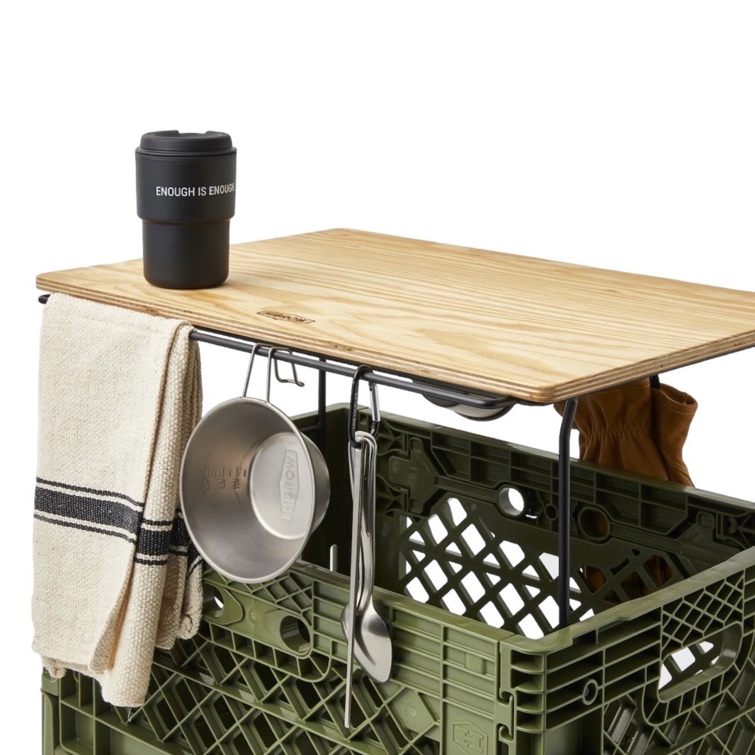 スチール細工で有名なロンバス社とコラボで製作された「SPICE RACK」は、FLIP BOXのサイドに組み合わせることが可能。アウトドアシーンでは調味料などを入れたり、部屋でテーブルとして利用する場合にちょっとした小物を入れたり、絶対にあると便利なパーツです。
