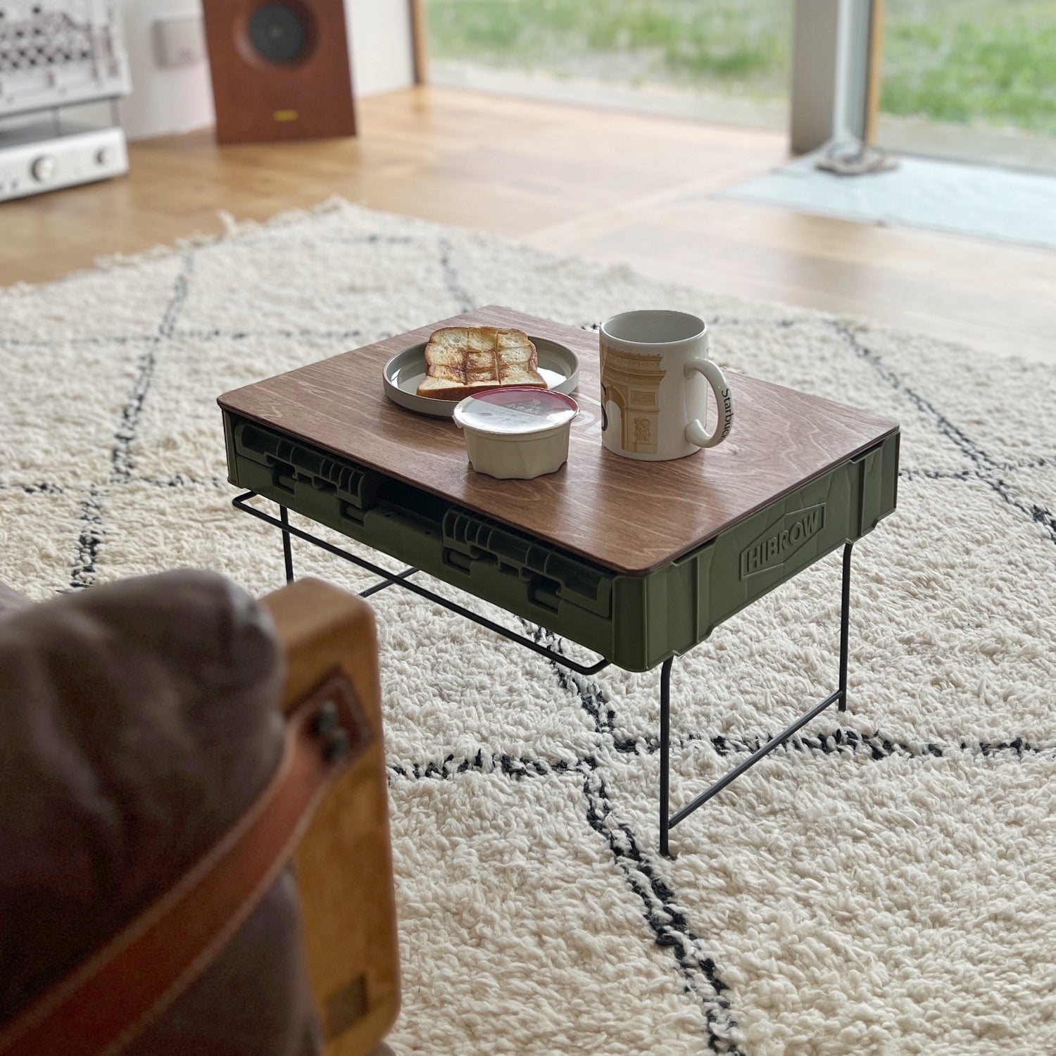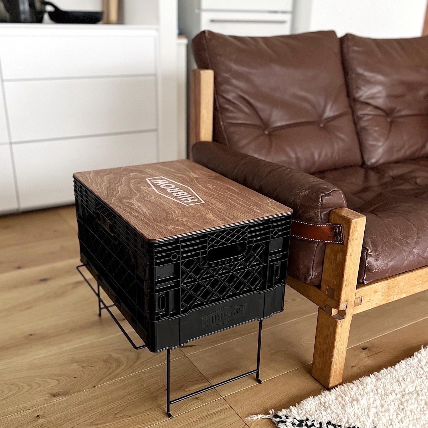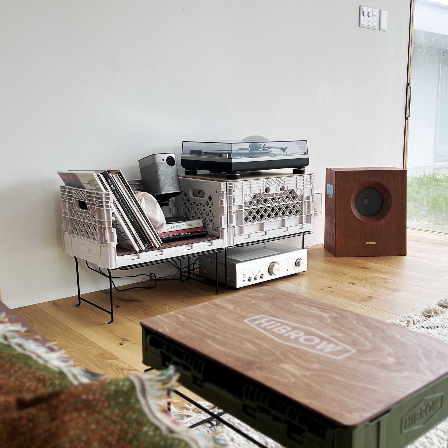 2番目の写真を参考にレコードプレーヤー台とレコード入れとして組み合わせで購入しました。とてもスタイリッシュでレコードの幅と下のボックスの大きさもちょうど良く気に入って使ってます。めちゃオススメです!!