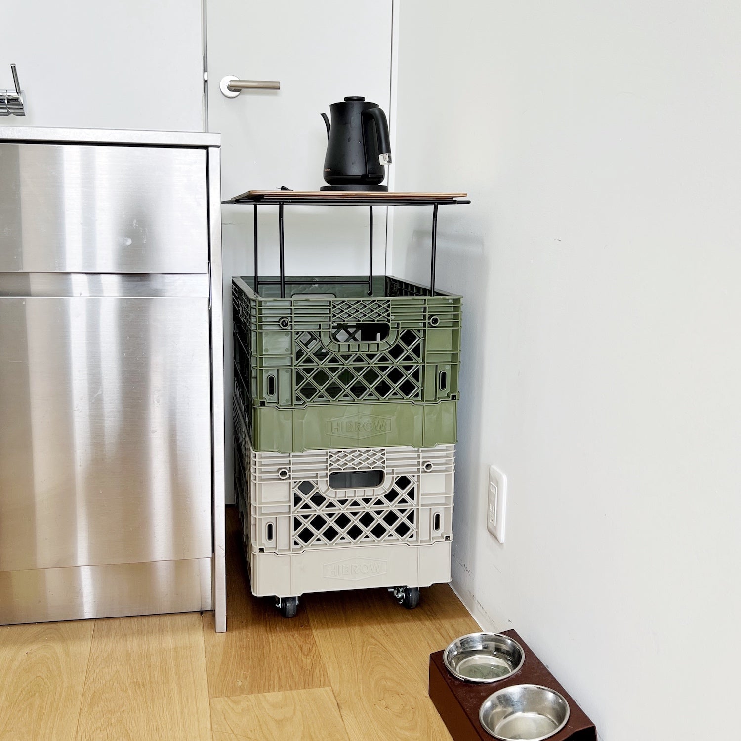 ※本商品は、フリップボックスの上に載せて使う「メラミン天板」と「ステンレスボウル2個」のセットです。フリップボックス本体は別売りとなります。