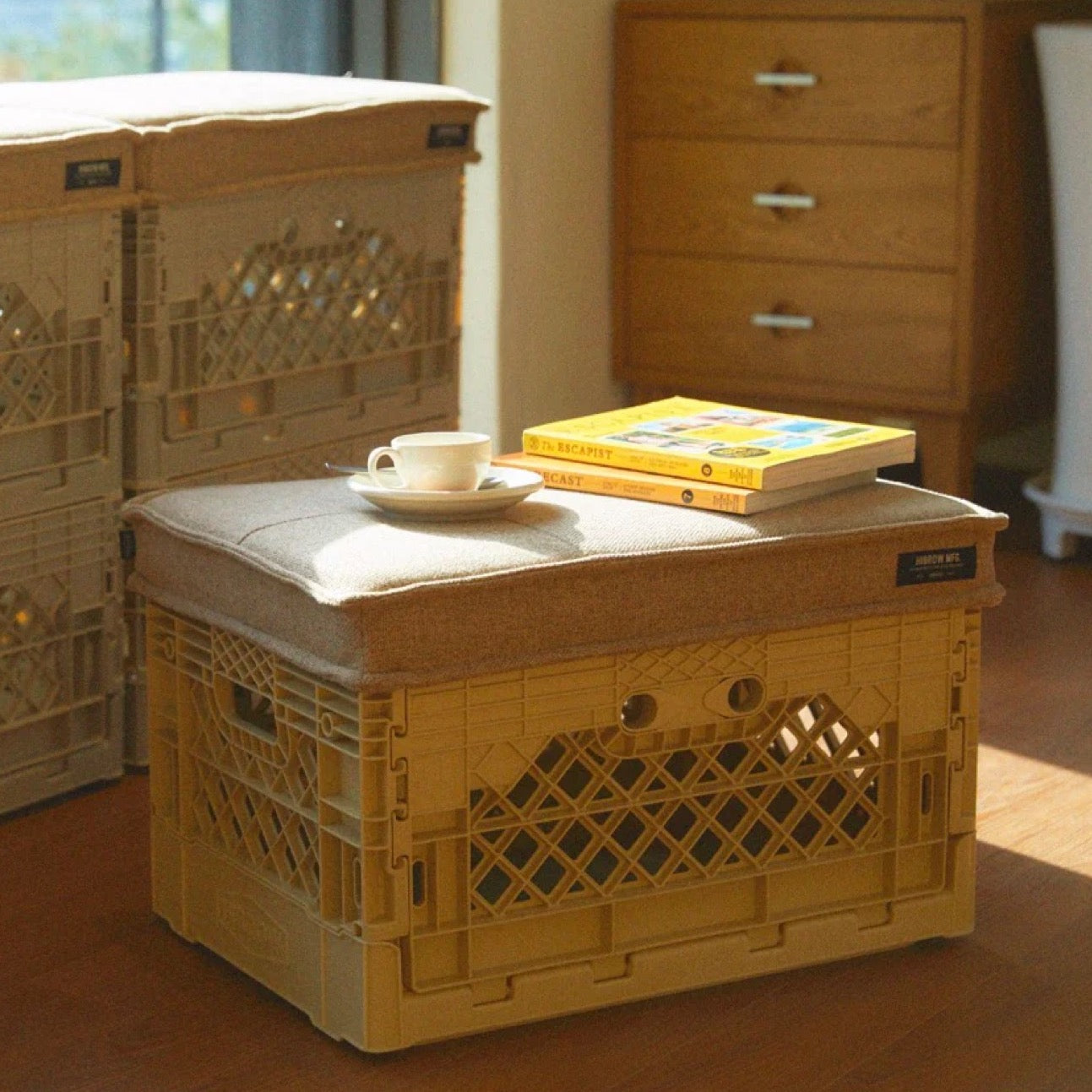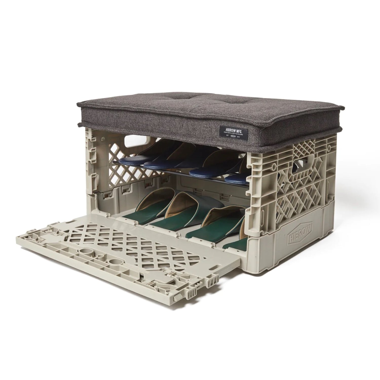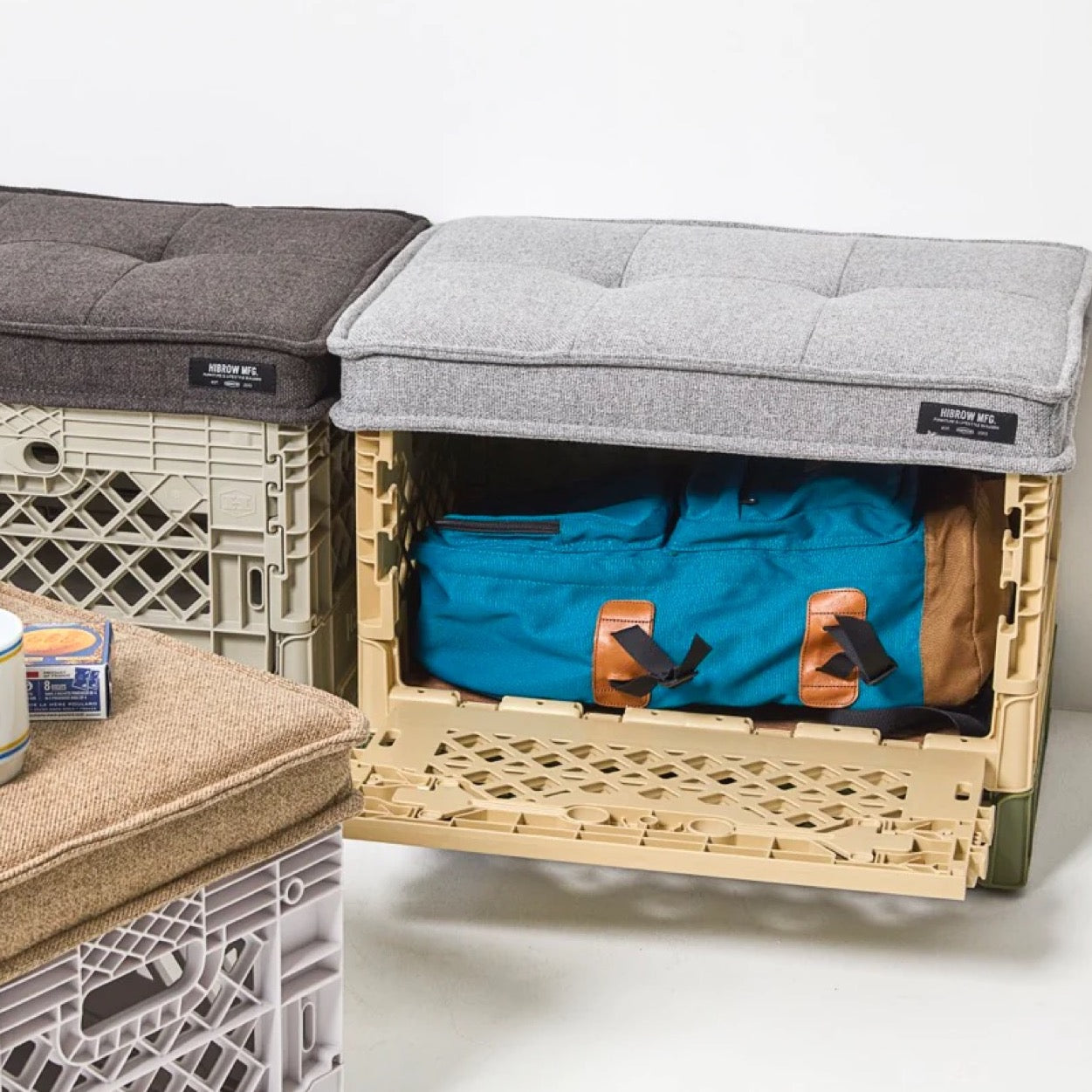 FLIP BOXに装着してソファーにできるクッション。ベルギーシンフォニーミルズの生地は汚れに強く、適度な弾力のあるスポンジを採用することで長時間楽に座れるよう設計しました。カラーはグレー、ブラウン、ブラックをスタンバイ。お好みのFLIP BOXとのカラーコーデを楽しんでください。耐体重 約 80kg