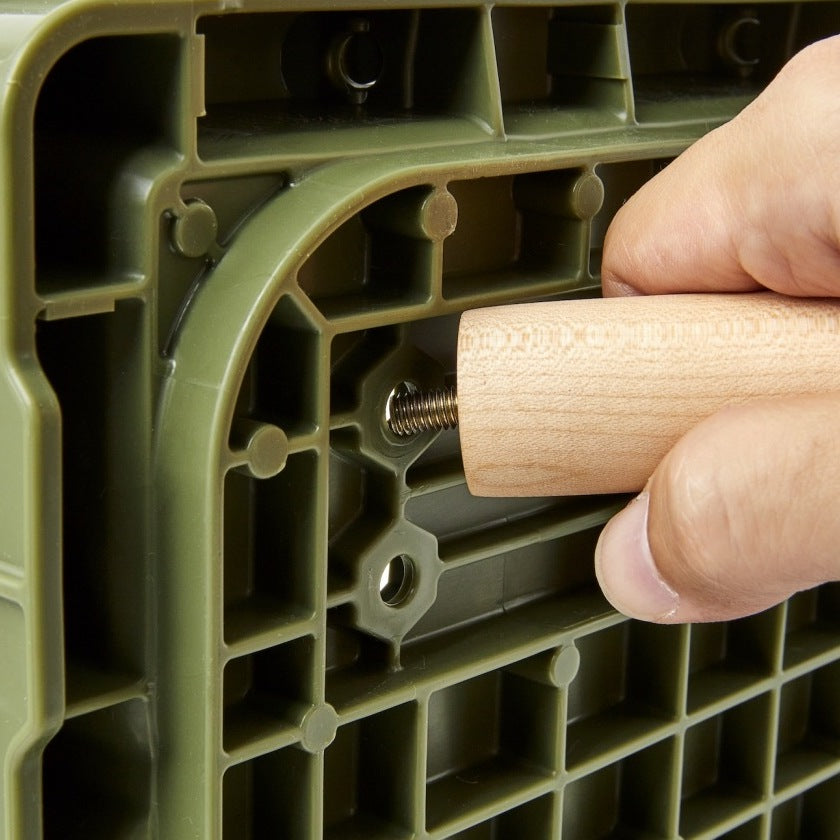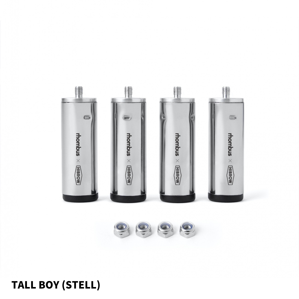 スチール細工の名家ロンバス社とコラボで製作されたスチール製と、上質なブナ材にをBONDEX社のオイルで仕上げた、従分な強度とシャープなルックスを兼ね備えた、FLIP BOX専用の脚「TALL BOY」。FLIP BOXにボルトオン方式で簡単に取付可能。アウトドア時に床面が汚れないよう活用するのはもちろん、インドアでも映えるデザイン。リビングプロダクトとしておすすめ。