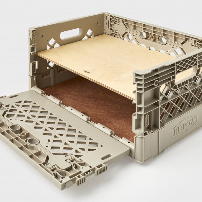 天板のFLIP TOPと同じく、こだわりのフィンランド産シラカバでできたFLIP BOX専用の棚板「FLIP SHELF」。SHELF RACKと組み合わせることでFLIP BOXに上下を分ける棚を作ることが可能です。また、FLIP BOXの底に敷くことで安定した底面を作ることも可能。