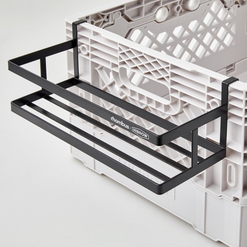 スチール細工で有名なロンバス社とのコラボで製作された「SHELF RACK」。FLIP BOXの中に装着することで、上下を分ける棚として機能するアイテムです。次に紹介するFLIP SHELFと組み合わせることも可能。