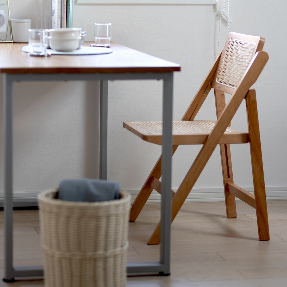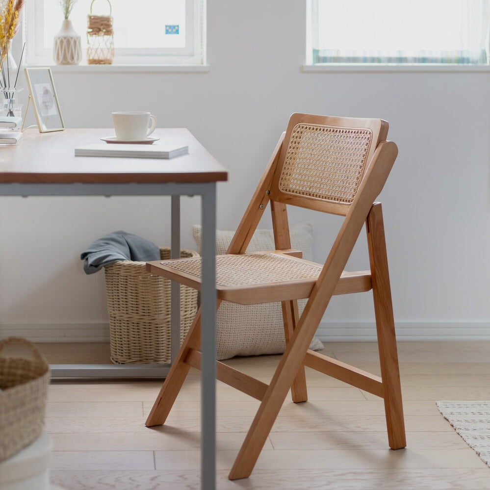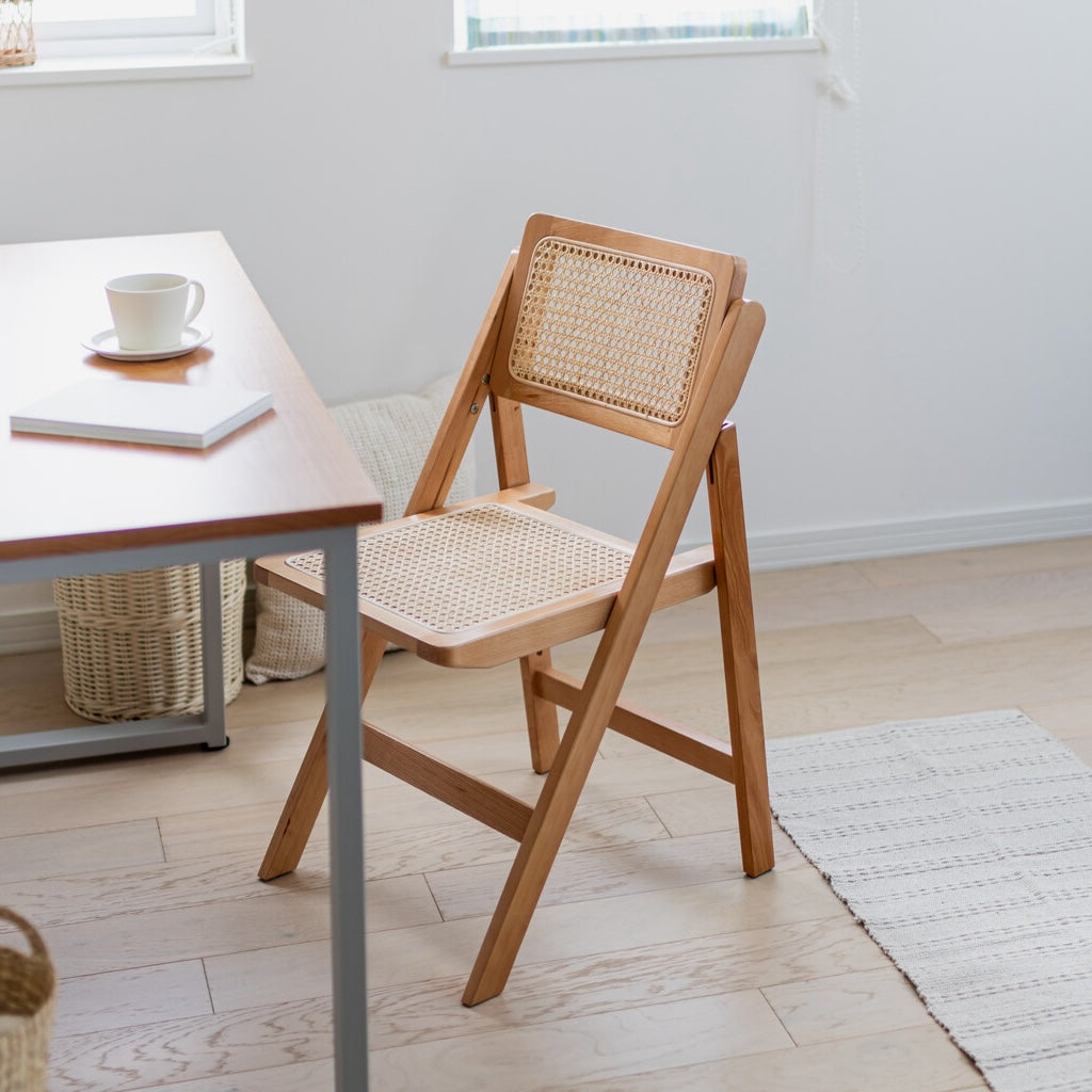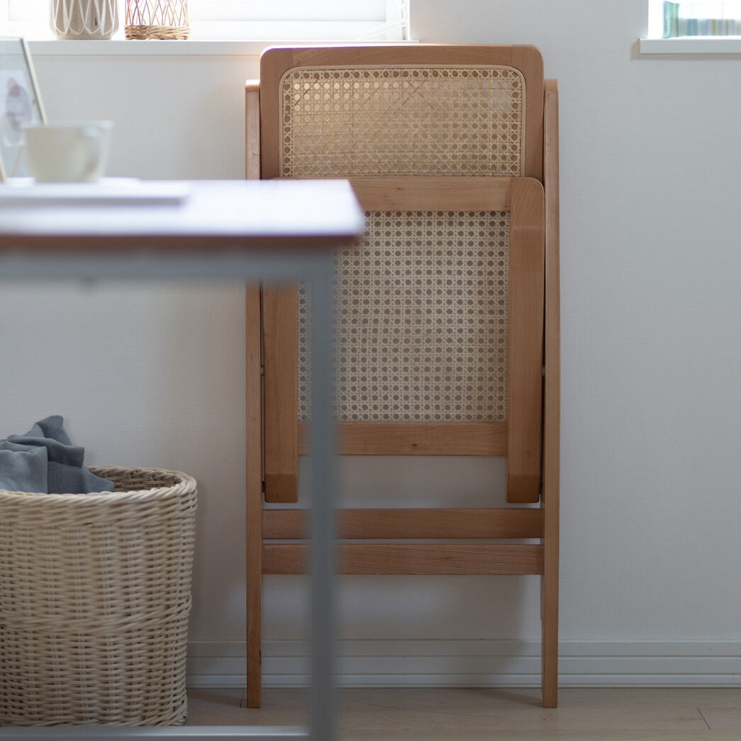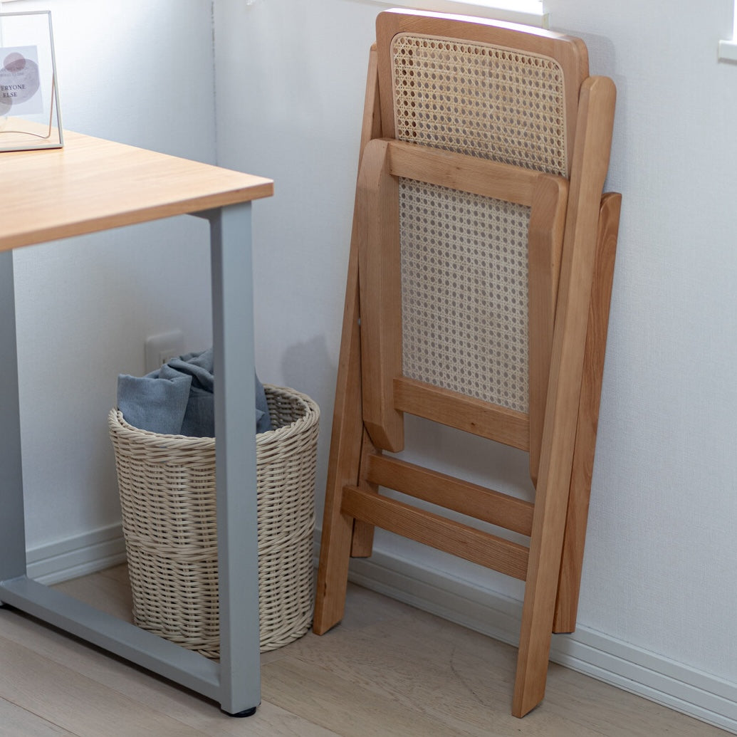 天然素材ならではの美しさ・しなやかさがあるラタンを取り入れ、日々の生活と共に変化する様や素材の風合いを楽しめる。柔らかい抜け感でレトロ感漂うかごめ編みで、シンプルで軽やかなデザインに仕上げています。使わないときは折りたたんで収納が可能で、軽量なので持ち運びも楽です。ブランドモチーフとしてタッセル飾りを付属しています。素材感のあるナチュラルな雰囲気のお部屋にタッセル付き(1個)。マッチするコーディネートができます。天然木の素材感あるチェアを1つ取り入れるだけで、お部屋が温かみのある印象になります。