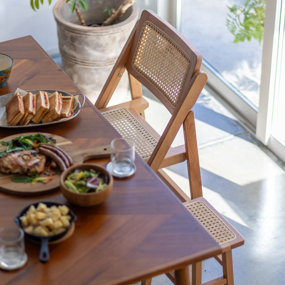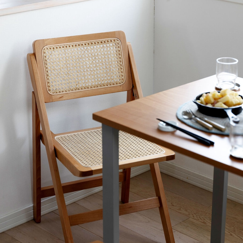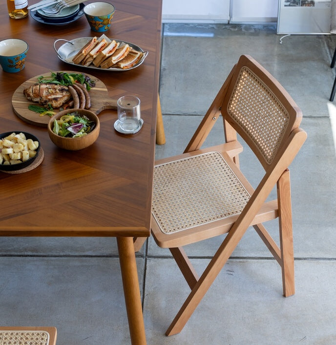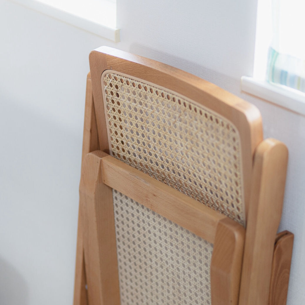 HATCHではマルセル・ブロイヤーのCESCA CHAIRやジャンカルロ・ピレッティのPlia Chairなども扱ってるし、ジャン・プルーヴェやピエール・ジャンヌレの椅子を集めてる友人も多い。でも僕は、いい意味で“椅子にうるさくないタイプ”。見た目が可愛くて、座り心地が良くて、しっかりしてて、折りたためて、価格も高すぎず安すぎず。そんな“ちょうどいい椅子”があれば、僕は十分。で、これがまさにそう。ビーチ材とラタンの天然素材の組み合わせが、ふんわり優しい空気をまとっていて、どんな部屋にもちゃんと馴染む。ラタンの涼しげな感じも好み。最近は、ベランダでチルする時にこの椅子を持ち出すのが、ちょっとした楽しみになってます。これ以上の"ちょうどいい"椅子、しばらくは見つからなそう。