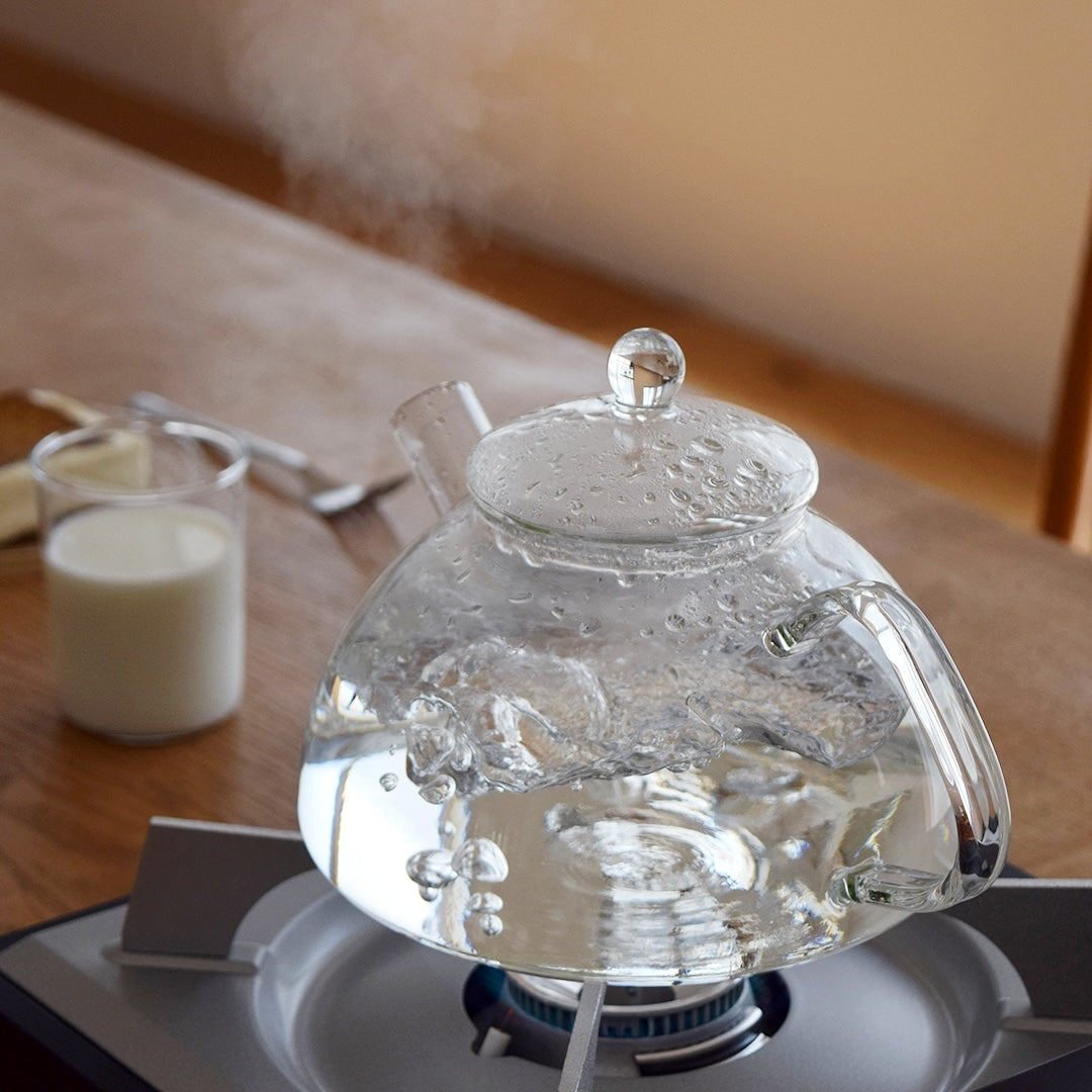お湯を沸かすだけなのに、ちょっとワクワクさせてくれるケトル。もっと安いケトルはいくらでもあるけど、この満足感なら9,900円でもコスパがいい。ガラス越しにぐつぐつと気泡が立ち上がっていく様子は、不思議と何度見ても飽きない。ぼーっと沸騰を眺めてる自分がいる。これからの季節、沸かしたお湯にそのままハーブティーをいれてポット代わりにするのもおすすめ。初めて火にかける時はちょっとドキドキしました。