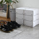 組み立て式の収納ボックス。1パック2個入り。スニーカーがピッタリと入るサイズなので、ブランドによって大きさやデザインの違うスニーカーの箱からアーカイブボックスに統一して積み上げればすっきりと見せることができます。クリアファイルも入るようになったことでコピー用紙のストックや仕事の書類保管にもおすすめ。他にもCD収納、ファッション小物、キッチン周りなどあらゆる場面でユーティリティに使えるちょうどいいサイズの収納ボックスです。