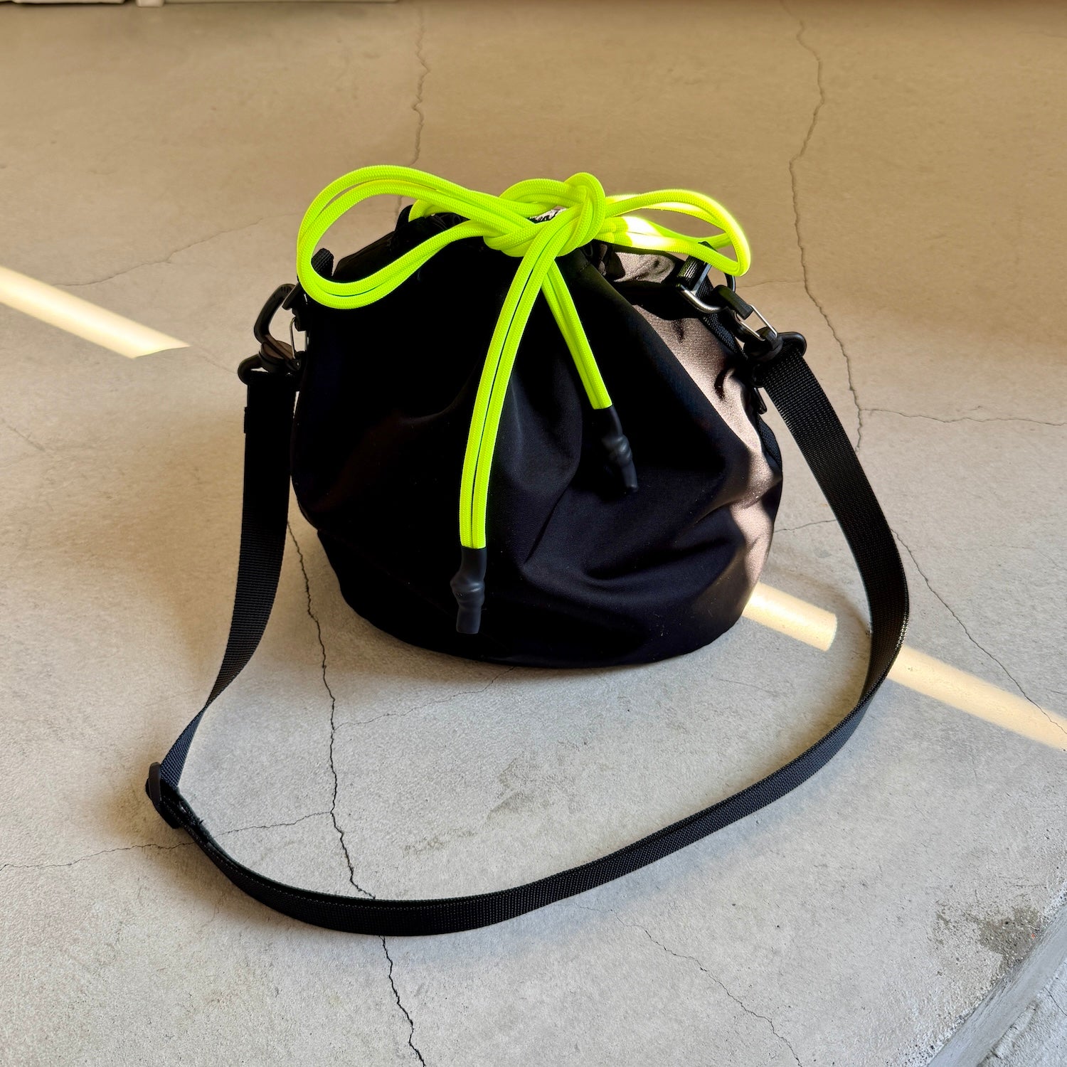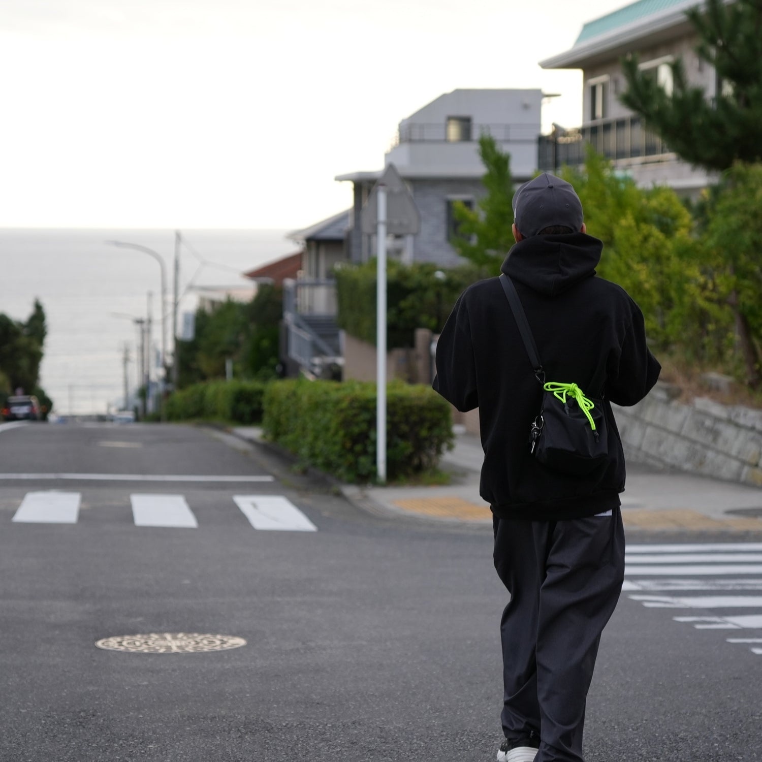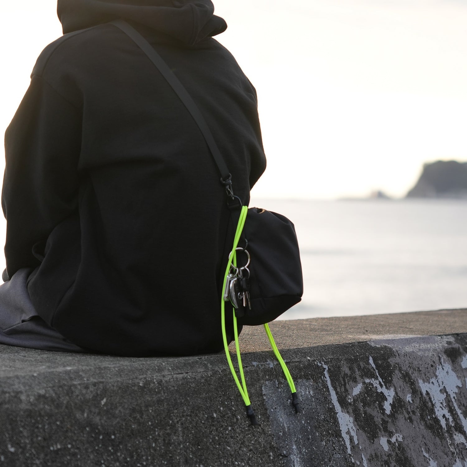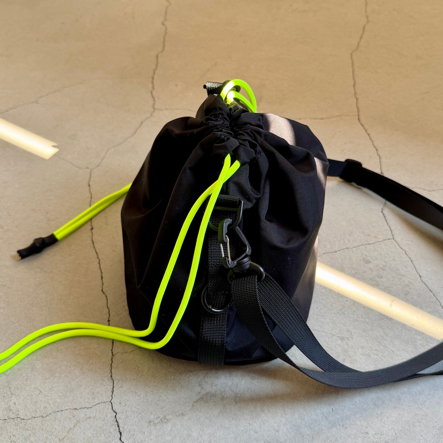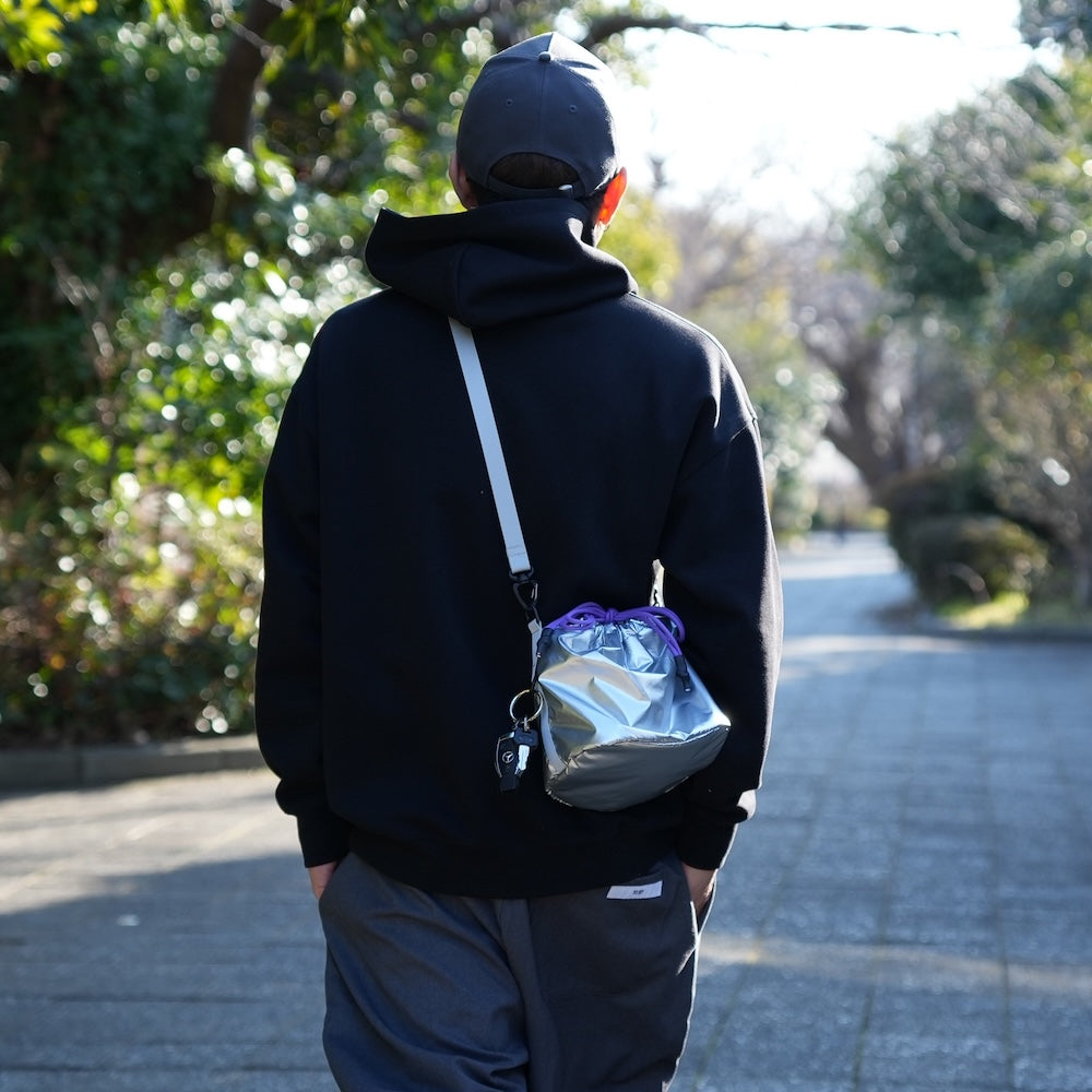 背負った時に可愛く見えるサイズ感と、ちゃんと物が入る実用性。このバランスを追求して、理想の巾着ショルダーが完成しました。ずーーっと人気の“メンズが持っても可愛い巾着バッグシリーズ”。すっかり巾着バッグにハマった編集長が、どうしてもオリジナルを作りたいと言い出し、そこから長かった…。まず、サイズ感にめちゃめちゃこだわりました。何度も何度もサンプルを重ねて辿り着いた、このバランス。大きすぎず、小さすぎず。小さいと収納力がなくなるし、大きいと背負ったときに可愛くないんです。背負った時のビジュアルとある程度物を入れたいという実用性、どちらも妥協せずに仕上げました。ブラック生地には蛍光イエローの、新色のシルバー生地にはパープルのドローコードが、ほどよい遊びを入れてくれてる。背負ったときにアクセントになるし、だらんと垂らしても雰囲気が出る。サイドにはDカンではなくカラビナをつけたので、鍵やキーホルダーをそのまま引っ掛けられます。内ポケット付きで収納力ばっちり。500mlペットボトルだって入っちゃう。メンズが持つと可愛くてかっこいい、女性が持つとスタイリッシュ。THE 巾着ショルダー、マジで推します。