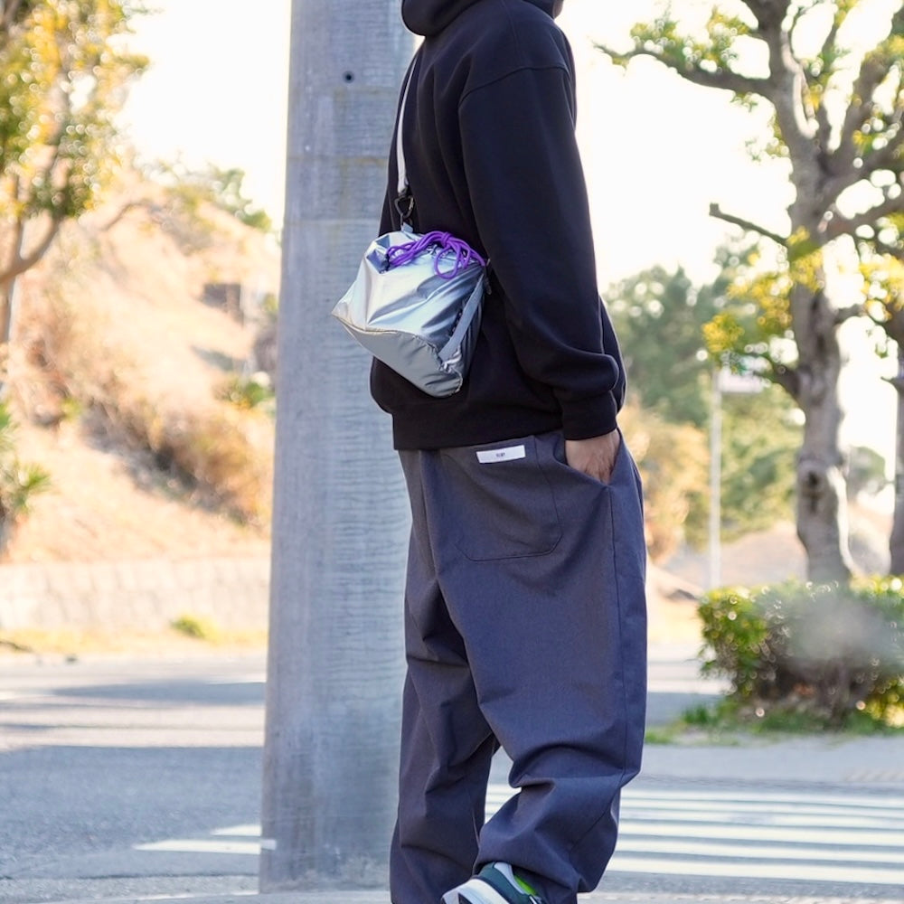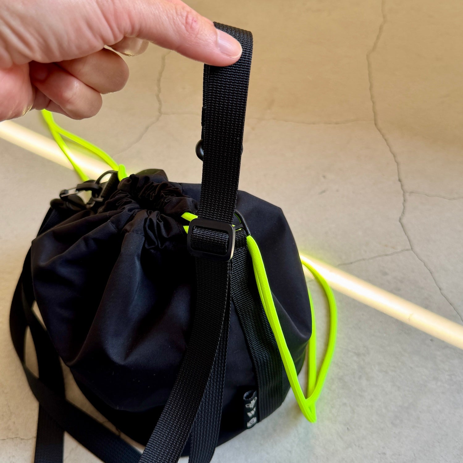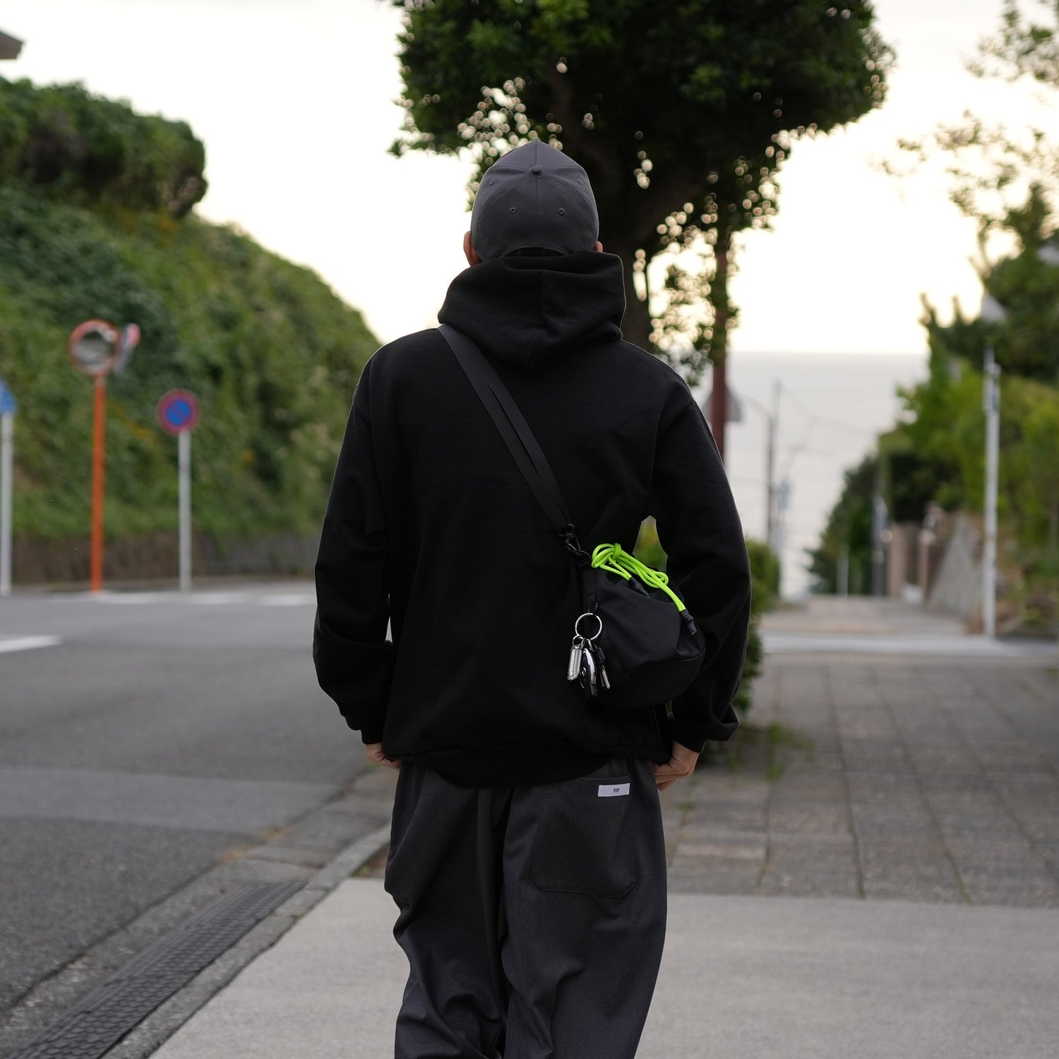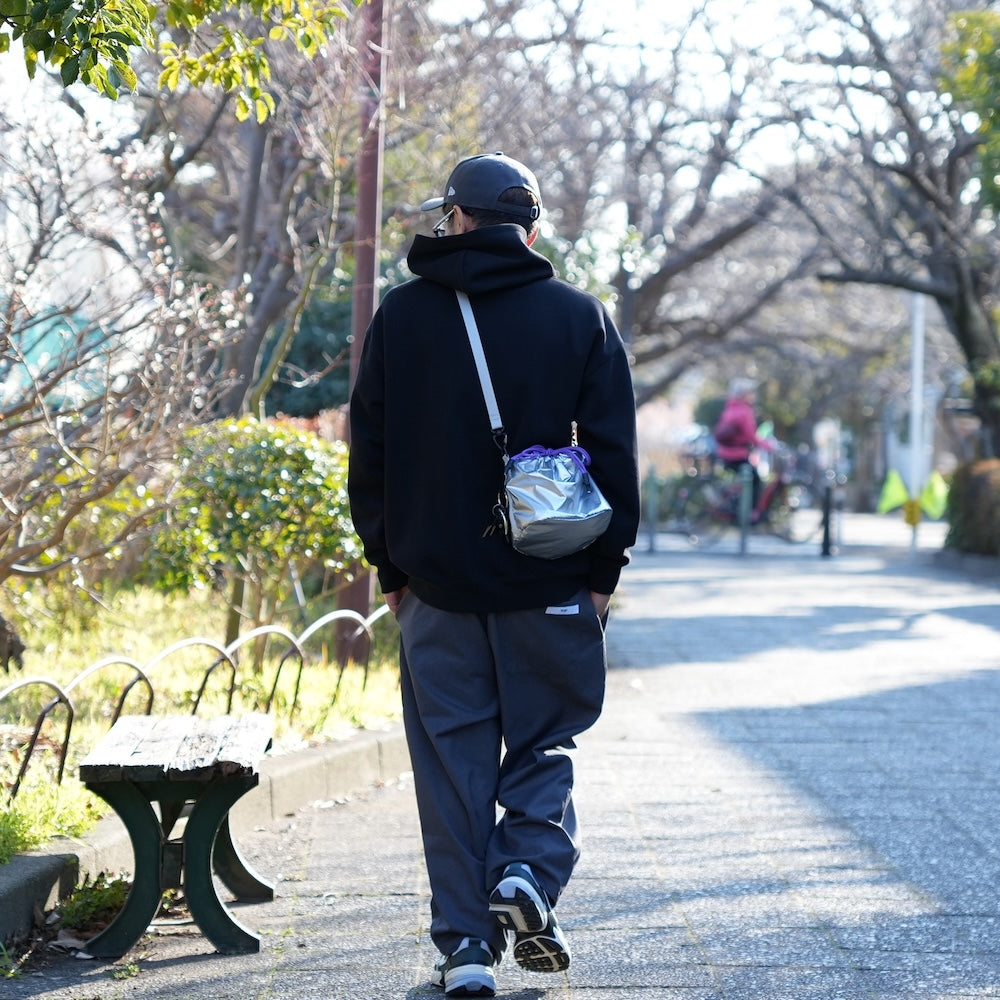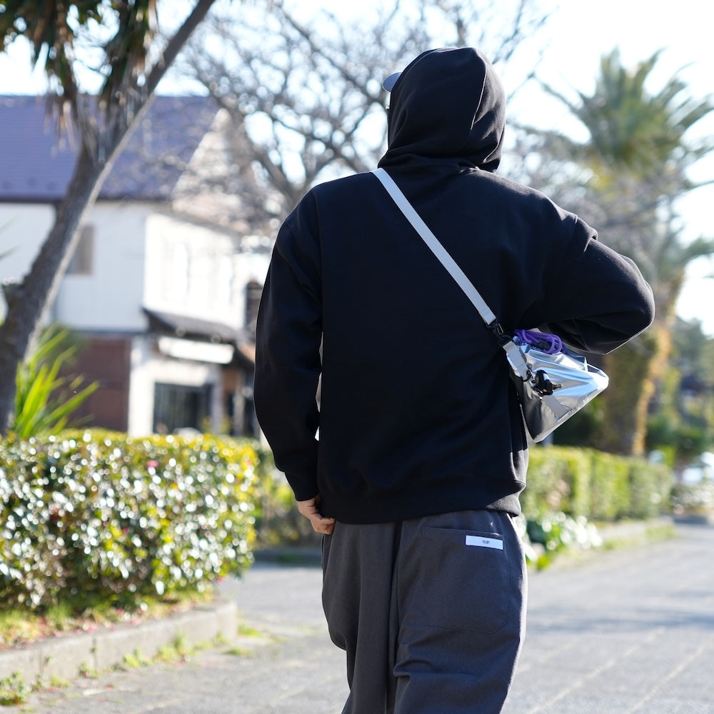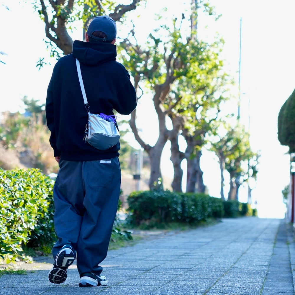 背負った時に可愛く見えるサイズ感と、ちゃんと物が入る実用性。このバランスを追求して、理想の巾着ショルダーが完成しました。ずーーっと人気の“メンズが持っても可愛い巾着バッグシリーズ”。すっかり巾着バッグにハマった編集長が、どうしてもオリジナルを作りたいと言い出し、そこから長かった…。まず、サイズ感にめちゃめちゃこだわりました。何度も何度もサンプルを重ねて辿り着いた、このバランス。大きすぎず、小さすぎず。小さいと収納力がなくなるし、大きいと背負ったときに可愛くないんです。背負った時のビジュアルとある程度物を入れたいという実用性、どちらも妥協せずに仕上げました。ブラック生地には蛍光イエローの、新色のシルバー生地にはパープルのドローコードが、ほどよい遊びを入れてくれてる。背負ったときにアクセントになるし、だらんと垂らしても雰囲気が出る。サイドにはDカンではなくカラビナをつけたので、鍵やキーホルダーをそのまま引っ掛けられます。内ポケット付きで収納力ばっちり。500mlペットボトルだって入っちゃう。メンズが持つと可愛くてかっこいい、女性が持つとスタイリッシュ。THE 巾着ショルダー、マジで推します。