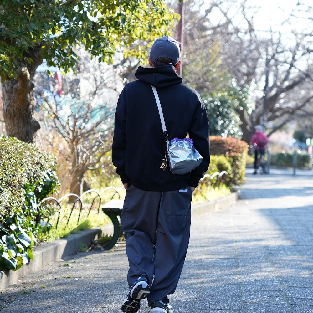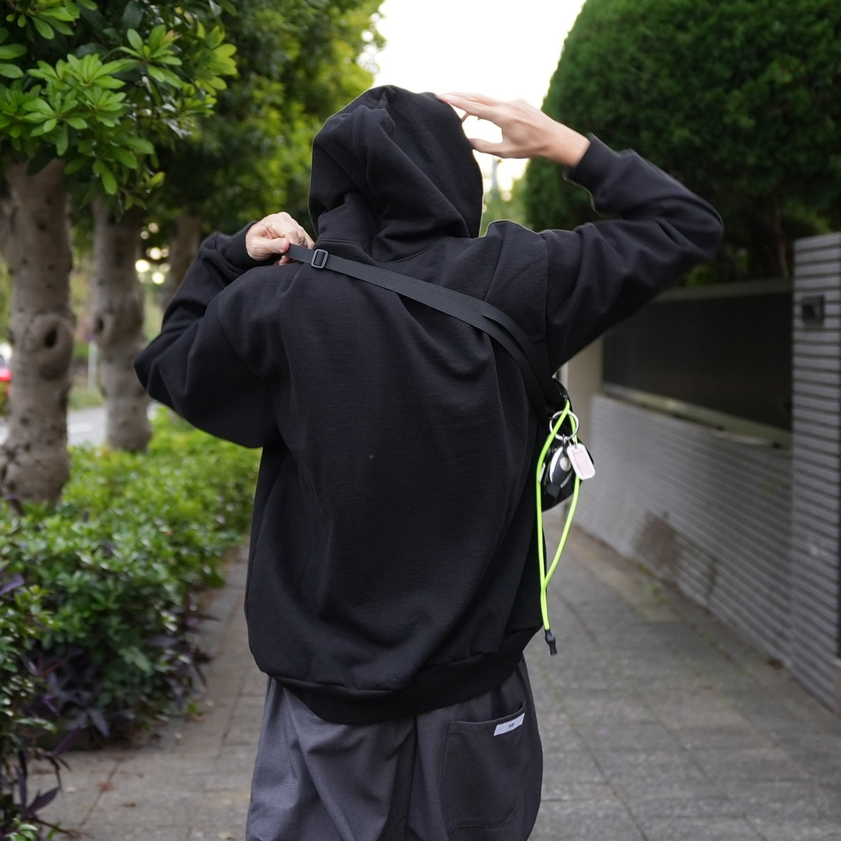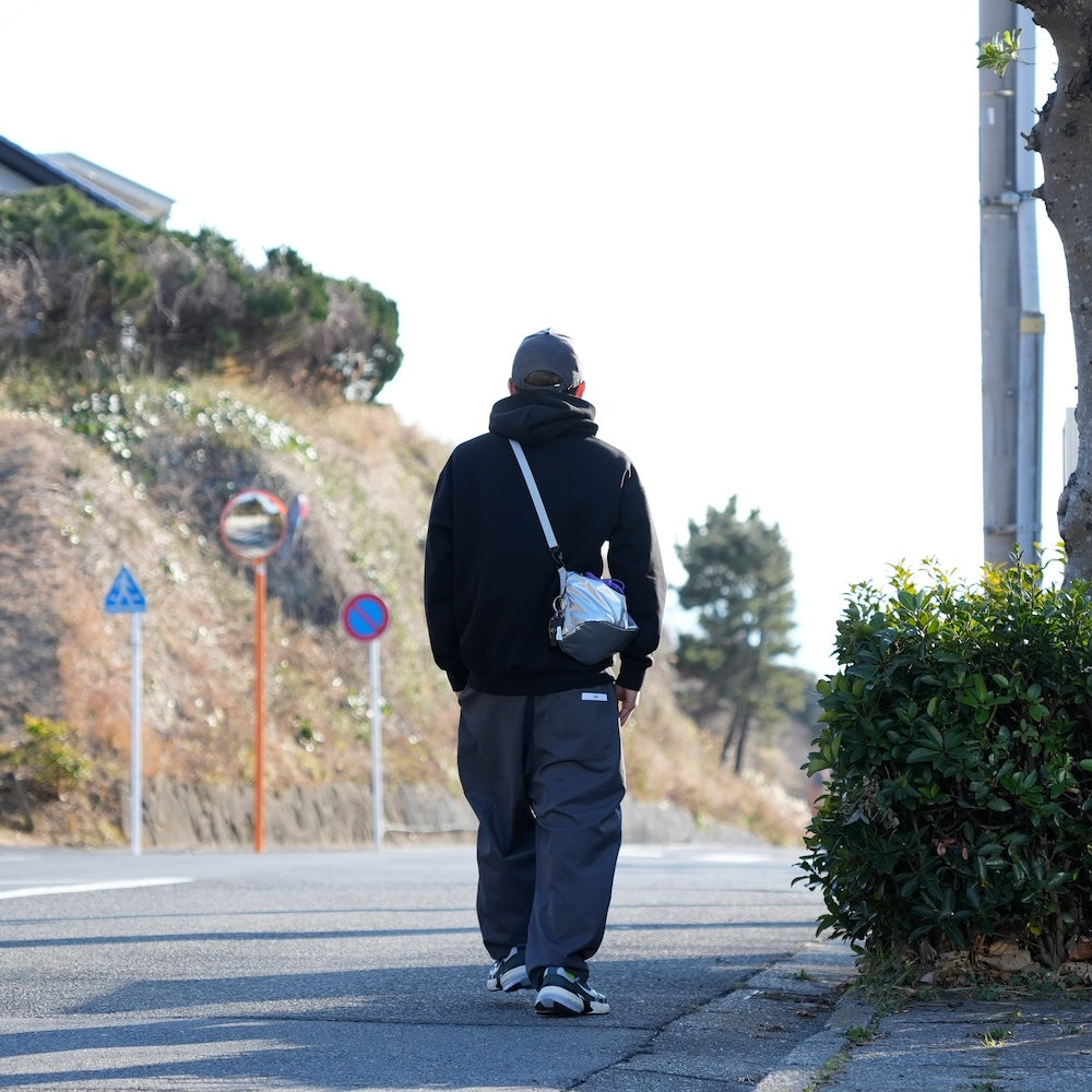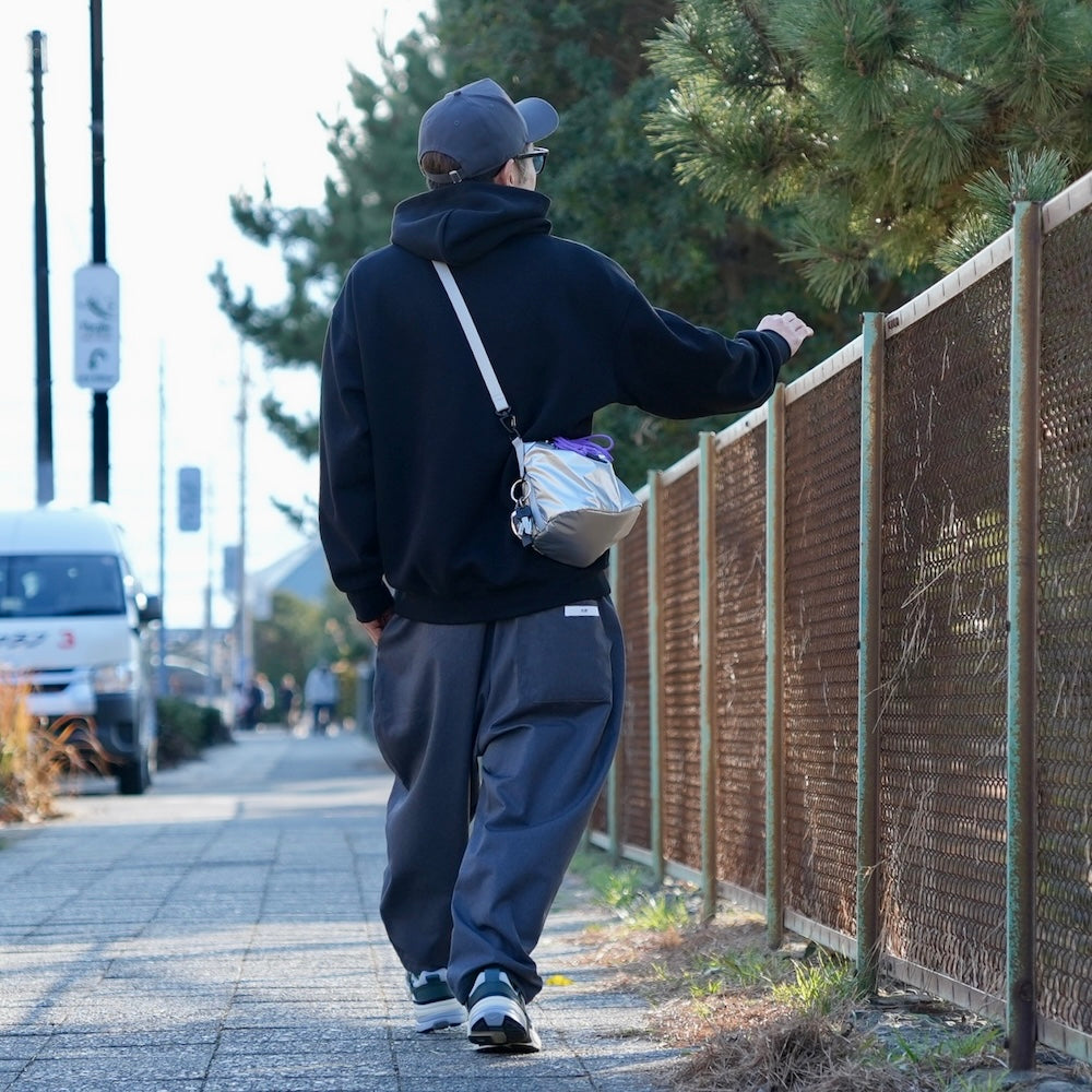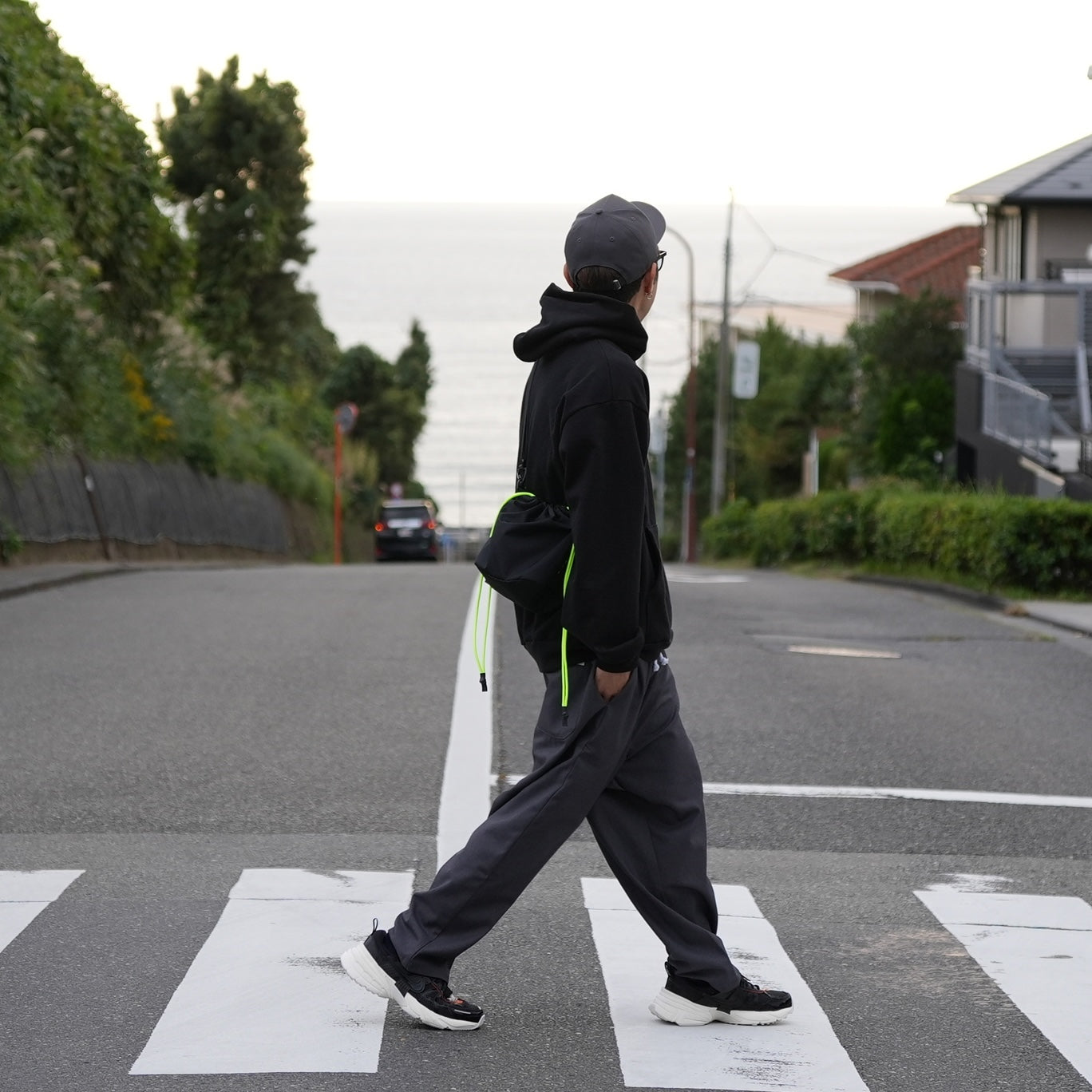 背負った時に可愛く見えるサイズ感と、ちゃんと物が入る実用性。このバランスを追求して、理想の巾着ショルダーが完成しました。ずーーっと人気の“メンズが持っても可愛い巾着バッグシリーズ”。すっかり巾着バッグにハマった編集長が、どうしてもオリジナルを作りたいと言い出し、そこから長かった…。まず、サイズ感にめちゃめちゃこだわりました。何度も何度もサンプルを重ねて辿り着いた、このバランス。大きすぎず、小さすぎず。小さいと収納力がなくなるし、大きいと背負ったときに可愛くないんです。背負った時のビジュアルとある程度物を入れたいという実用性、どちらも妥協せずに仕上げました。ブラック生地には蛍光イエローの、新色のシルバー生地にはパープルのドローコードが、ほどよい遊びを入れてくれてる。背負ったときにアクセントになるし、だらんと垂らしても雰囲気が出る。サイドにはDカンではなくカラビナをつけたので、鍵やキーホルダーをそのまま引っ掛けられます。内ポケット付きで収納力ばっちり。500mlペットボトルだって入っちゃう。メンズが持つと可愛くてかっこいい、女性が持つとスタイリッシュ。THE 巾着ショルダー、マジで推します。