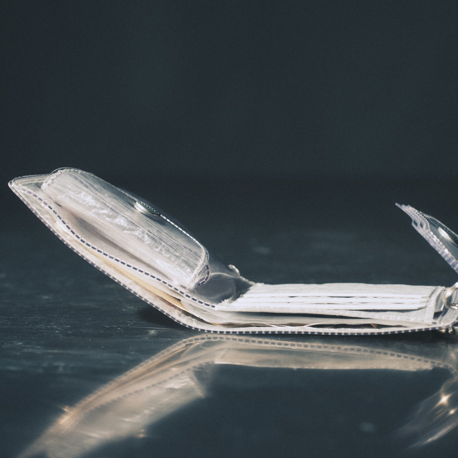 PVCに耐久性と耐候性を極限まで高めたダイニーマ®を重ねた二つ折りウォレット。