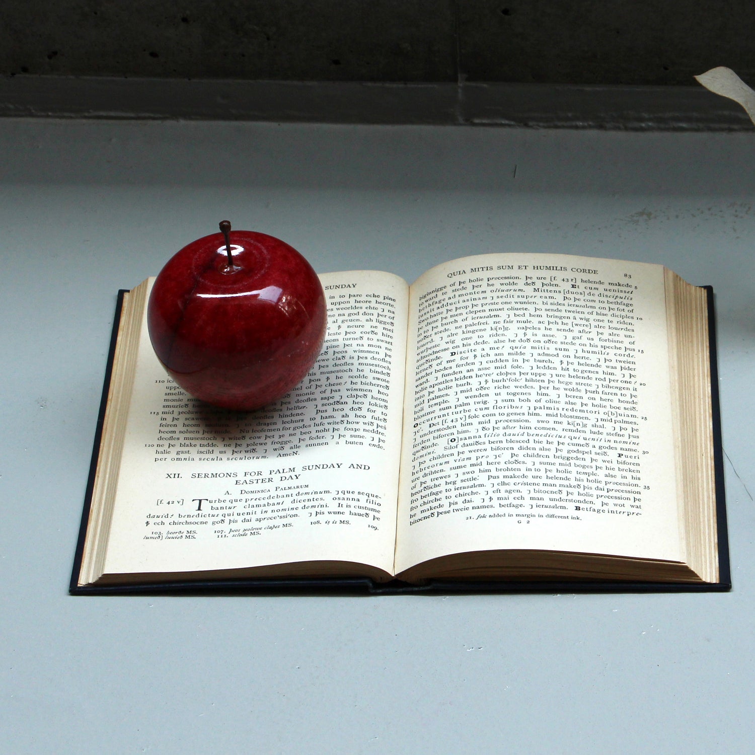 マーブルストーンを削り出して作られたアップルオブジェ。