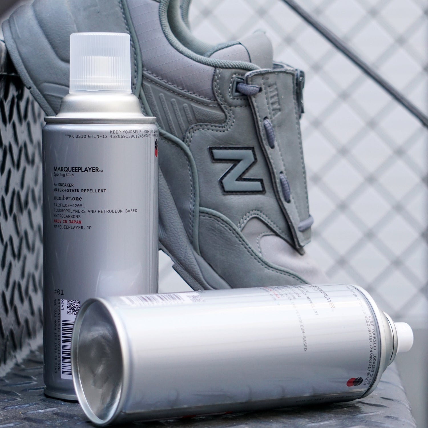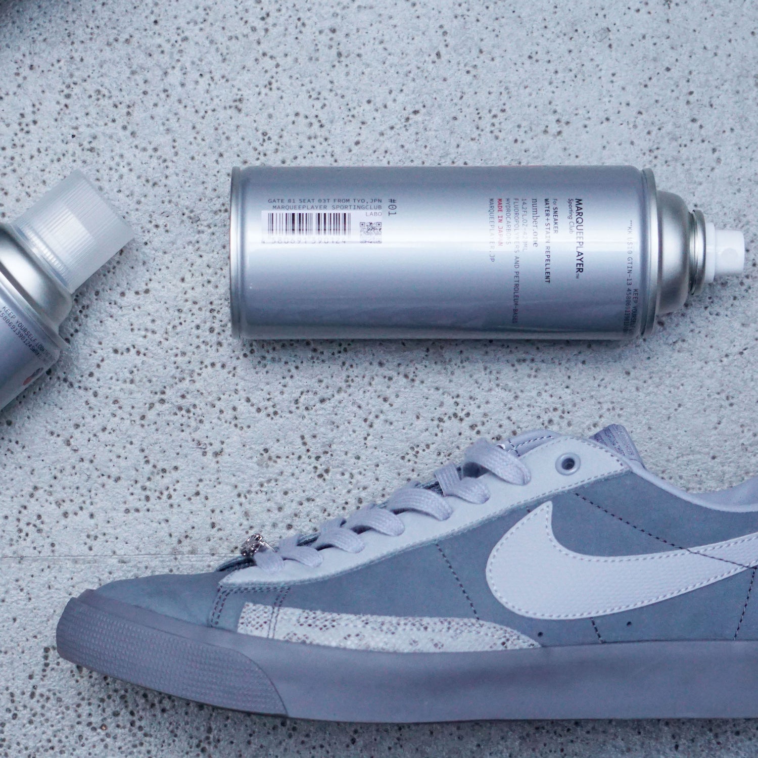 高機能撥水撥油防水効果で、スニーカーを構成するキャンバスや天然革、合成合皮、ナイロンなどの合成繊維をダメージのもととなる雨や水をはじき、スニーカーを保護します。また、雨、水だけではなく、撥油機能を取り入れ、油汚れからもスニーカーを保護。圧倒的な撥水撥油効果で大切なスニーカーを汚れなどから守ります。スプレー噴霧の粒子サイズ、スプレーの勢いにまで拘った使いやすさ。細かい粒子を繊維に付着させ、通気性を損なわずにスニーカーをコーティングします。塗布後、約20分で効果が生まれる即効性と速乾性も、重要な利便性の一つ。スニーカーボックスをあけてから直ぐに使うことができるスニーカーヘッズには必須のスニーカーケアプロダクトです。日本製
