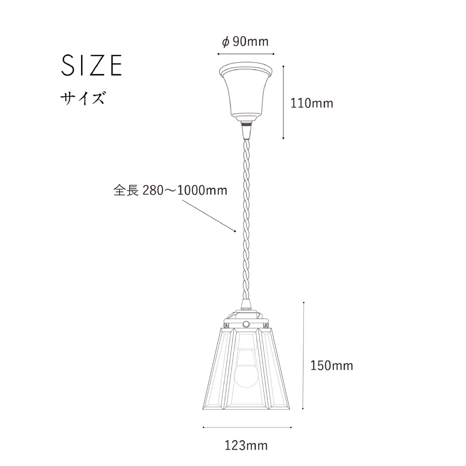シェード:高さ12×口金12cm コードの長さ:10~90cm(調整可能) シーリングカバー:幅約9×高さ約9cm |