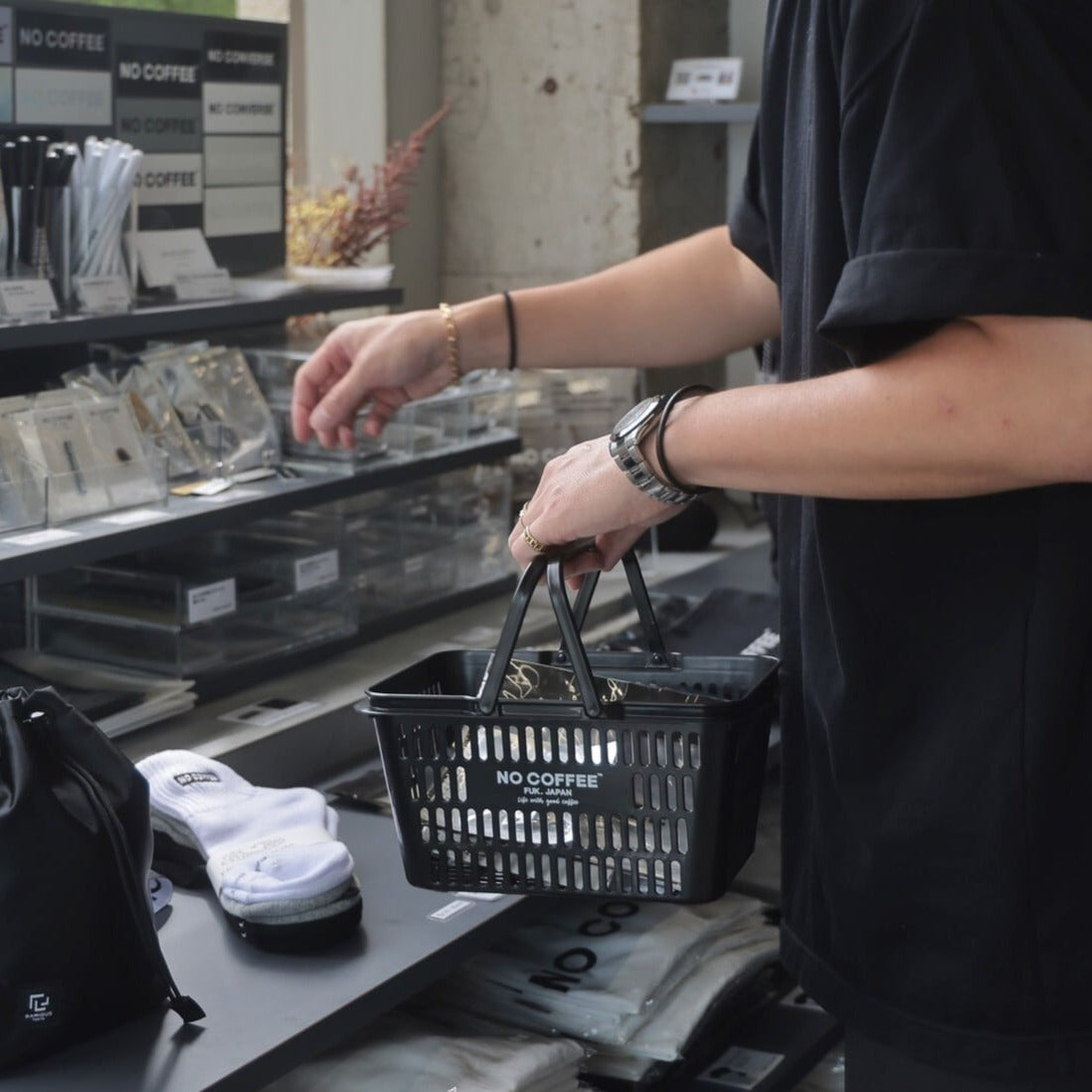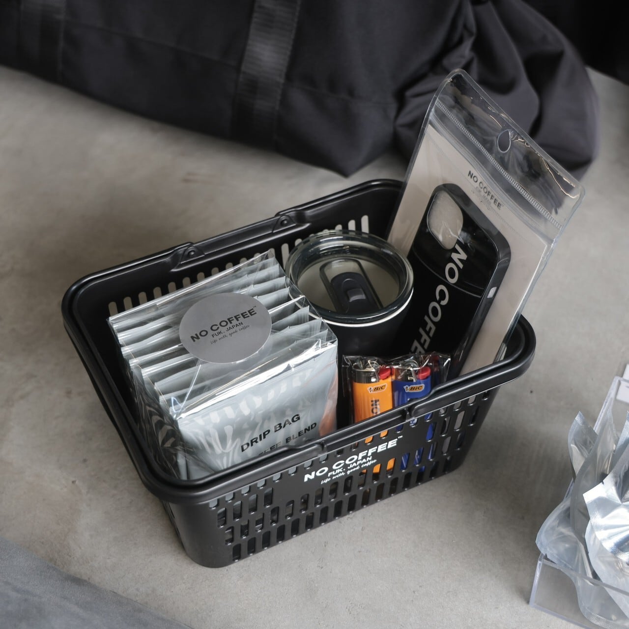 両サイドにNO COFFEEのロゴが入ったミニバスケット。