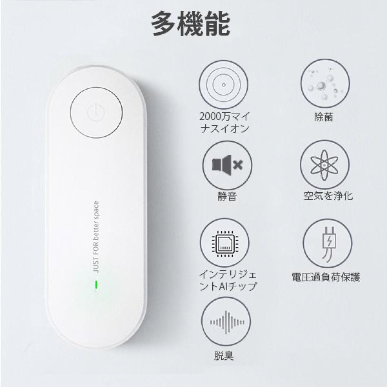 コンセントに差し込むだけで、省スペースで使えるミニ空気清浄機です。マイナスイオンを発生させ、大気中に潜む菌や、気になる臭いをカットします。除菌、消臭、花粉対策に効果的です。
