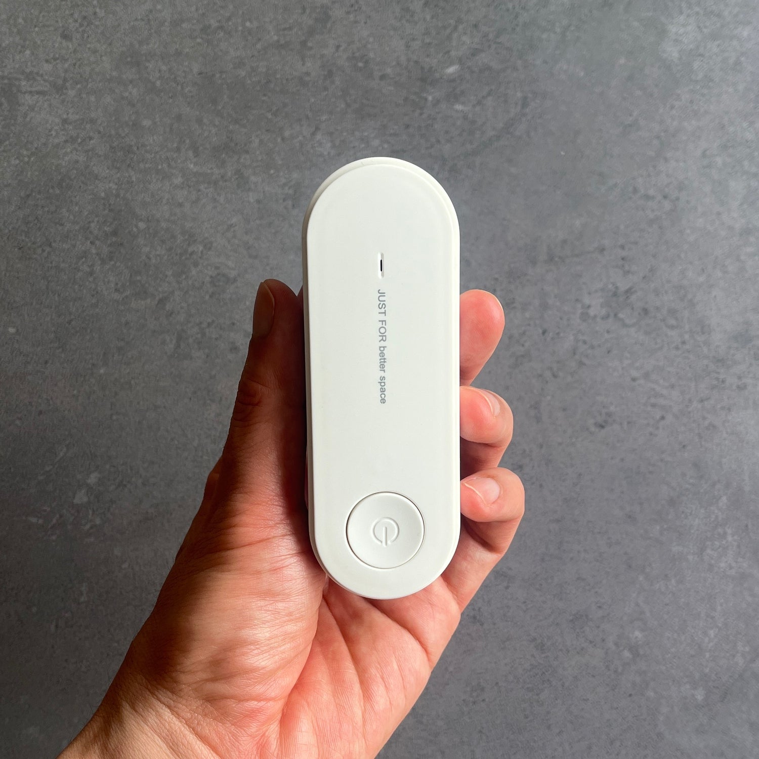 コンセントに挿すだけで簡単に設置できる空気清浄機。超お手頃価格なので、トイレやクローゼット、キッチンや犬のトイレの近くなど、家の至る所で使っています。小さい機械って良いですよね。ついつい買って試したくなっちゃうタイプです。