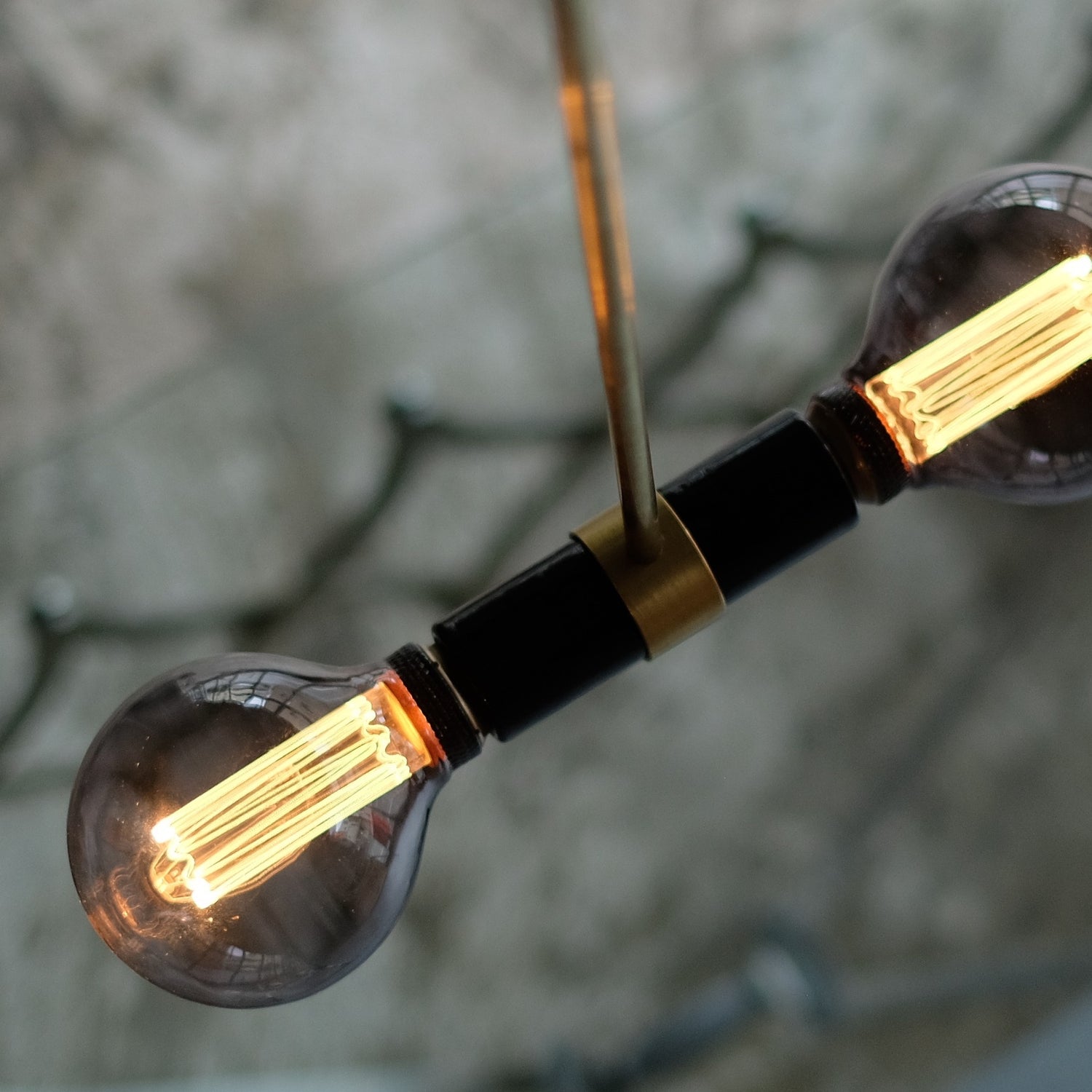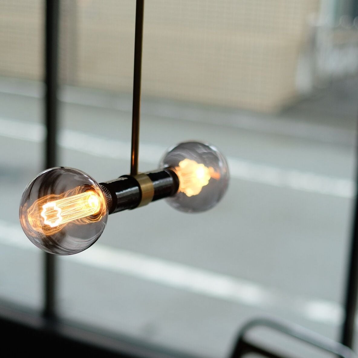 陶器製のダブルソケットに真鍮のパーツをあわせ、シンメトリーに取り付けた電球がデザインの一部として楽しめるランプ。組み合わせる電球のデザインにより、表情ががらりと変わります。ダクトレール用は、ダクトレール(ライティングレール)に変換アダプターなしで直接取り付けが可能です。