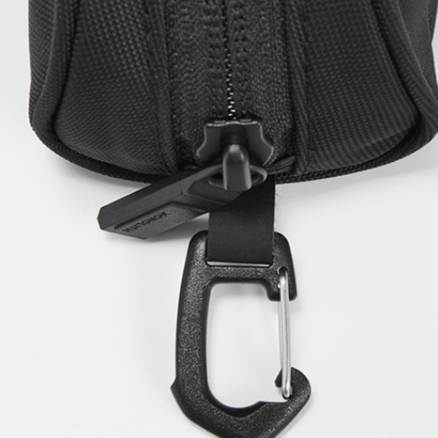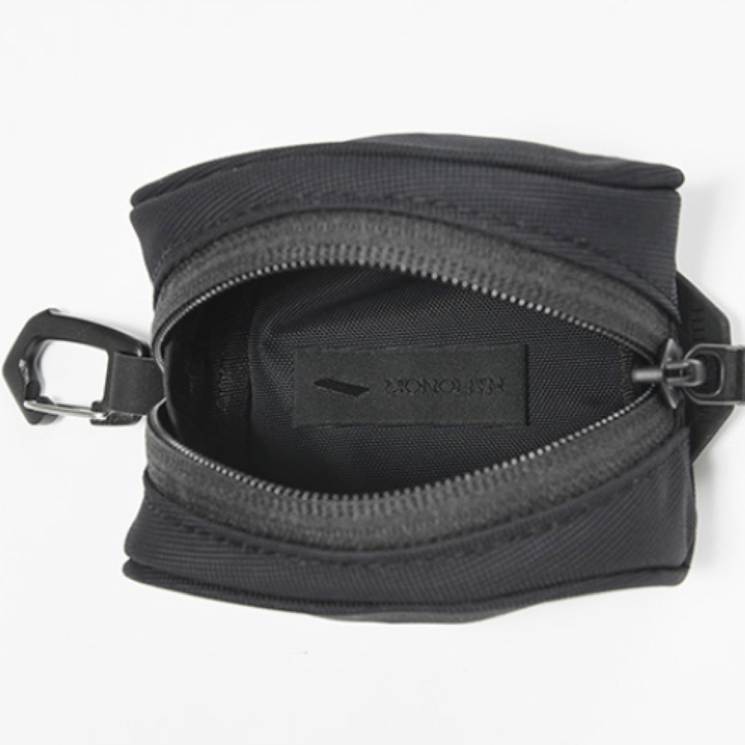 パイピングを施したソリッドなデザインのMONOLITHのポーチ。サイドのナスカンストラップにより、バッグやベルトループへの取り付けが可能。鍵やワイヤレスイヤホン等の小物の収納に最適なコンパクトサイズ。メインファブリックにはSTANDARD仕様の420×840デニールBALLISTIC AIRを採用、他のプロダクト同様に総裏生地も備えたMONOLITHの設計に基づいたアクセサリー。