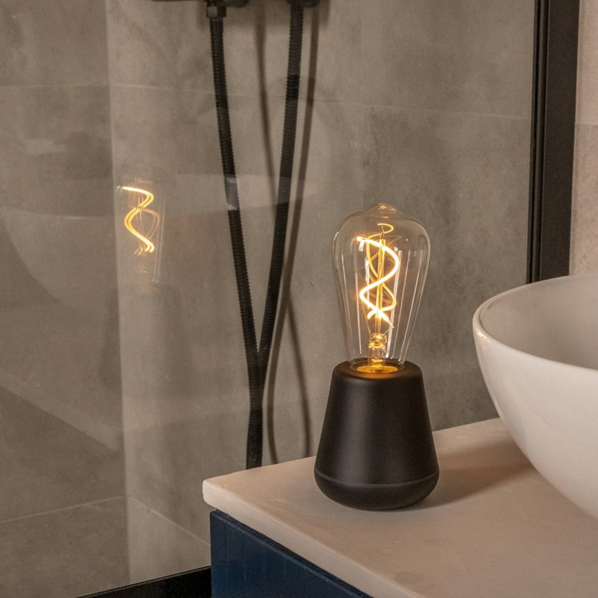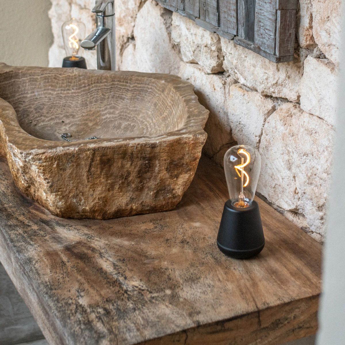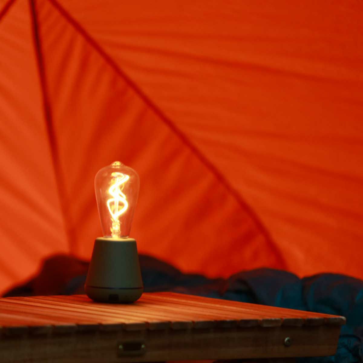 オランダのhumble社が、質感と使い心地にこだわって開発したクラシックな見た目のポータブル照明。白熱灯のような雰囲気のあるLEDを使って、美しい空間コーディネートをお楽しみいただけます。本体にバッテリーを内蔵することで、ケーブルを気にせずどこでも使用可能。アウトドアに最適なIP規格65の防塵・防水機能を備えたモデルなので、食卓、バスタイムでの使用や、キャンプなどの屋外でも安心してお使いいただけます。3段階に明るさ調節ができ、お部屋の雰囲気にあわせてお使いいただけます。バッテリー内蔵でフル充電時は連続で約40〜140時間使用可能です。リモコン対応。(専用リモコンは付属していません、別売です。)