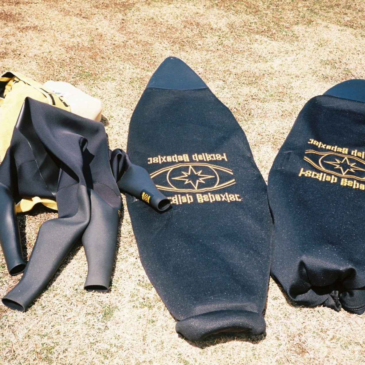 メッシュを使うことにより、ニット素材のものより軽くすることに成功しました。メッシュは厚みがあるので大事なサーフボードを守ります。