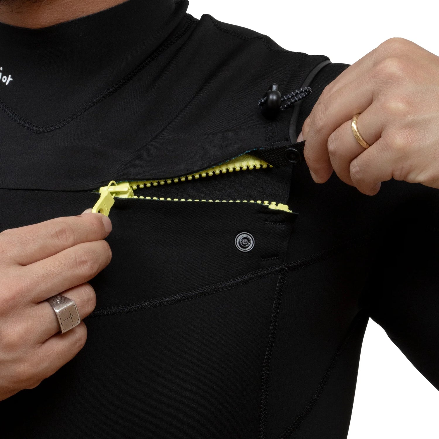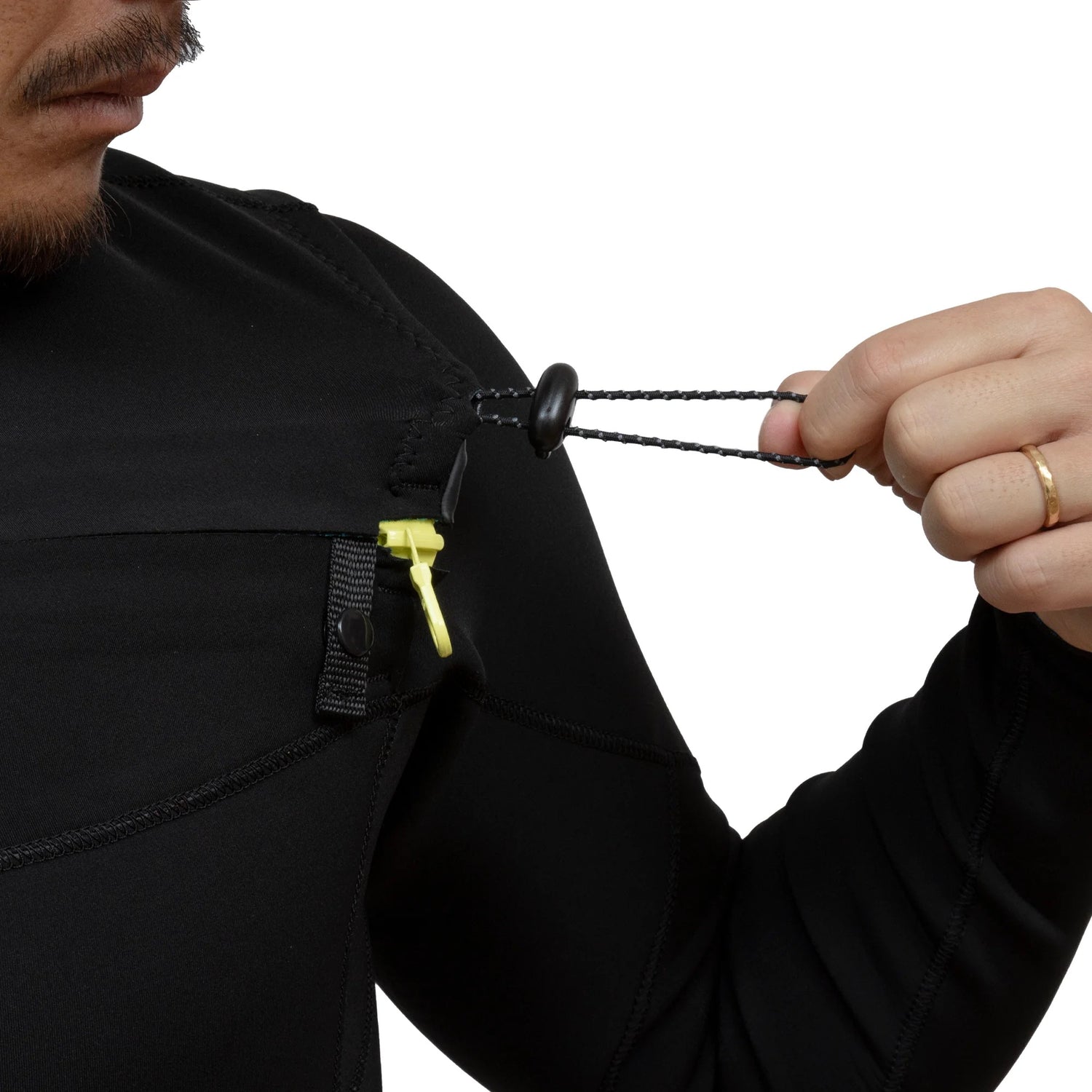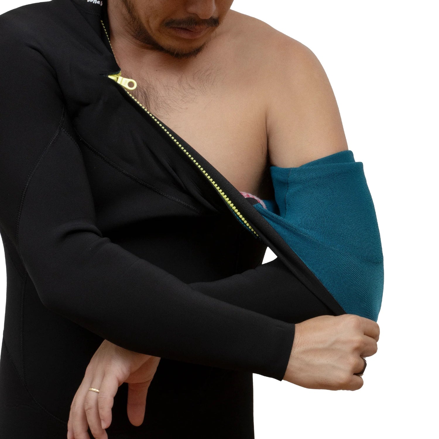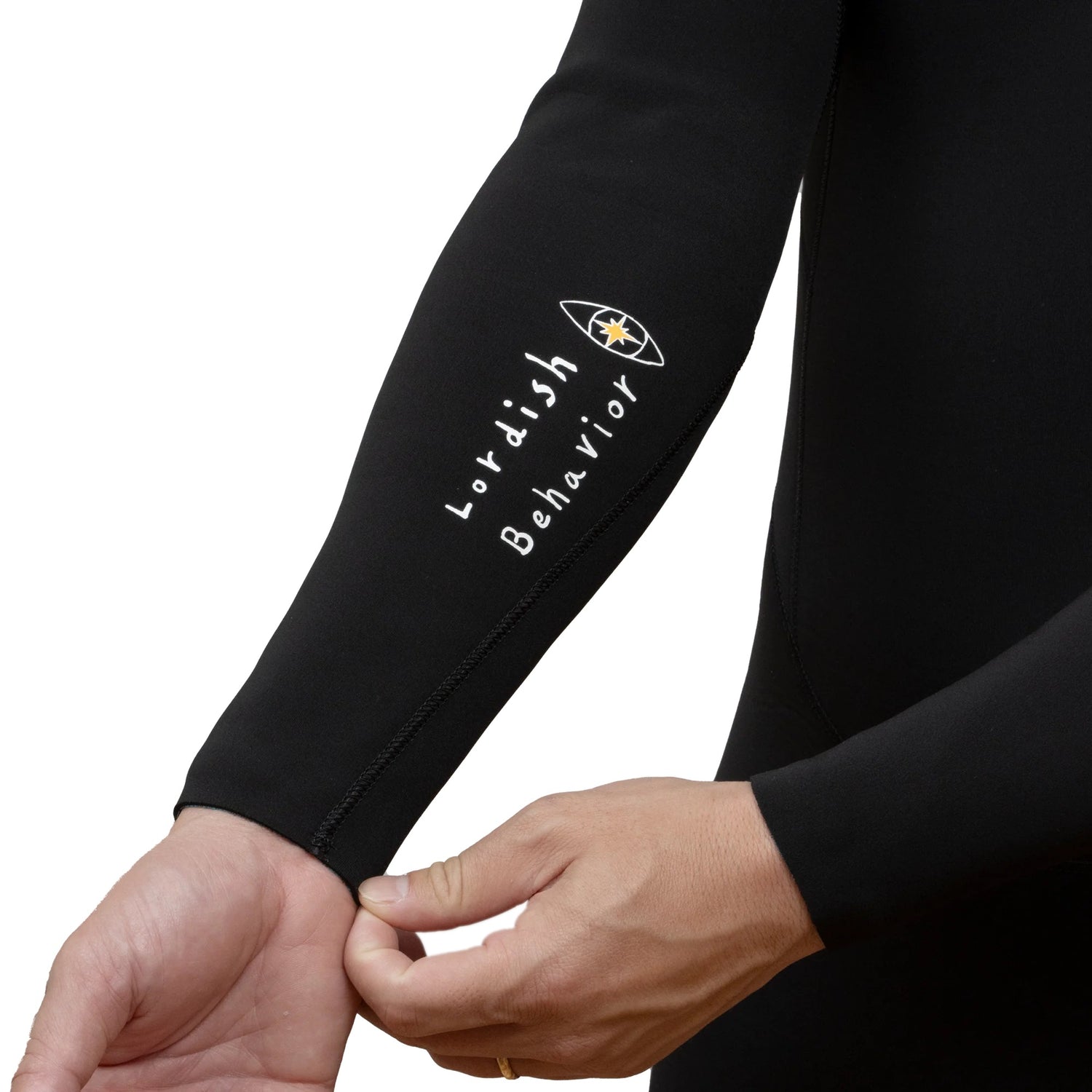 あらゆるスポーツ、サッカー、野球などはすでに取り入れていてノーマルになっているコンプレッション効果。コンプレッションを着て筋肉を圧迫することで、筋肉のムダな動きや筋収縮力が低下するのを防いでくれます。そのためいつもよりも疲労を軽減し、結果として回復を早めてくれます。同じ動作をしていても、コンプレッションを着ると回復が早いということは、ムダな筋肉の動きを防ぐ効果によるものだと言われてるので、このLordishのウエットスーツにはその効果があります。このツートン、上下で生地を使い分けるデザインはLordish独自のデザイン。下半身をなるべく冷やさず、体力の温存に優れているので優秀。
