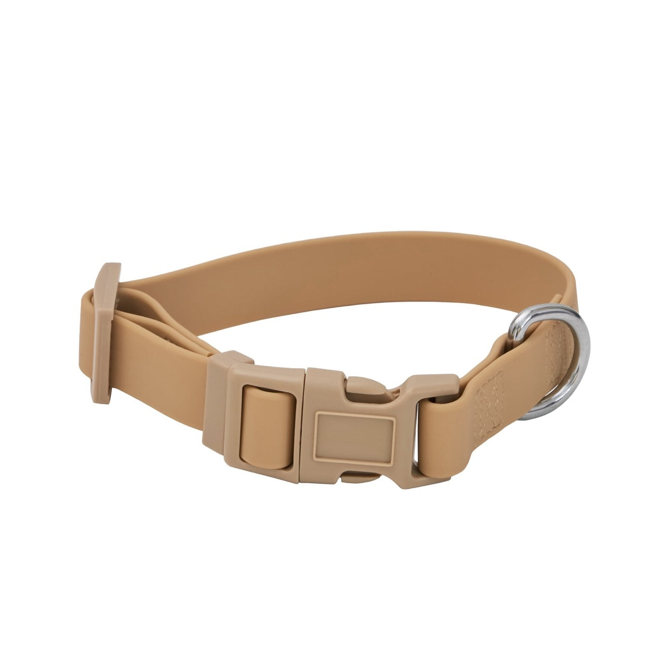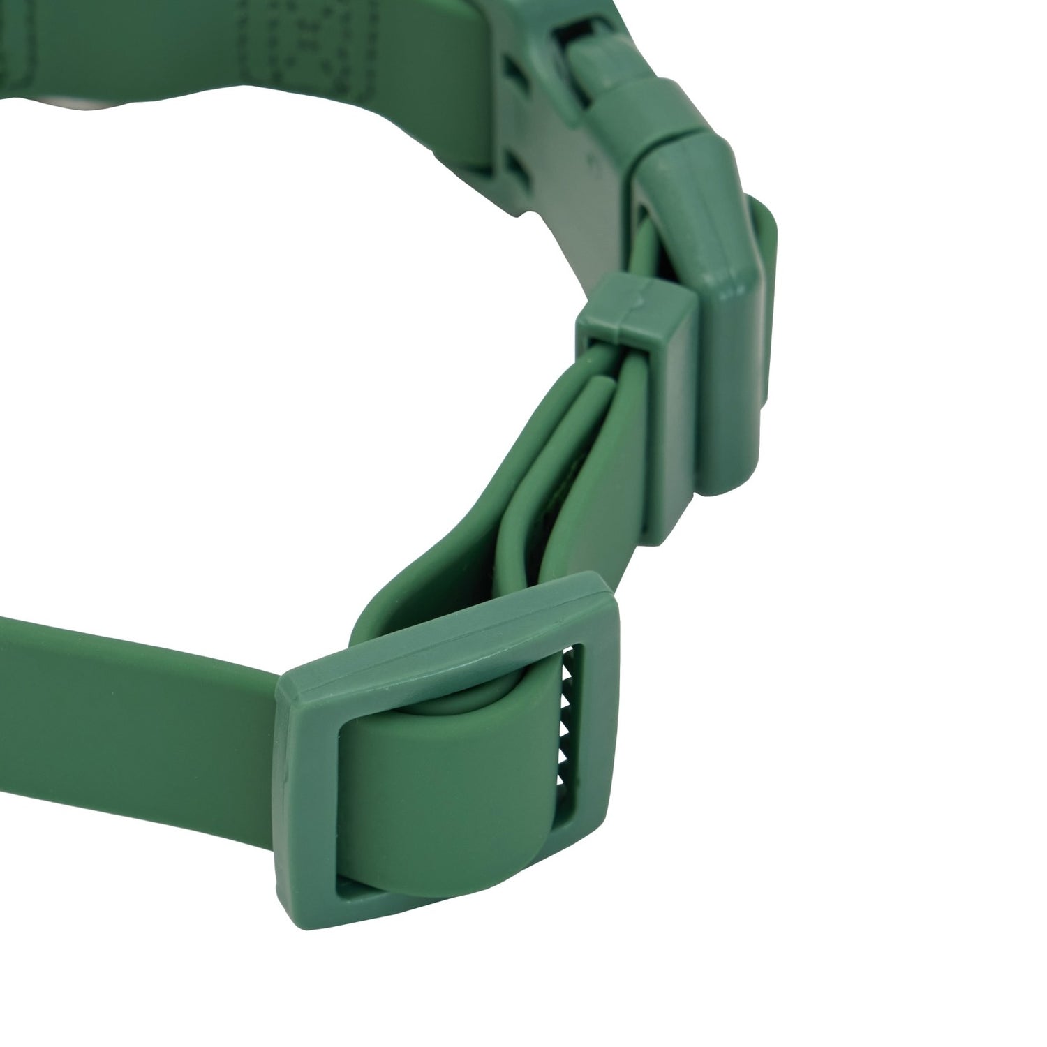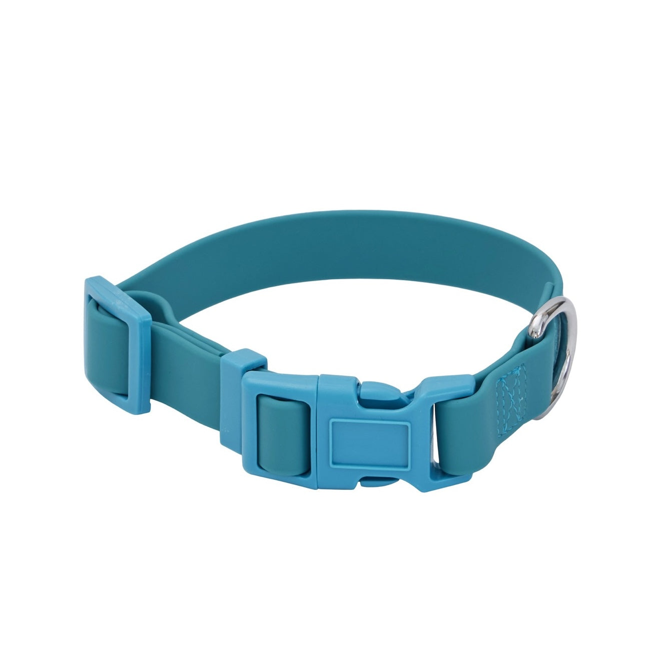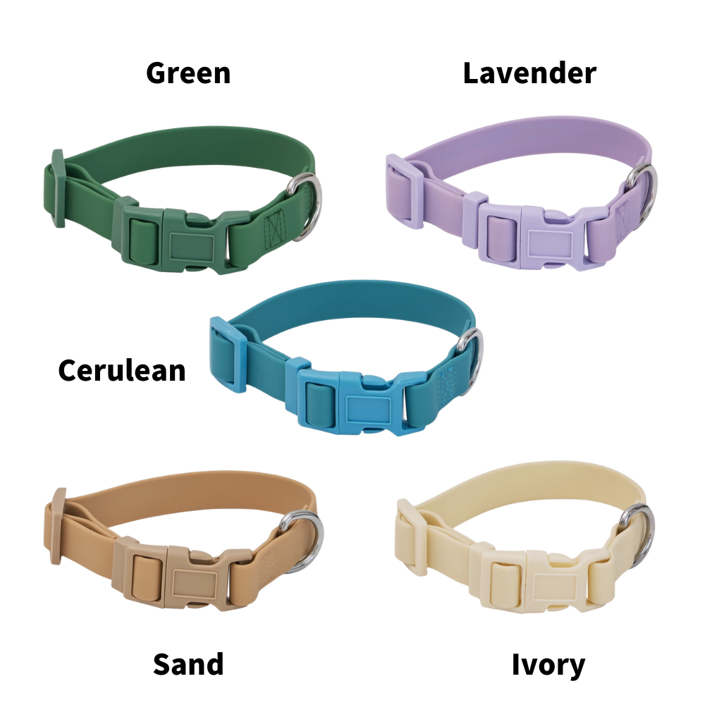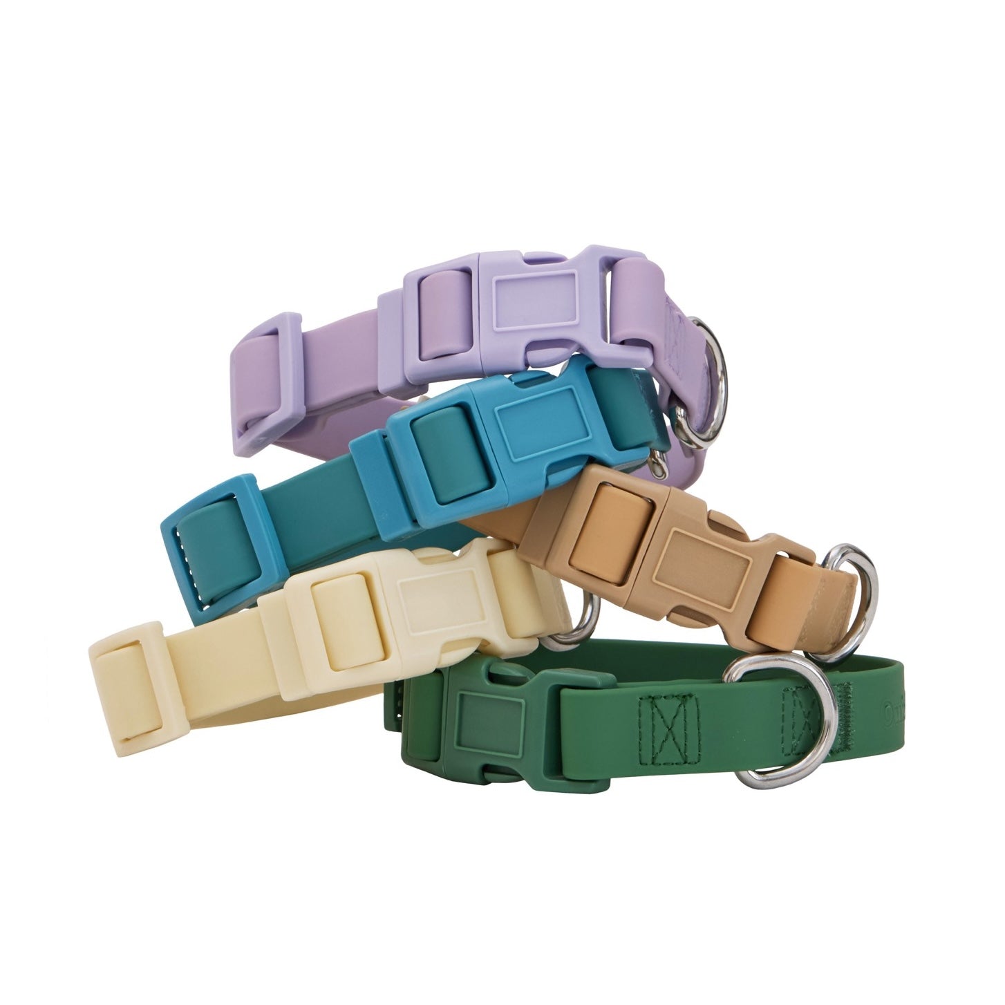 着脱が簡単なバックル仕様。PVCコーティングウェビングの素材で、高い耐久性と安全性があり、防水・防汚なのでさっと拭くだけで毎日のお手入れも簡単。丸洗いも可能です。柔軟で手に馴染みやすいシンプルなデザインで、お散歩などの普段使いはもちろん川や海での水遊びやドッグトレッキングなどのアウトドアシーンでもお使いいただけます。